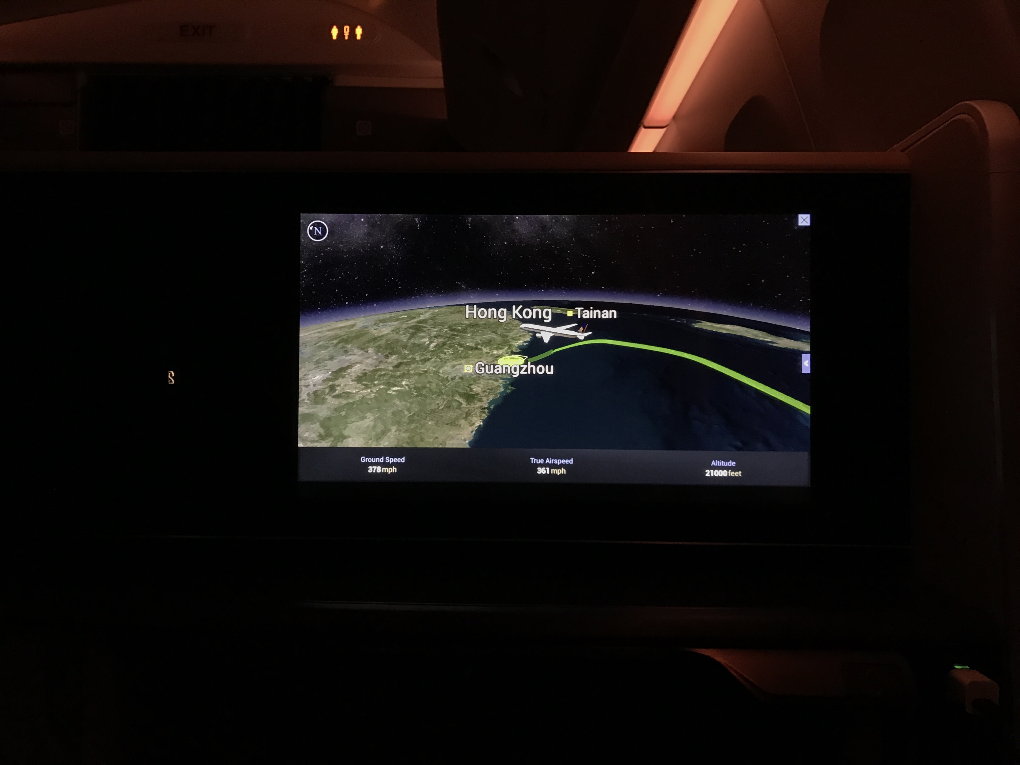 After a few refills of Krug, we pushed back from the gate. Our taxi to the runway took about 10 minutes. The Captain then asked the crew to take their seats, and we began our journey to Hong Kong. The climb was relatively smooth, with only a few chops in between.