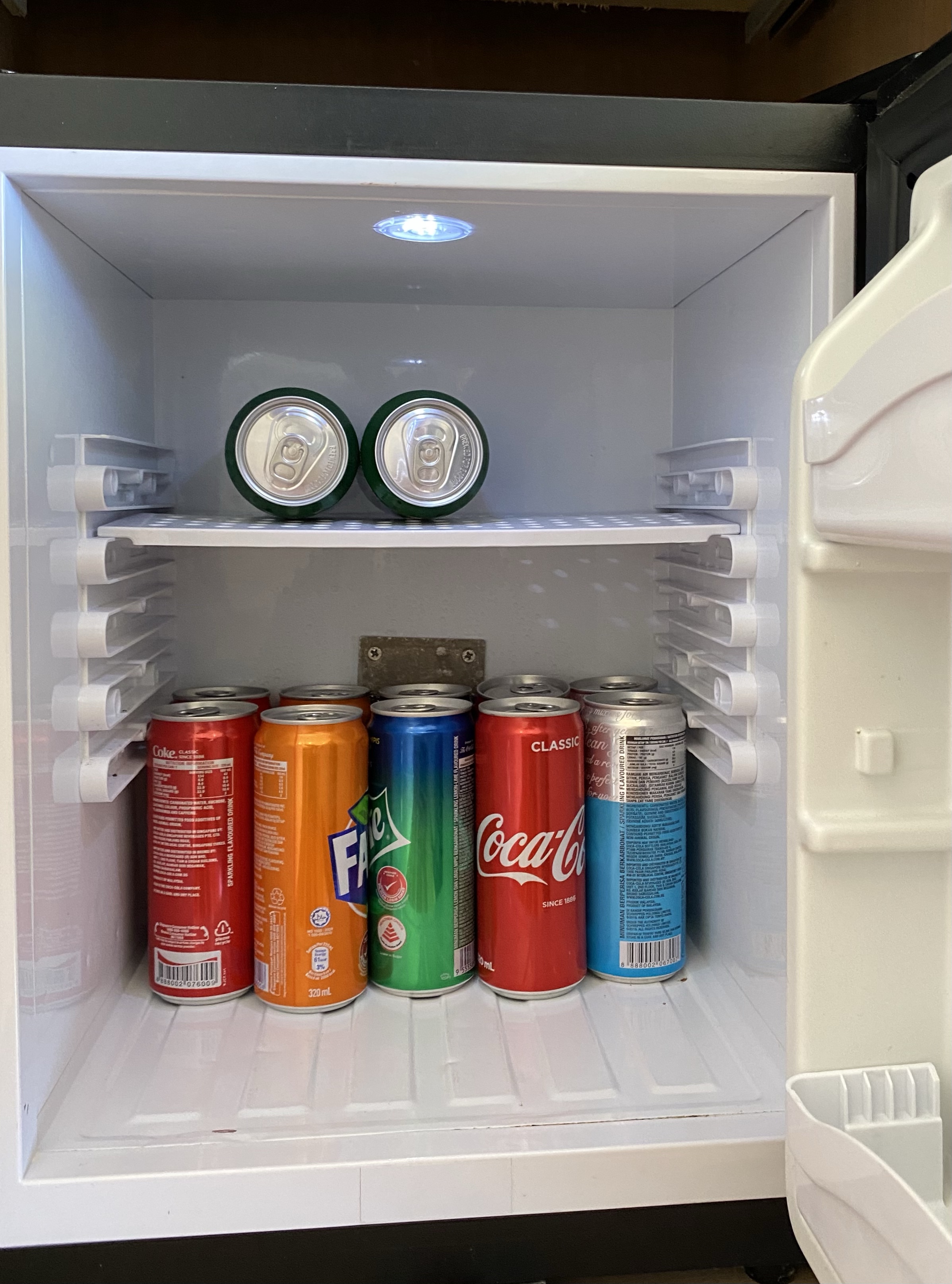 There was also a coffee and tea making station, and a small fridge with a mini bar, which was included in our all-inclusive package. The mini bar was replenished daily.
