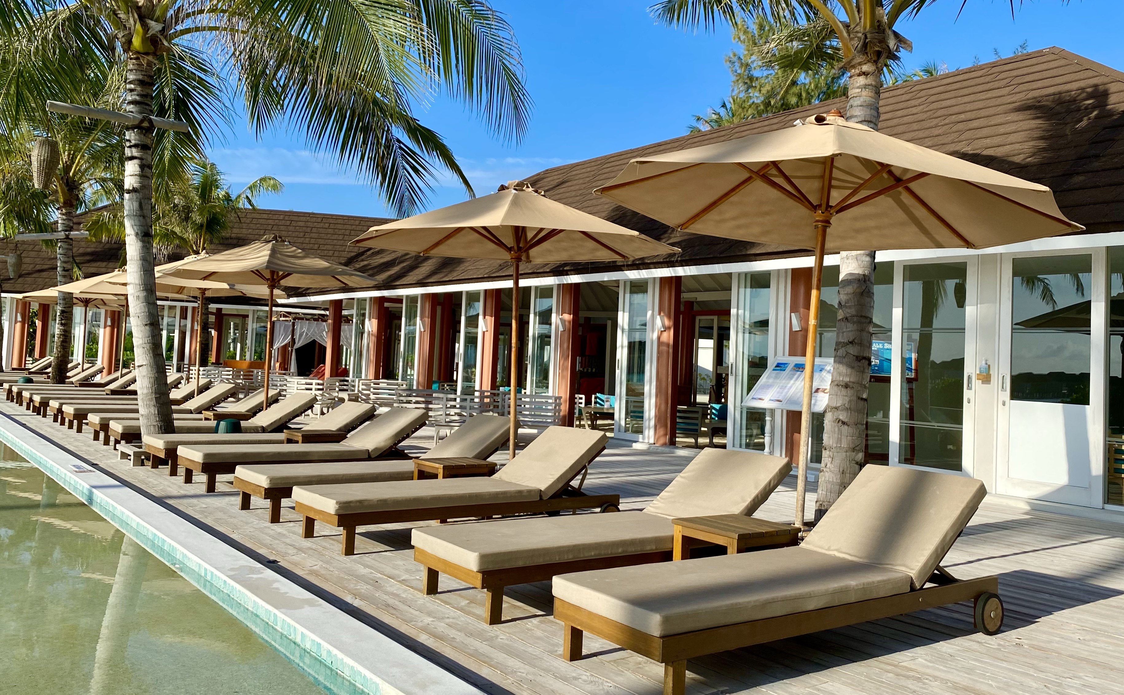 Olhuveli resort is a huge facility consisting of 3 islands, the main island, Dream Island, and Dream Island B. Due to the COVID-19 pandemic, most of the main island’s bars and restaurants were closed during our stay, except for the Sunrise Bar, and water sports center. We went to the Sunrise Bar a few times to take a dip in the pool and the beautiful resort lagoon. We also visited the water sports center. I’ve asked the staff and they mentioned that the main island will be fully re-opening late November 2020.