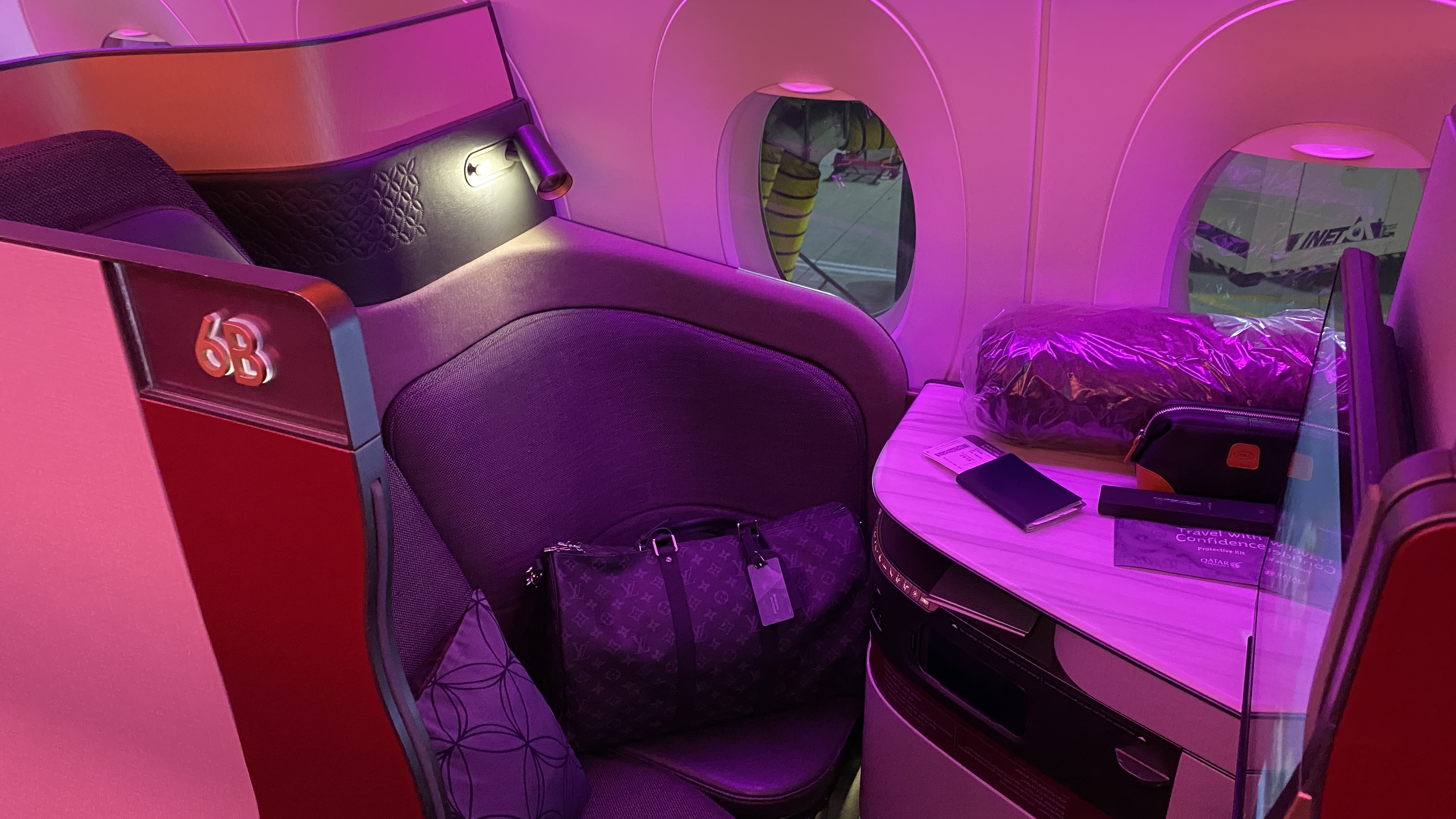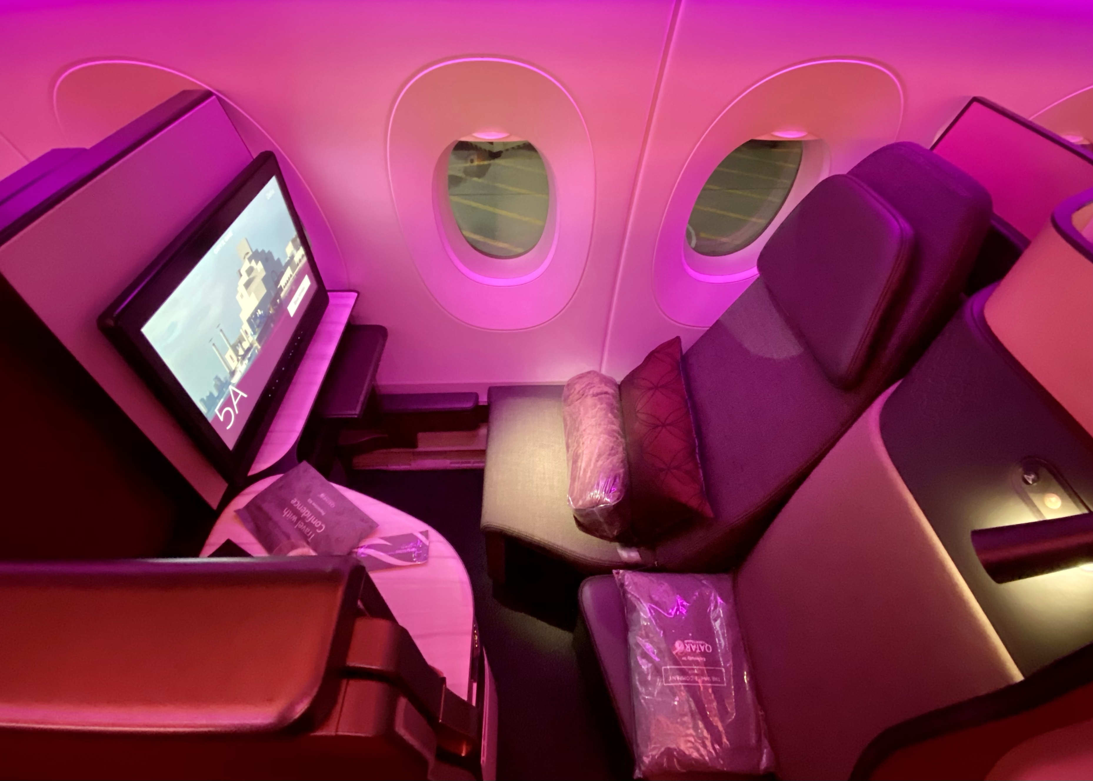 The airplane – We’ve flown on Qatar’s A350-1000 before and in my opinion, it is the Airline’s best aircraft for business class (minus the onboard bar). Large windows, a spacious cabin with high ceiling, and the best humidity/cabin pressure of any next generation aircraft available is a sure win.