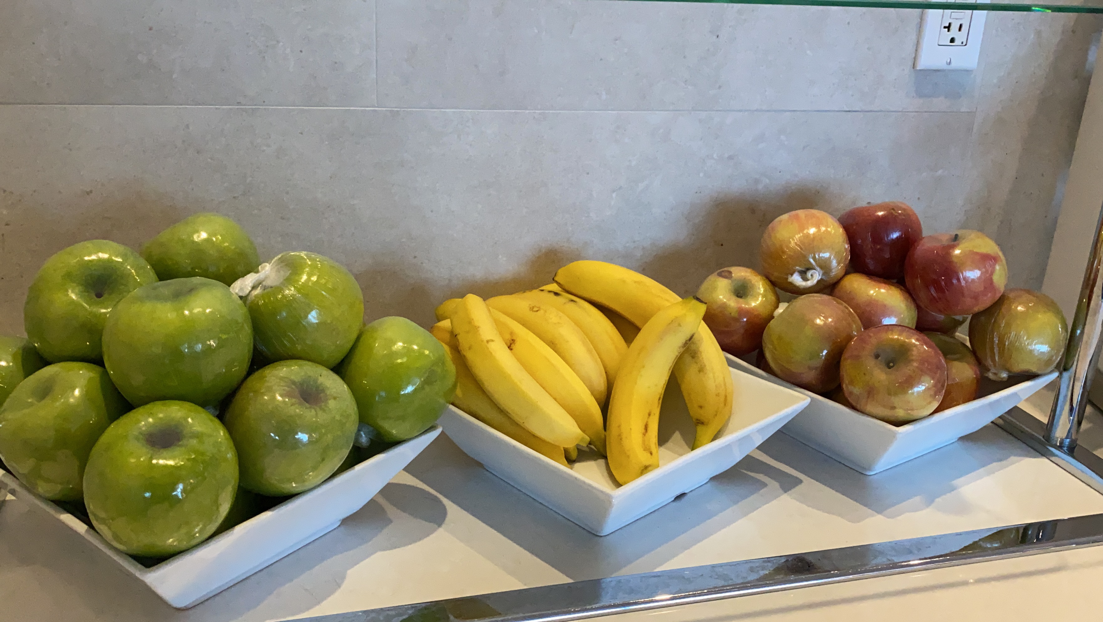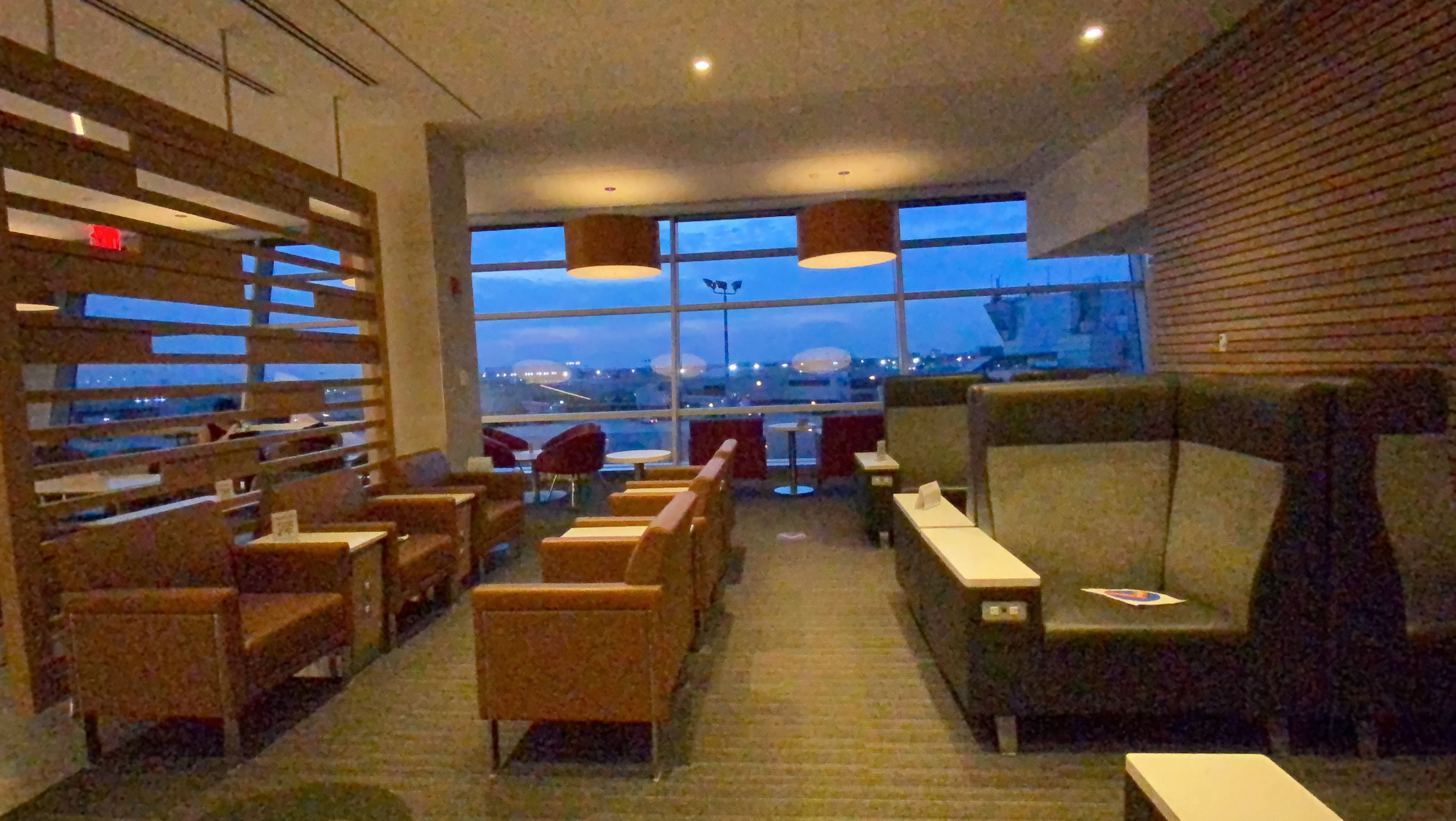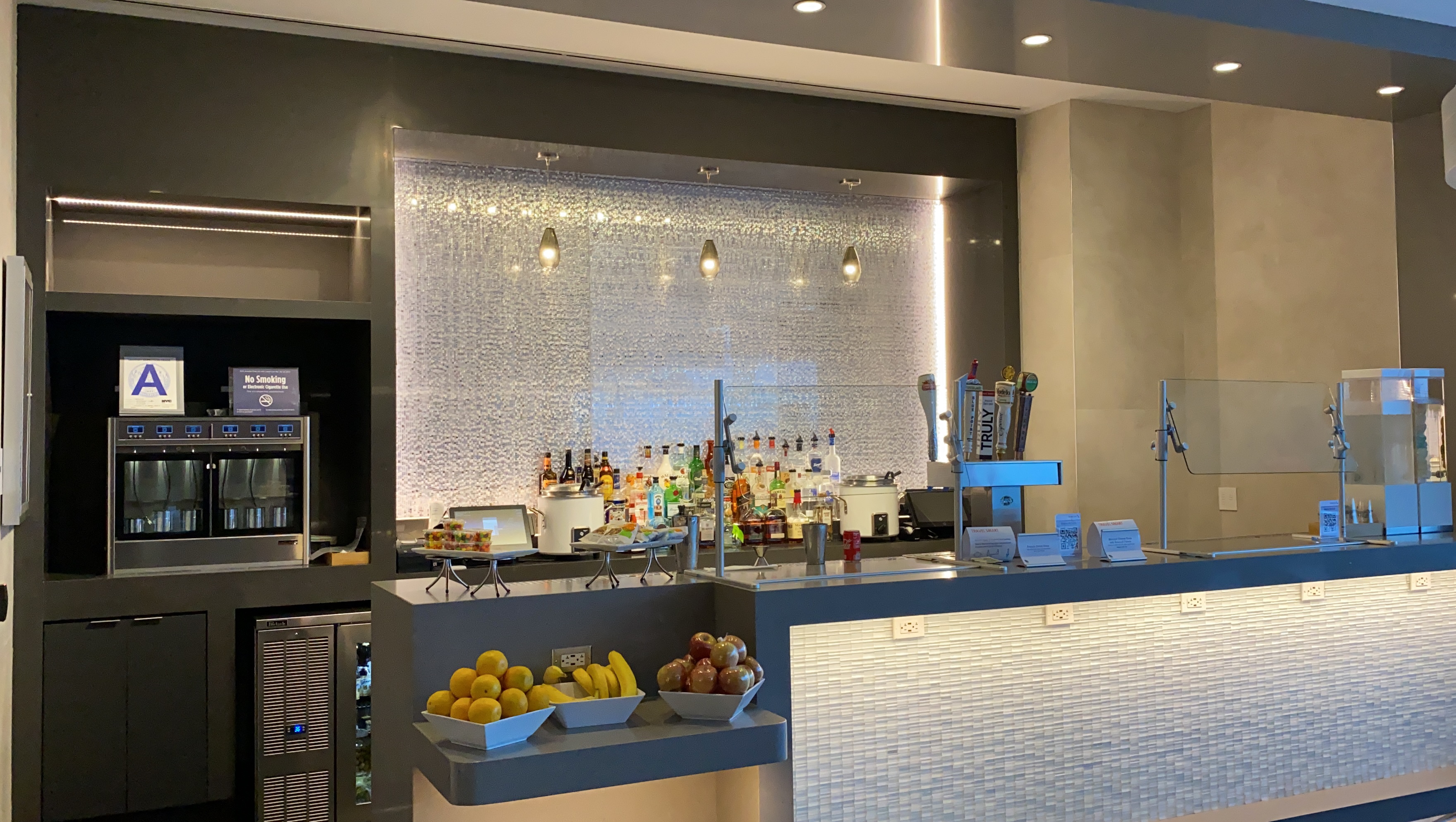 The Lounge- The American Airlines Flagship Lounge at New York’s JFK Terminal 8 is currently closed, so we were left to hang out at the Admirals Club before our flight. The seats are plenty comfortable, and some seats were blocked for physical distancing. However, compared to the Flagship lounge, the food selection at this lounge is very limited. They do have a hot beverage station, and full bar.