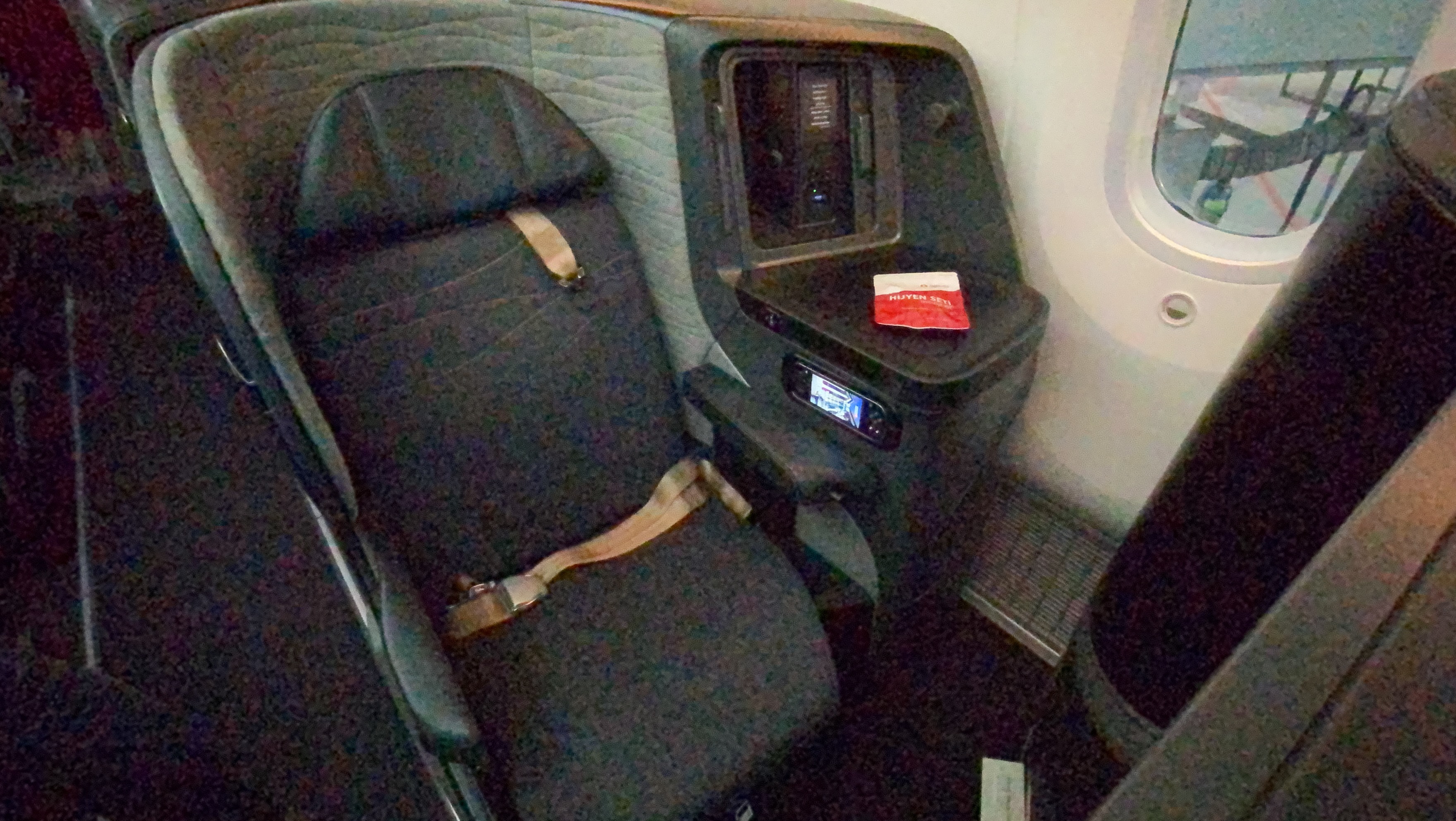 The seats – I really like Turkish’s Business Class seats on this plane, which is also used by Singapore Airlines on their new regional business class deployments. The seat is quite spacious and it was comfortable for sitting and dining upright. The seat also reclines and converts into a 76” flat bed. And yes, Turkish offers personal air nozzles on this aircraft.