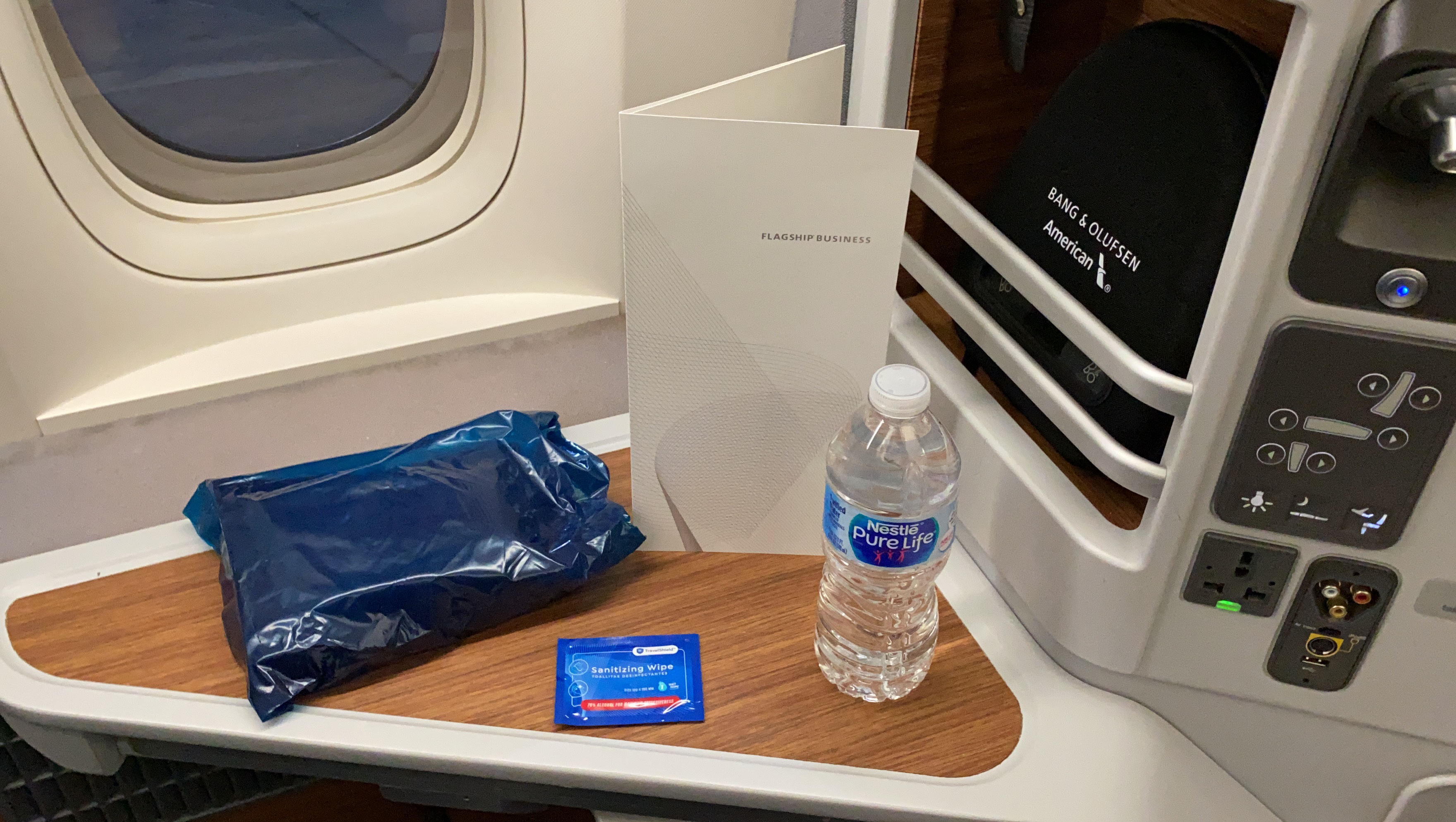 The amenities – AA offers a business class amenity kit, Bang and Olufsen noise canceling headphones (collected 45 minutes before landing), bottled water, and a full-size pillow and duvet set. There was also a walk-up snackbar behind the galley in business class. Sadly, no pajamas or slippers were offered, but I thought the amenities were adequate for the 6-hour flight across the pond.