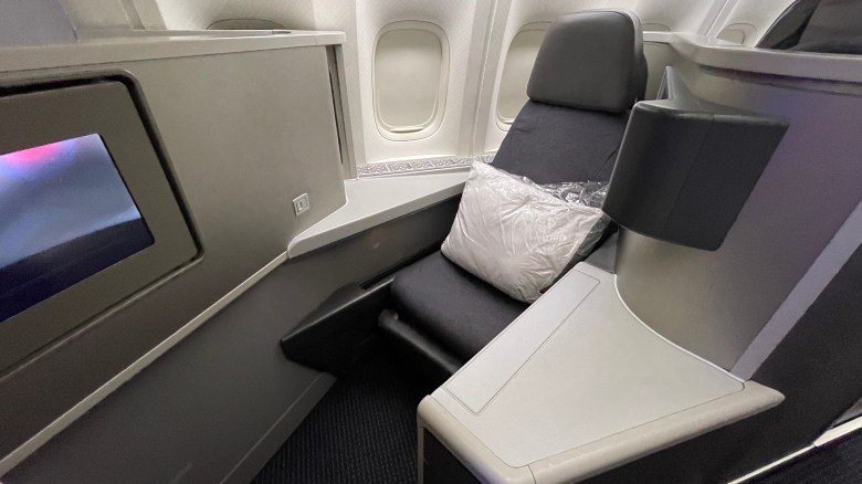 AA has 2 versions of their 777-200ER business class seats, the older version which I’m not a big fan of is made by Zodiac Aerospace. Half of the seats face forward, and the other half are aft facing. The big problem with those seats are that they are tethered together in pairs, so if one of your neighbors adjusts their seat or merely move, you’ll feel a shake in your seat as well, which could be bothersome especially when you’re trying to relax and sleep.