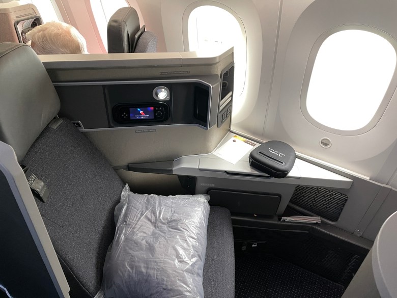 The version I’m reviewing is the newer of the two and is produced by B/E Aerospace (now Collins). These are traditional forward facing reverse herringbone configuration, and are popular with other carriers such as Virgin Australia, China Airlines, and now British Airways on their newer configurations. The seat is definitely much more comfortable and than the Zodiac seats on the 777-200 and offers more privacy.