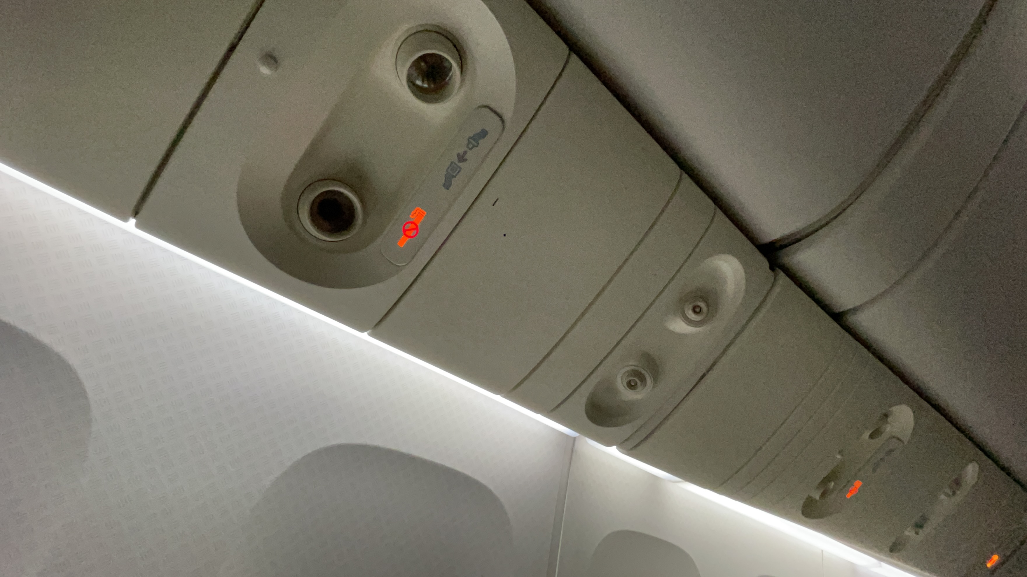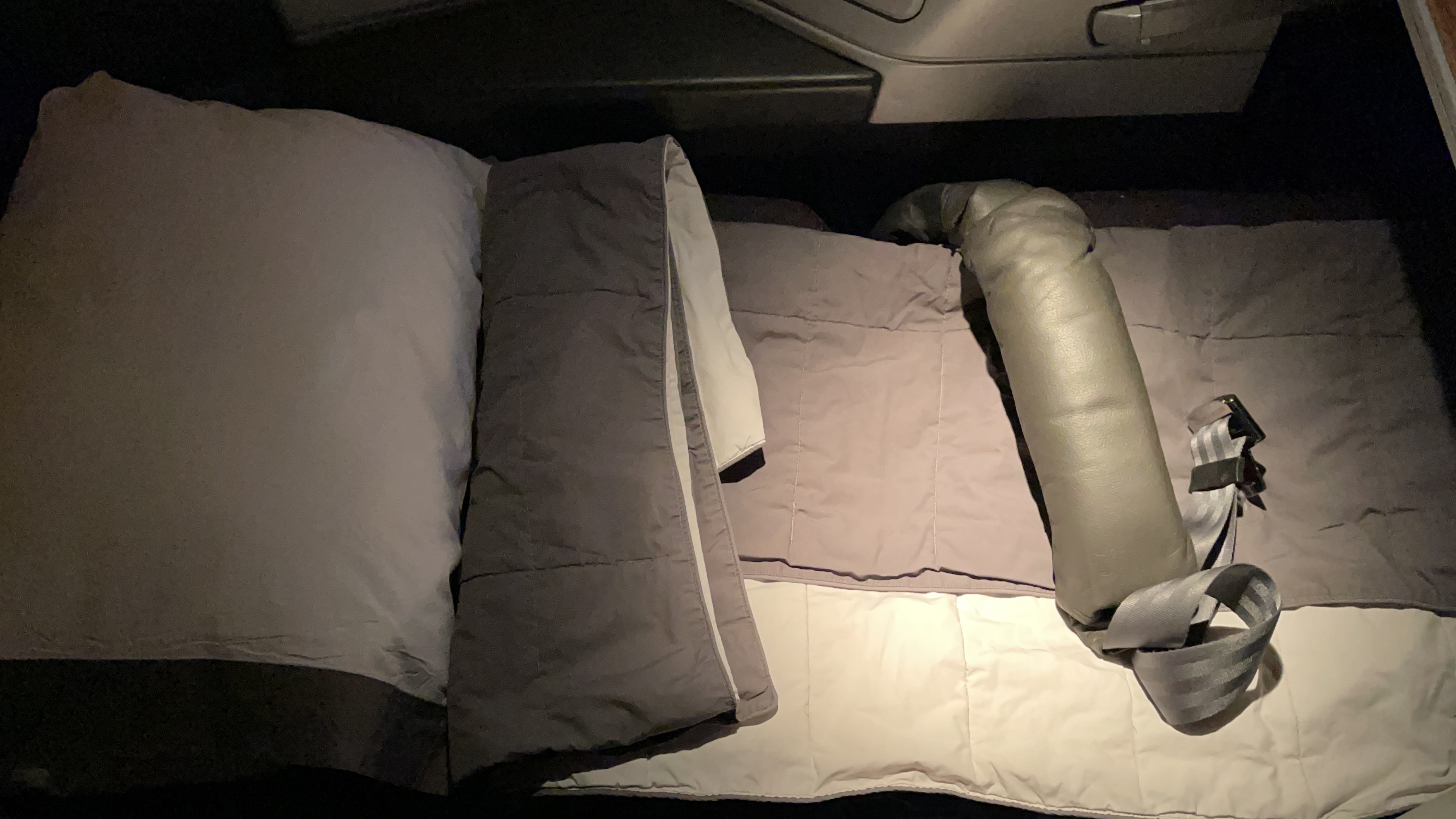 The seats – I like these B/E Aerospace seats, though I’m not sure if I like them better than the business class seats on the 777-300ER. The seat offers plenty of personal space and storage. It was comfortable for lounging, dining upright. For sleeping, I found that I tended to hit hit the pullout table while rolling over to my side. Not a problem for shorter people like me, but could be a huge nuisance for taller folks. I also liked that there were personal air nozzles available to keep me cool during the flight.