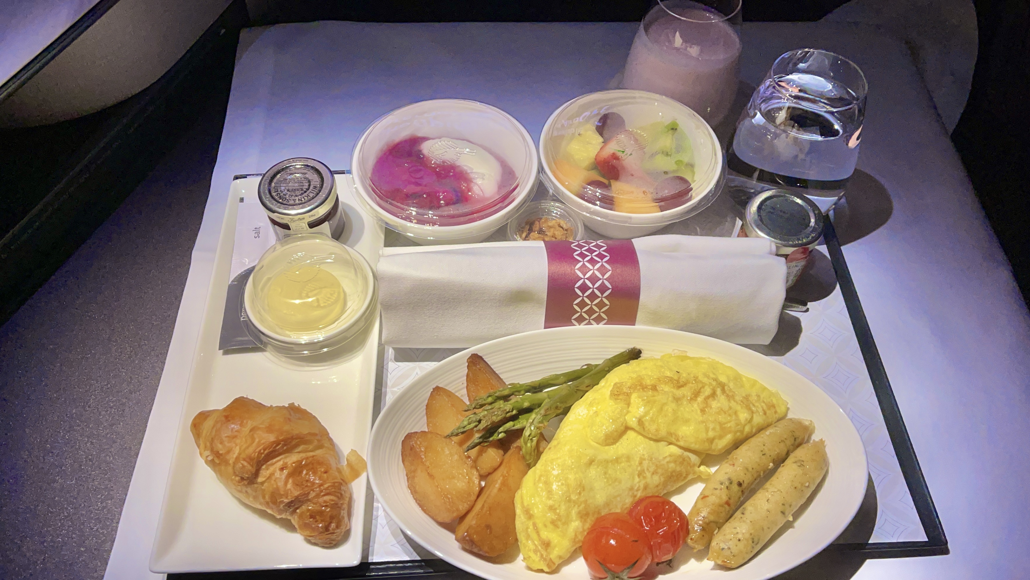 The onboard service – I know the onboard service depends entirely on the crew, but the service this flight was amazing. Joy, our flight attendant was proactive and anticipated all our needs before we even asked for them, it felt like first class in business. She was prompt in delivering the pre-departure beverage, meals, and turndown services. The other flight attendants were also quick to respond to our requests during the flight. Amazing!