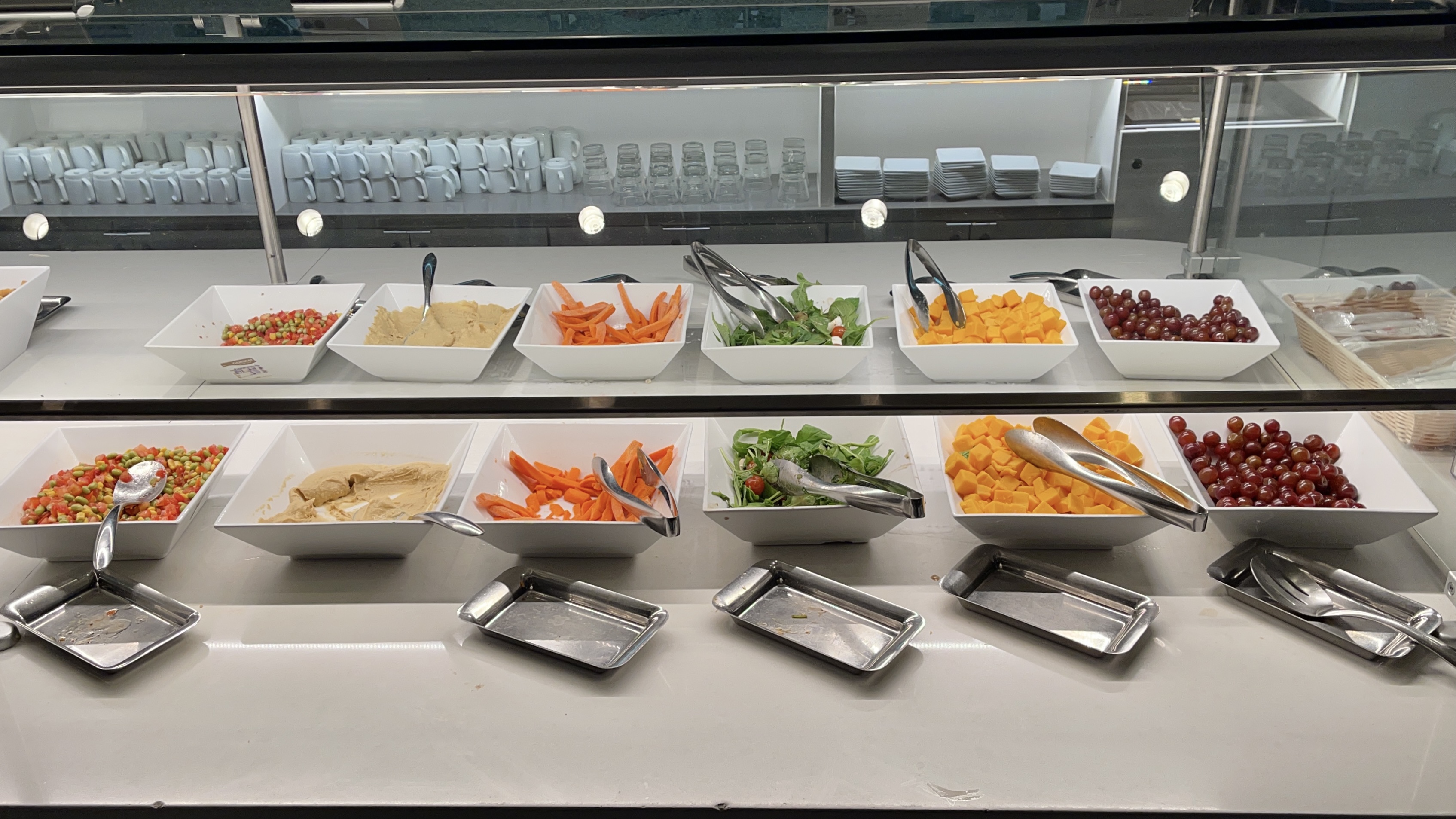 The Admirals Club in LAX – As a result of the pandemic, all OneWorld lounges at LAX’s Tom Bradley Terminal are currently closed, but we were allowed access to the Admirals Club in Terminal 4 via the terminal connector. The lounge offers plenty of seating, however the food and drink selection was rather limited.