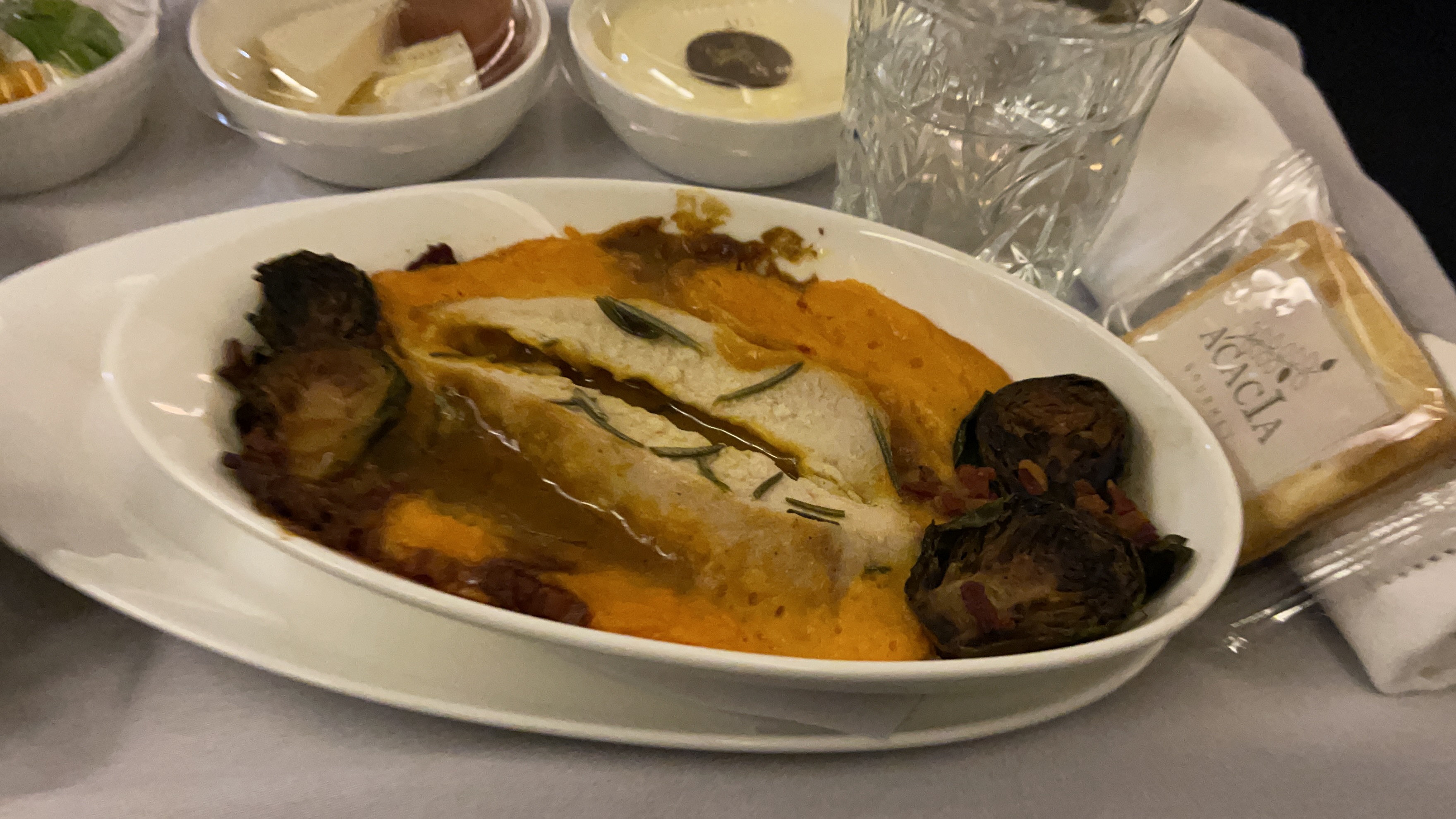 The Catering – The catering by Do&Co was actually very good on this flight. The food tasted fresh and delicious. The chicken supreme that I ordered during dinner service was moist and flavorful, while the sea bream dish that my companion ordered was also delicious. The pre-arrival full English Breakfast dish was generously portioned and hearty.