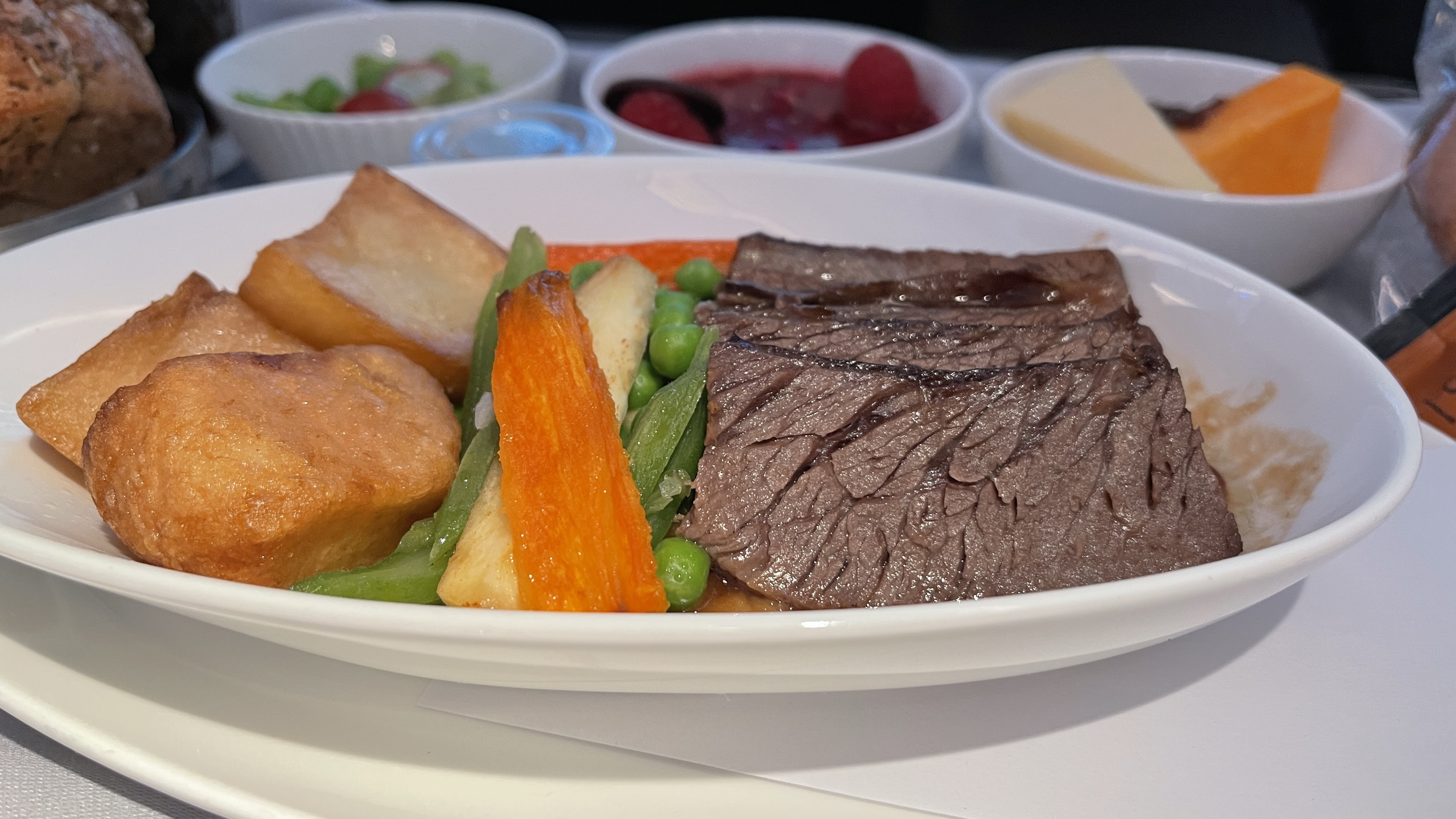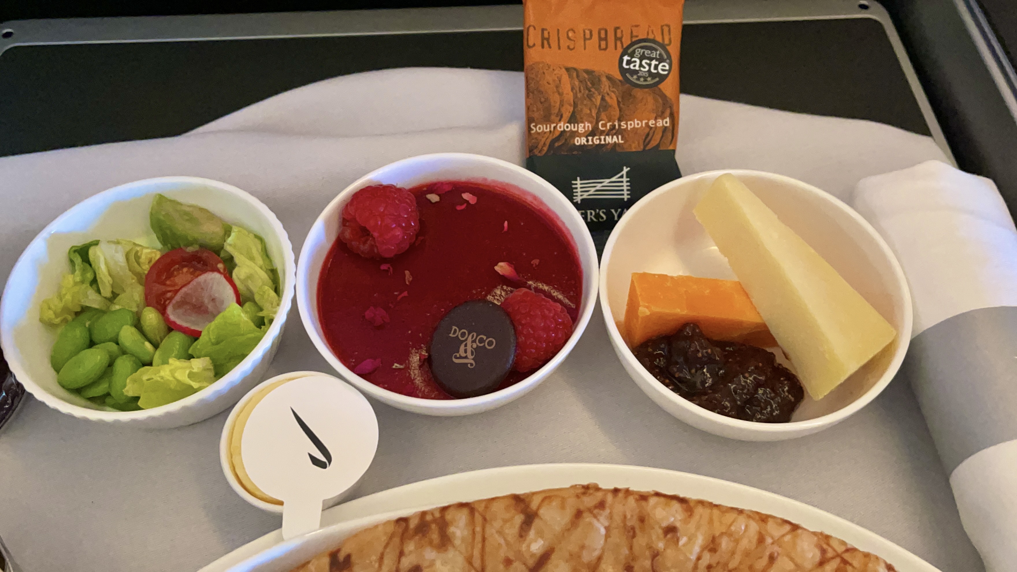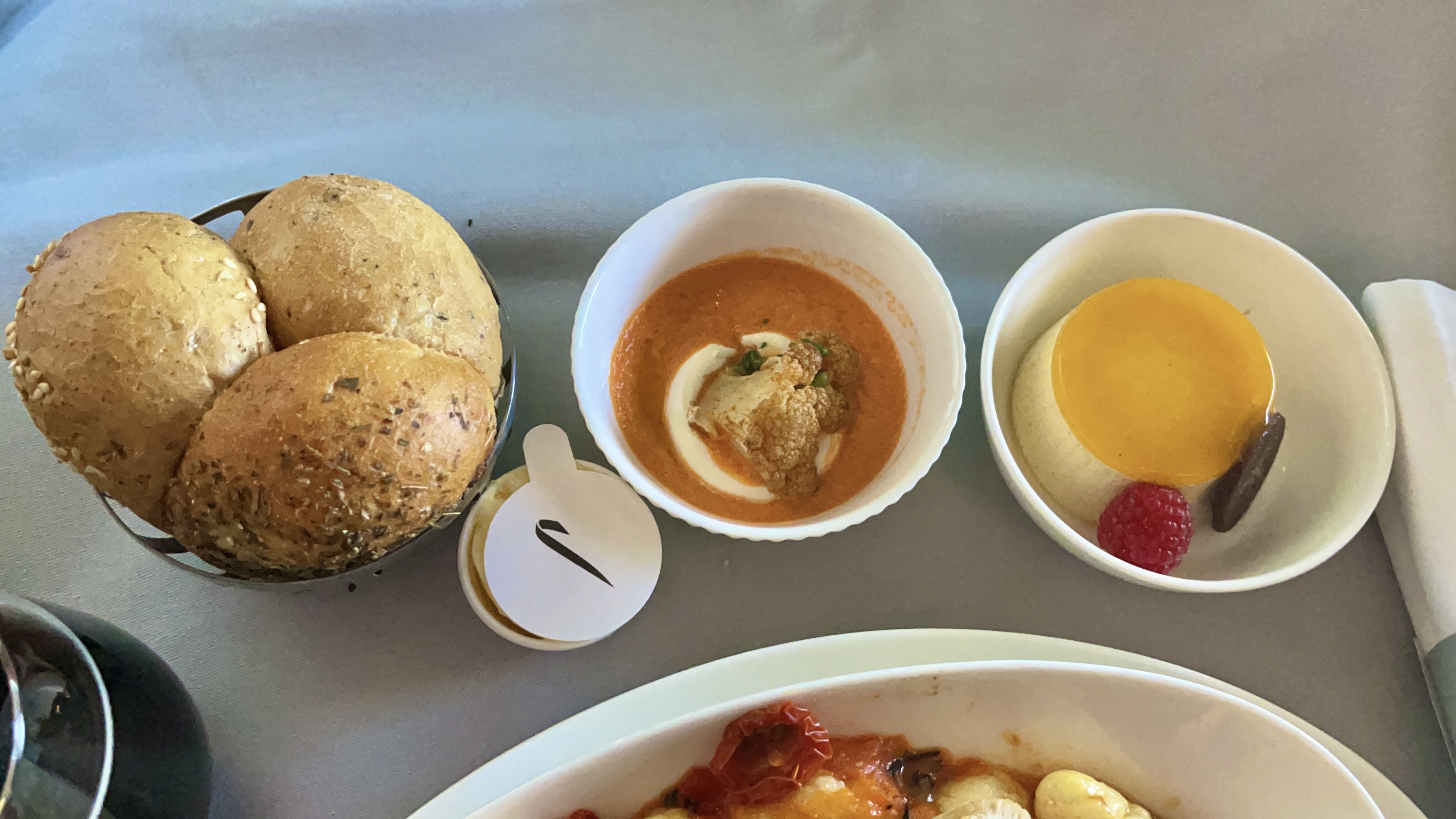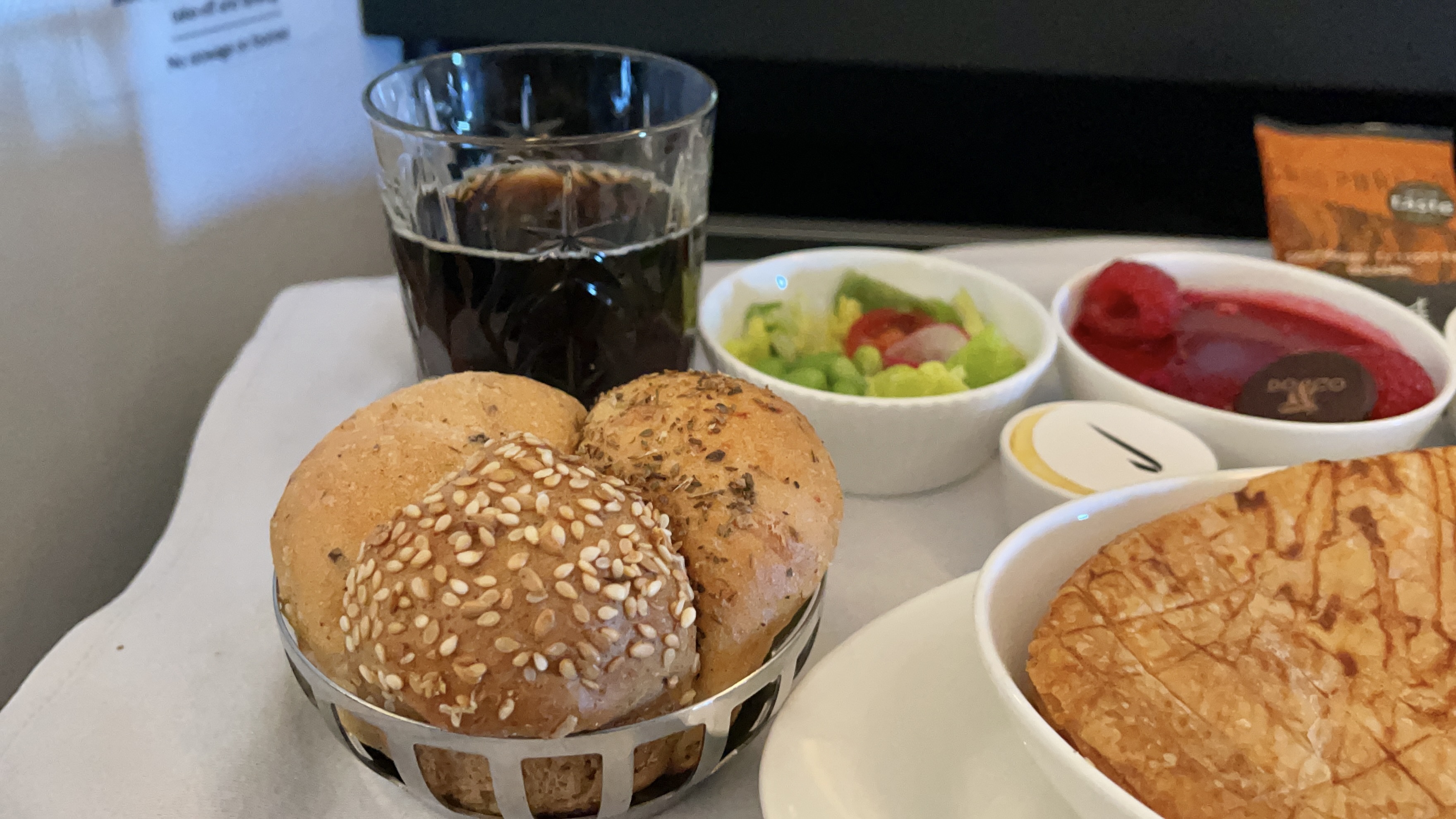 The Catering – The catering by Do&Co was actually very good on this flight. The food tasted fresh and delicious. The chicken pot pie that I ordered during dinner service was delicious, while the beef short ribs dish that my companion ordered was was also delectable. The pre-arrival chicken and pasta dish was generously portioned and equally very good. The crew also sets up a walk-up snackbar near the galley mid-flight.