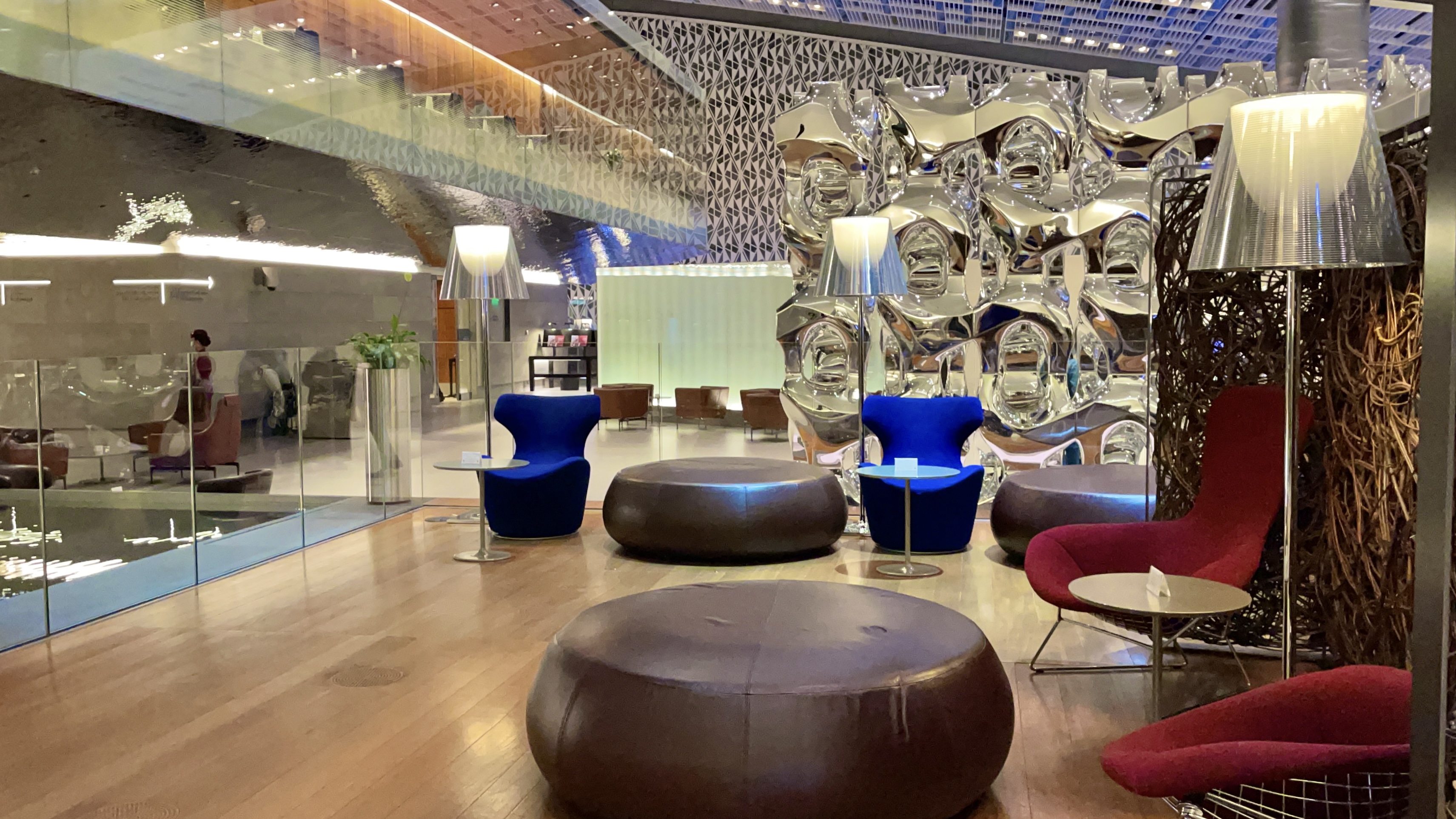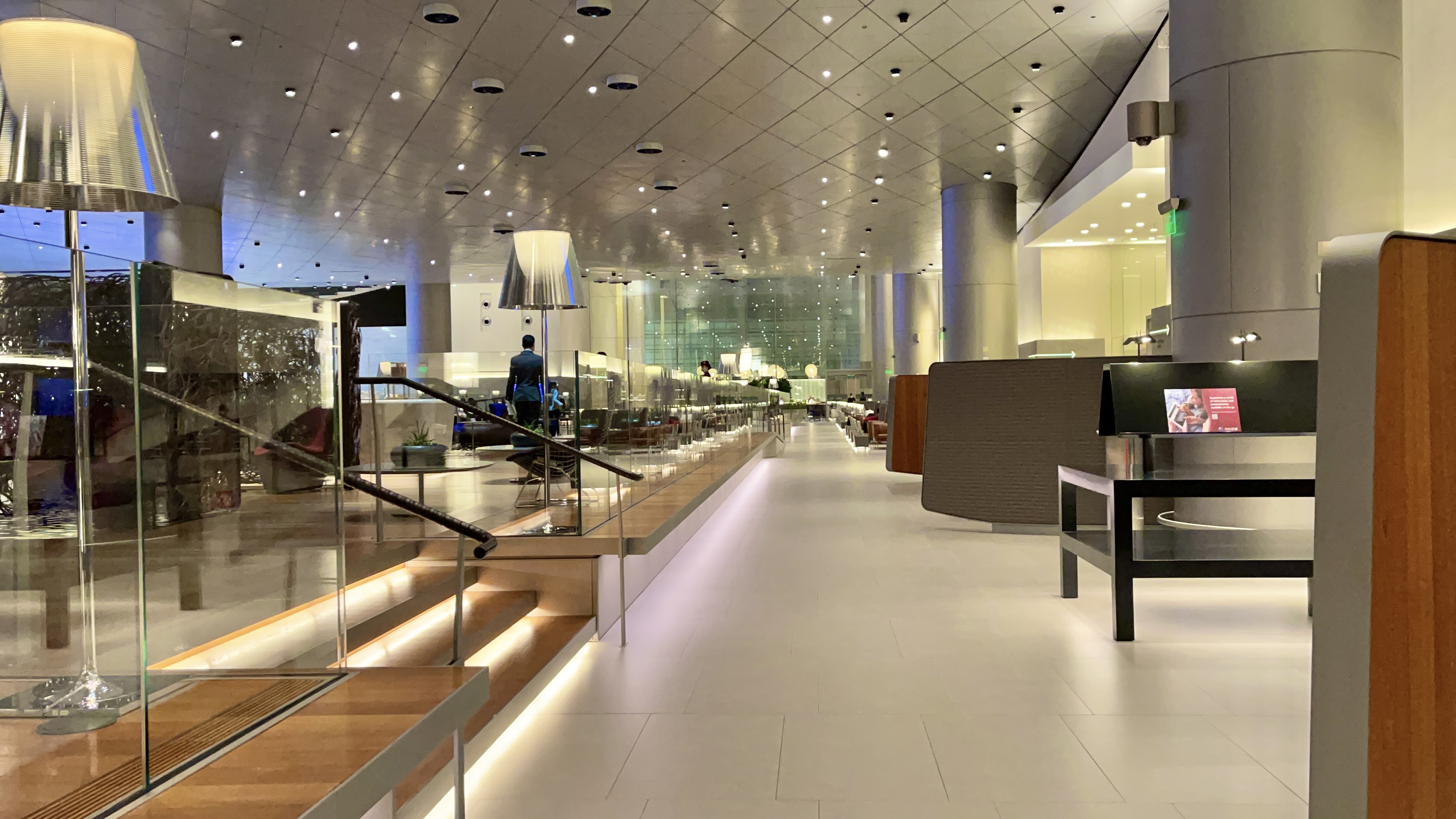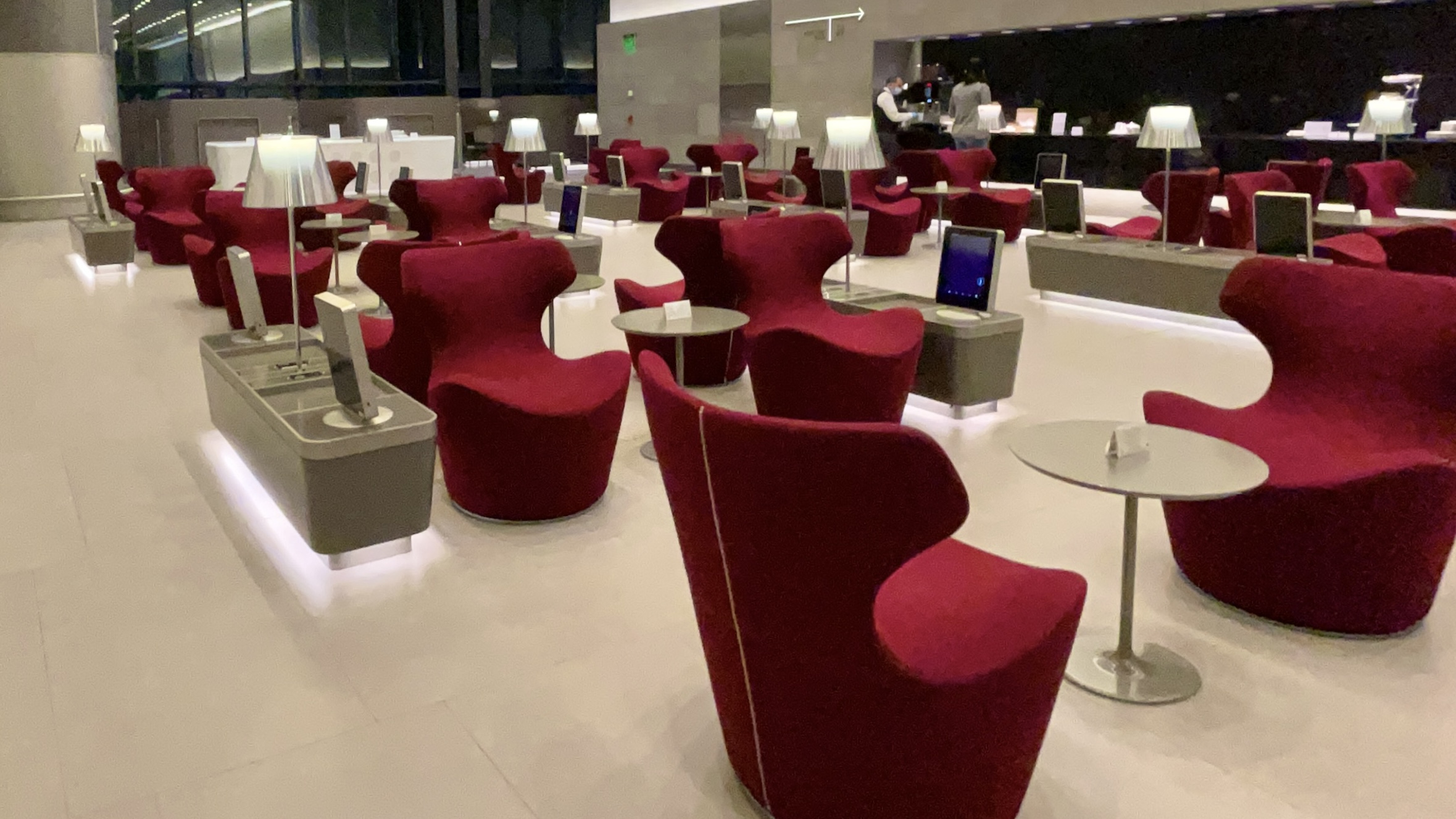 The Al Mourjan Lounge in Doha – The Al Mourjan lounge has gone through a lot of changes since the pandemic began. Most notable is the food offering. They now offer an excellent la carte dining service in addition to the now “assisted” buffet spread in the dining room. Not to mention the serve sushi! There is also plenty of comfortable seating through out this huge lounge.