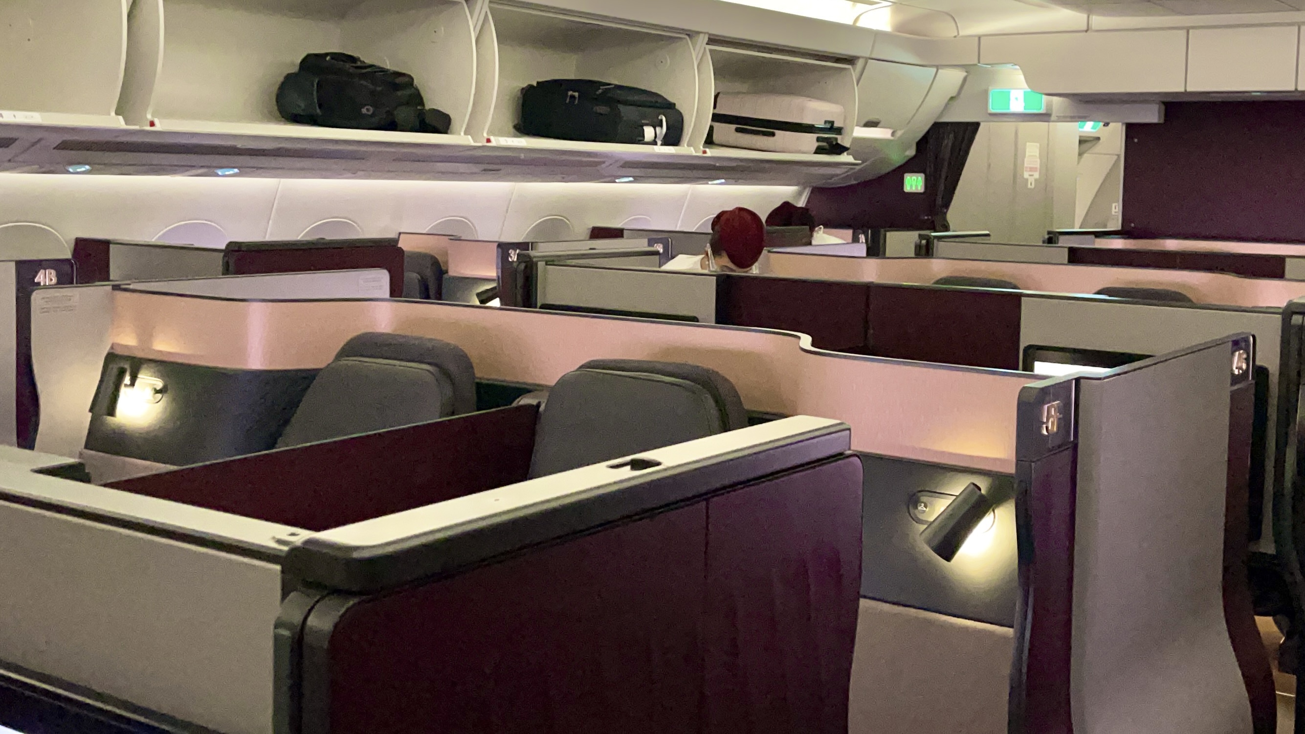 The seats – For those who’ve seen my other videos, you’ll know how much I’m a big fan of the QSuite product. The seats are very comfortable for sitting, dining, and lounging. Pair that with personal air nozzles and you’ll catch some serious ZZZs in-flight. The seats are all very private as well. Right after takeoff, you can close the suite door for additional privacy.
