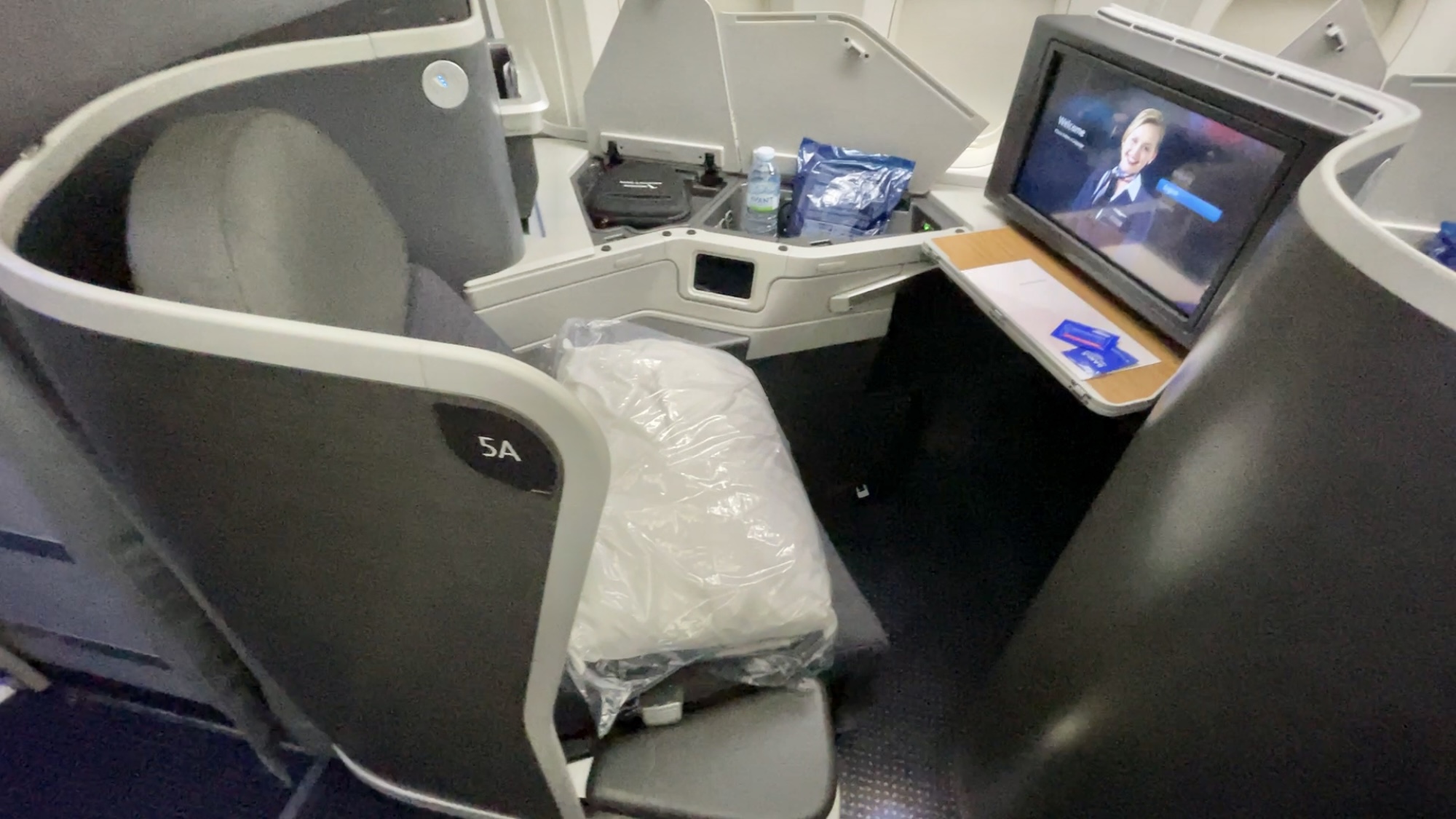Unlike the Zodiac seats, all of these Collins Aerospace seats face forward. These are traditional reverse herringbone configuration, and are popular with other carriers such as Virgin Australia, China Airlines, and now British Airways on their newer configurations. The seat is definitely much more comfortable and than the Zodiac seats on the 777-200 and offers more privacy. There are a lot of storage compartments to stow your belongings during the flight. The seats also lie fully flat and offers direct aisle access on all the seats.