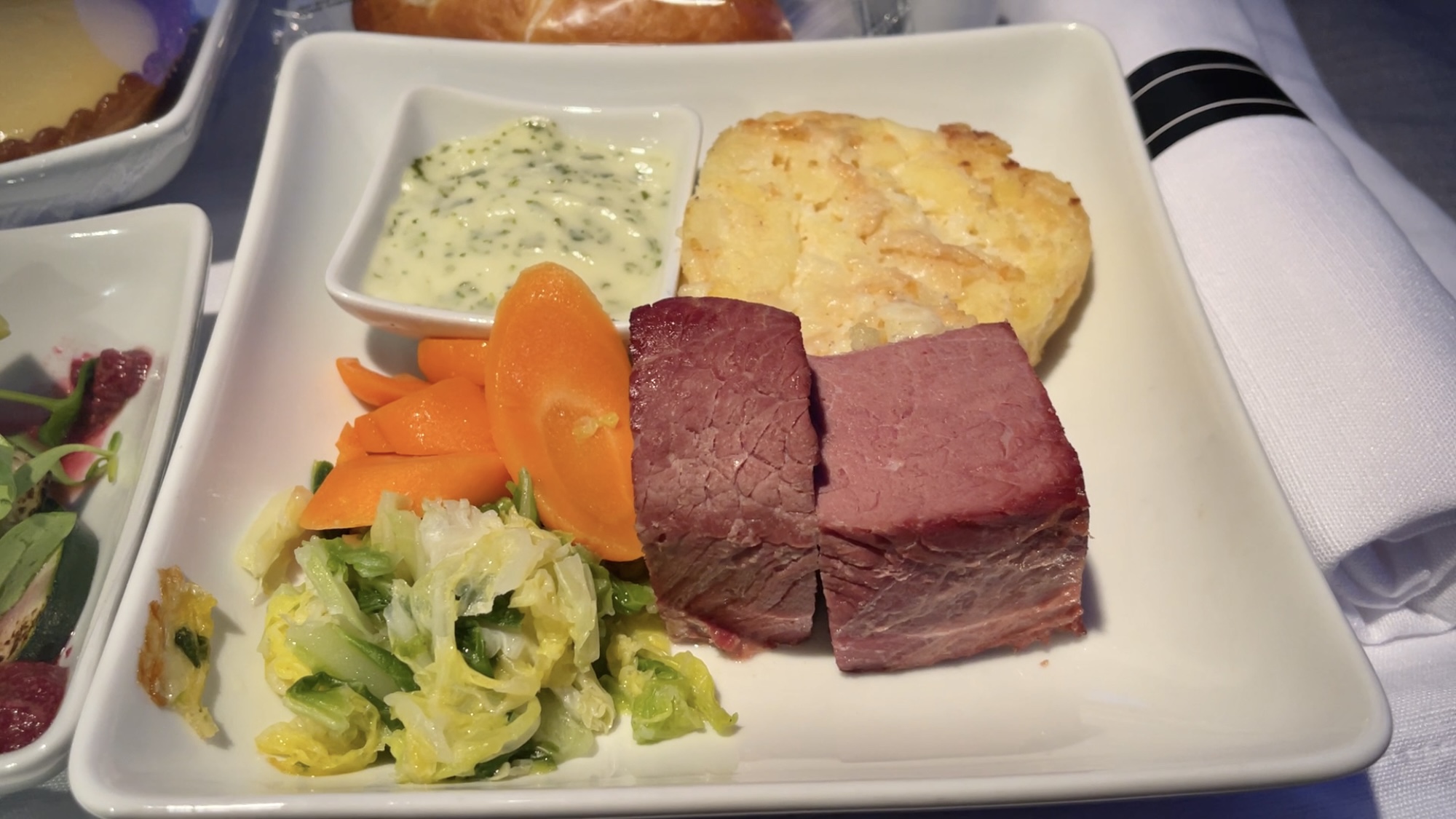 The catering – As I mentioned above the catering out of Madrid was pretty bad on this flight. The traditional corned beef main that I pre-ordered was very dry and tough, and the Toasted BBQ Sandwich for the pre-arrival was hard as a rock. As a consolation, the crew did setup a walk-up snackback mid-flight for a quick snack.