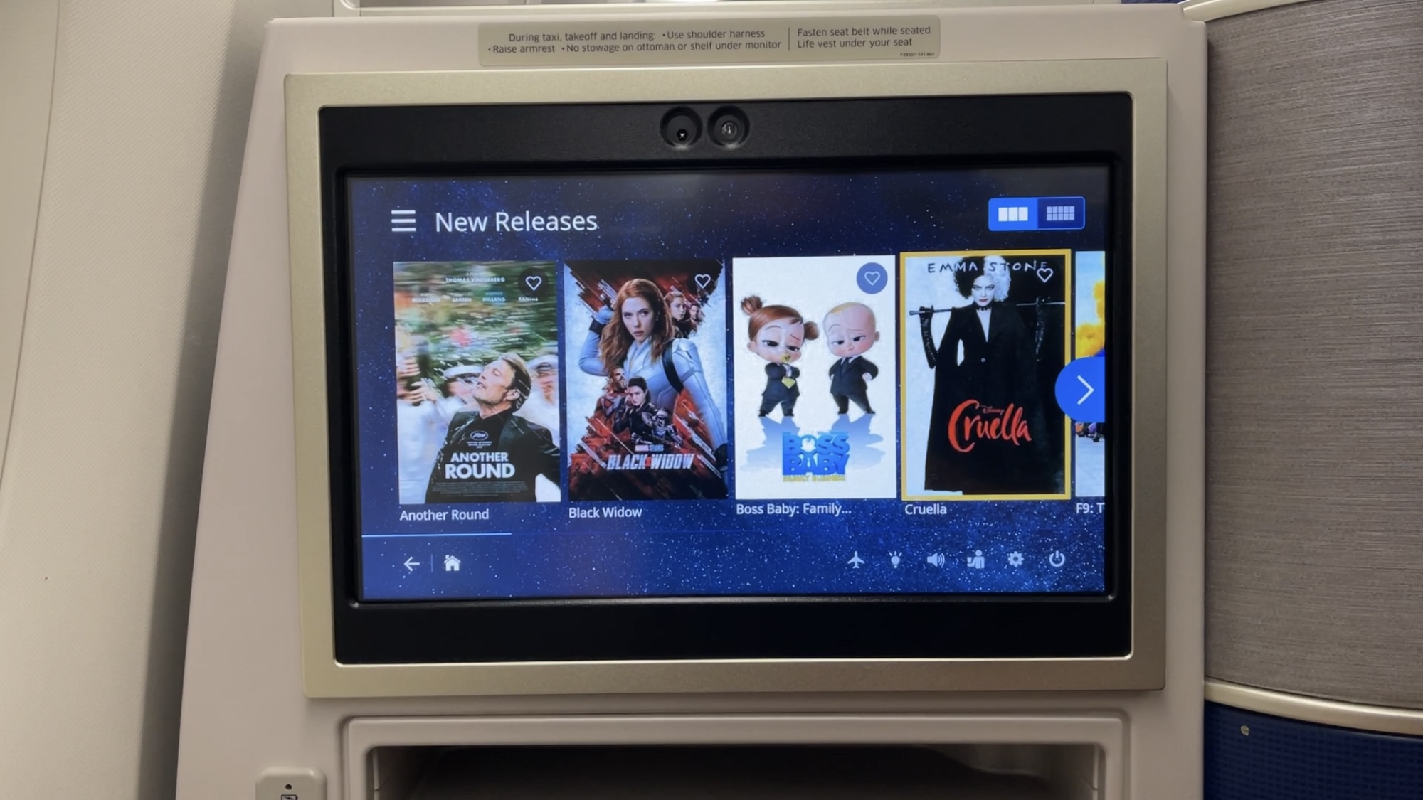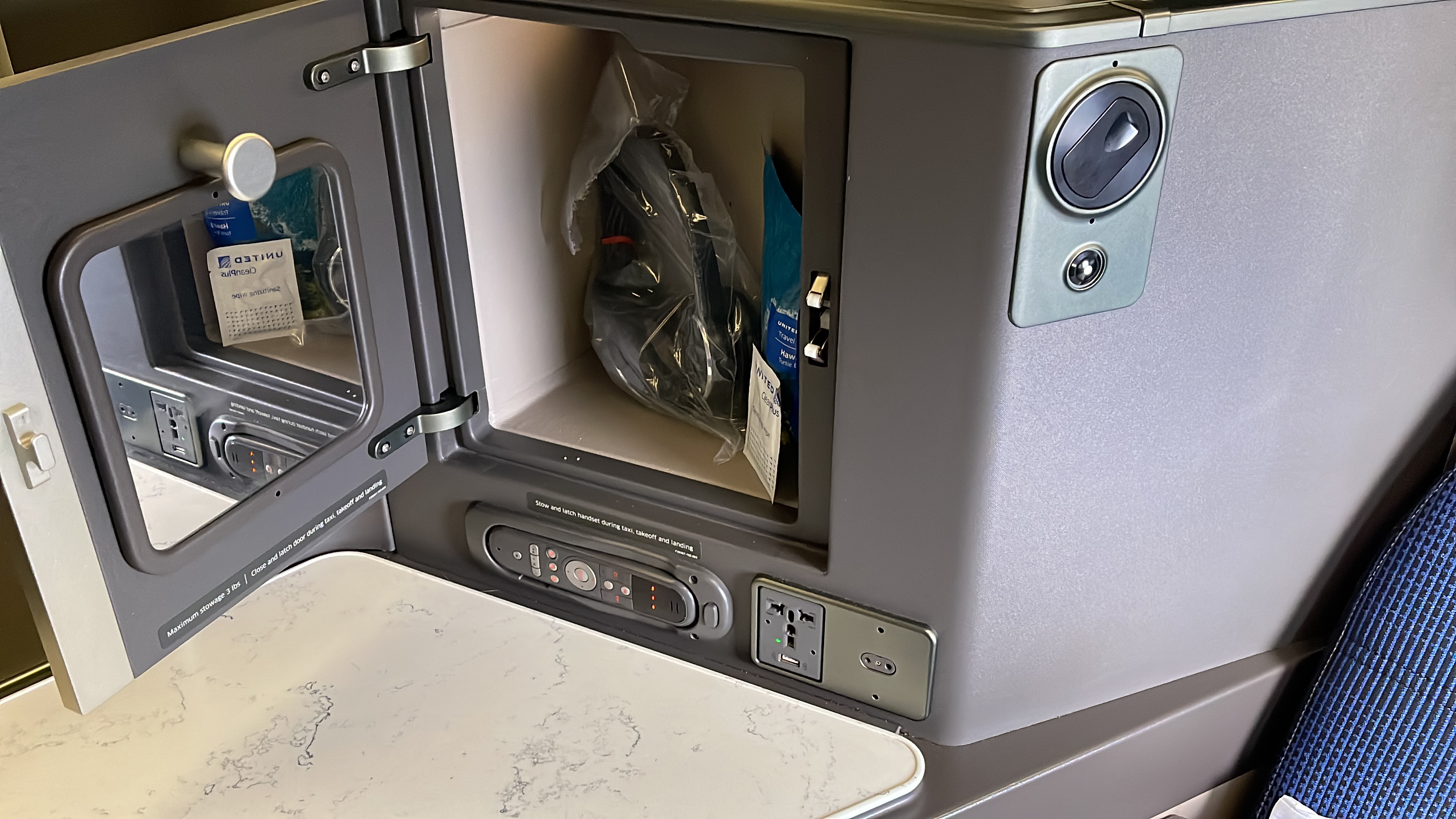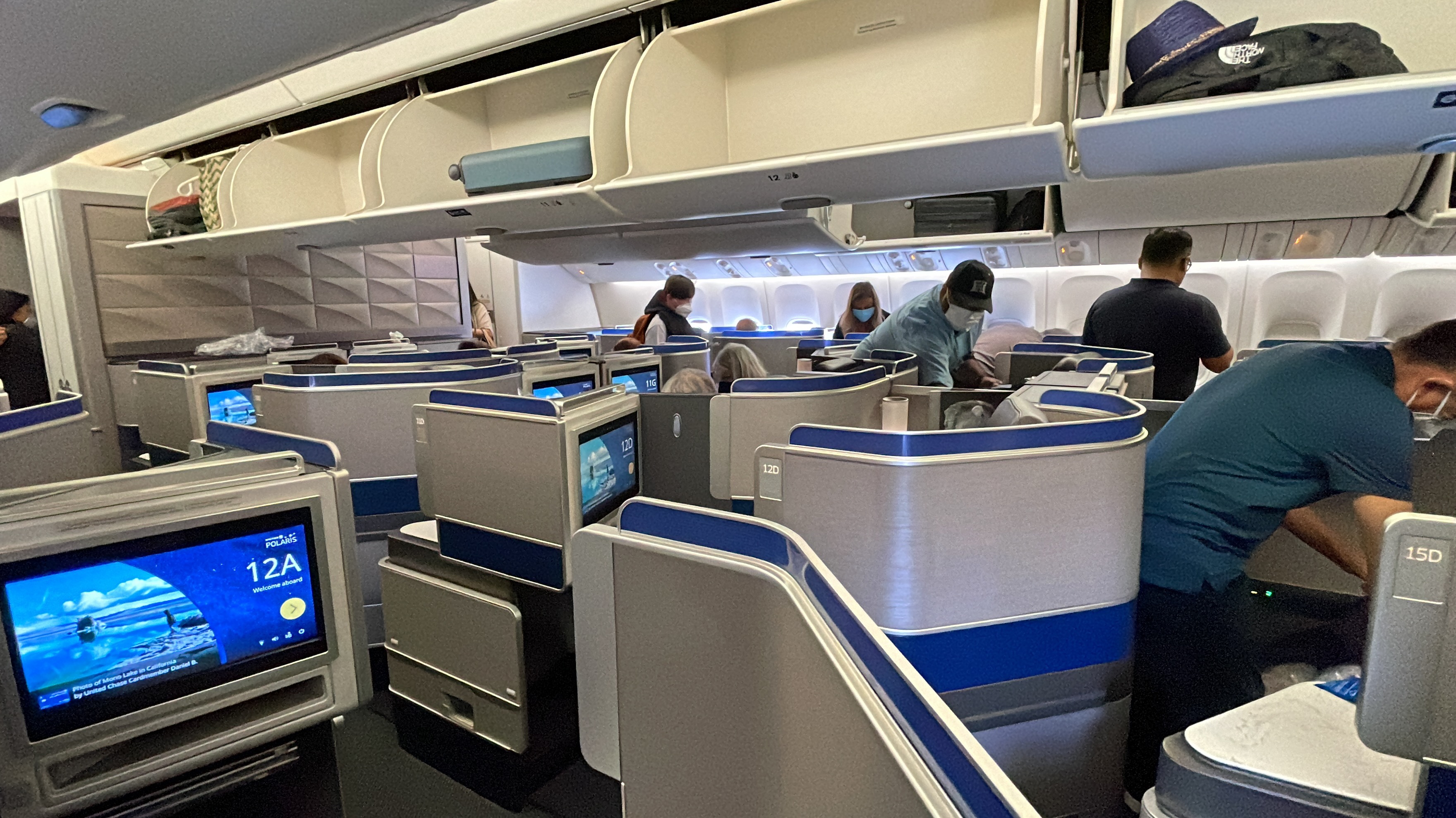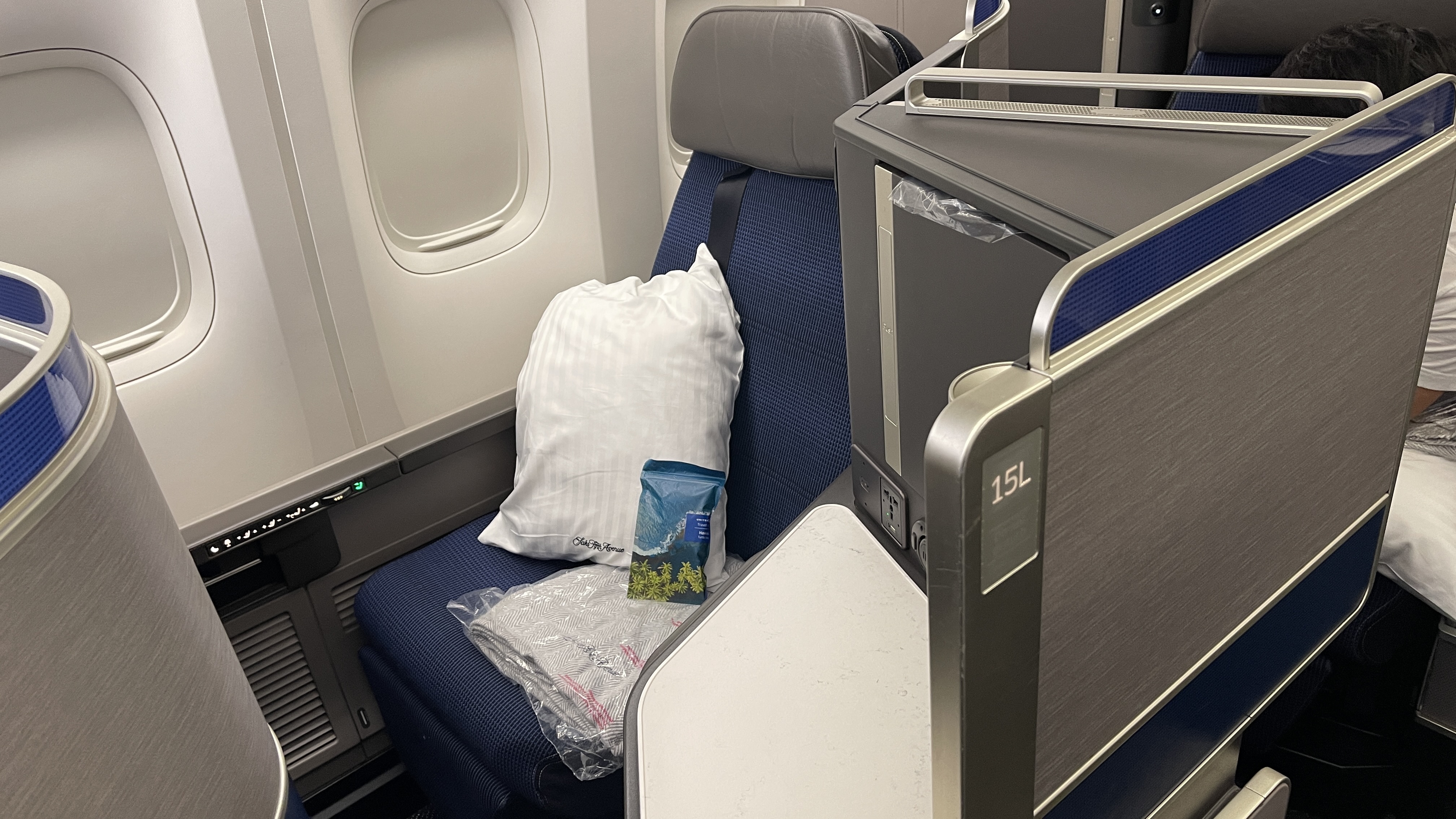 The seats – UA’s Polaris seats are very comfortable for lounging and turn into a full flat bed when you’re ready to sleep. The cabin is laid out in a 1-2-1 staggered configuration and all seats also feature direct aisle access.