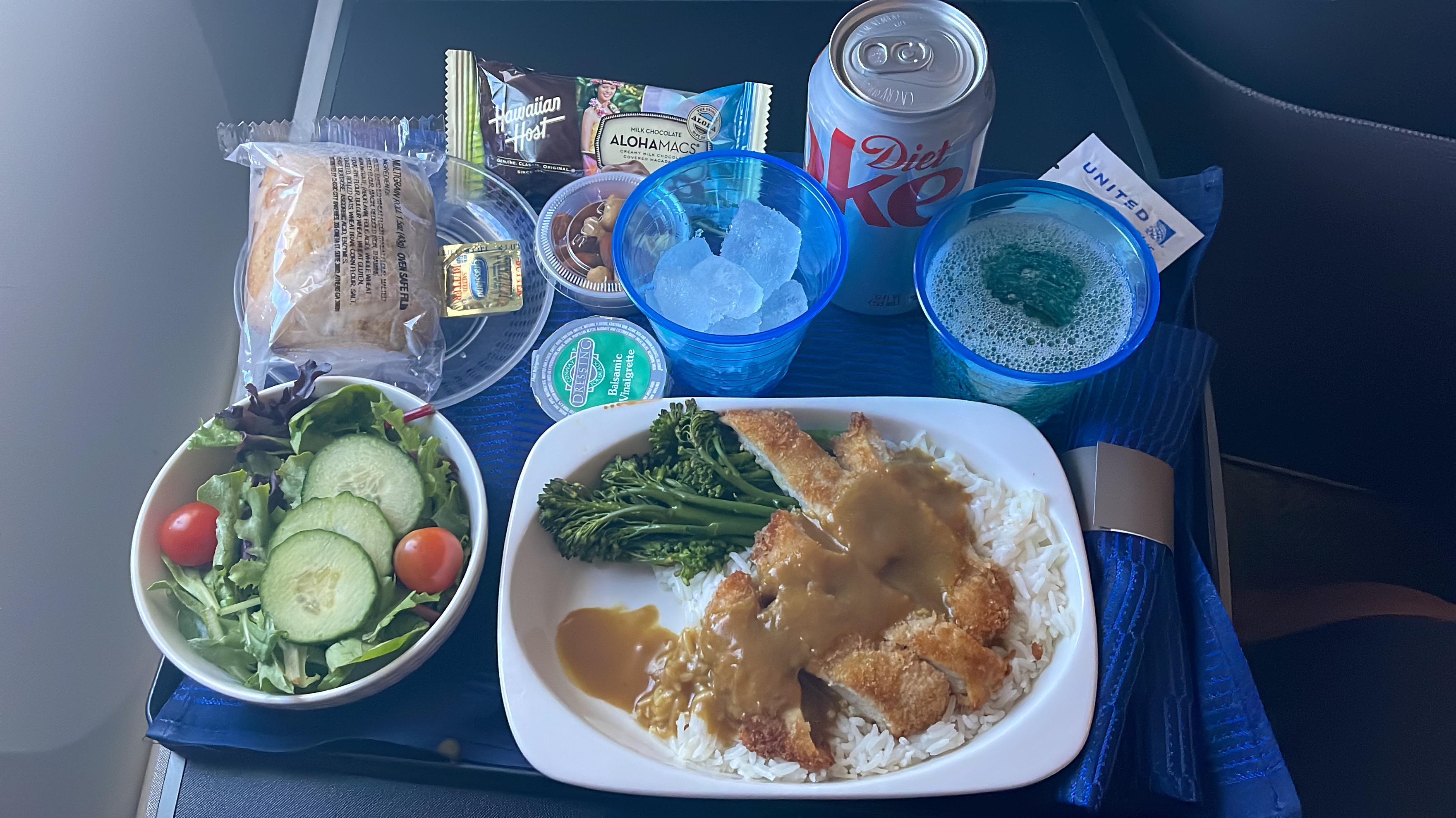 The Catering – The catering out of Honolulu was OK. United isn’t well known to have incredible in-flight catering, but the chicken katsu curry main I ordered was pretty good.