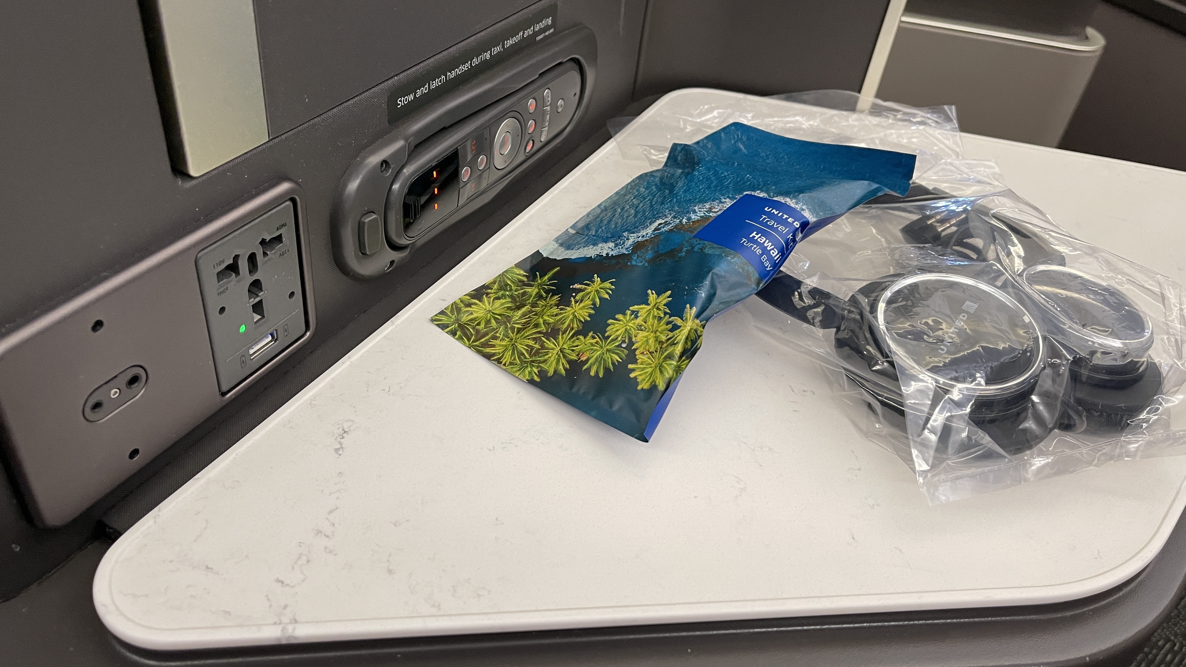 I’m usually an American Airlines flyer so it’s a nice change to fly United to get a comparison. These Club Suite seats are comfortable, but I feel that American’s reverse herringbone seats on their widebody fleet, are much more comfortable. The catering from Honolulu was good, but forgettable. The crew working this flight were friendly, charming, and upbeat. The in-flight amenities were somewhat lacking, but I guess adequate for this medium haul flight. The icing on the cake was the personal air nozzle, which I greatly appreciated.