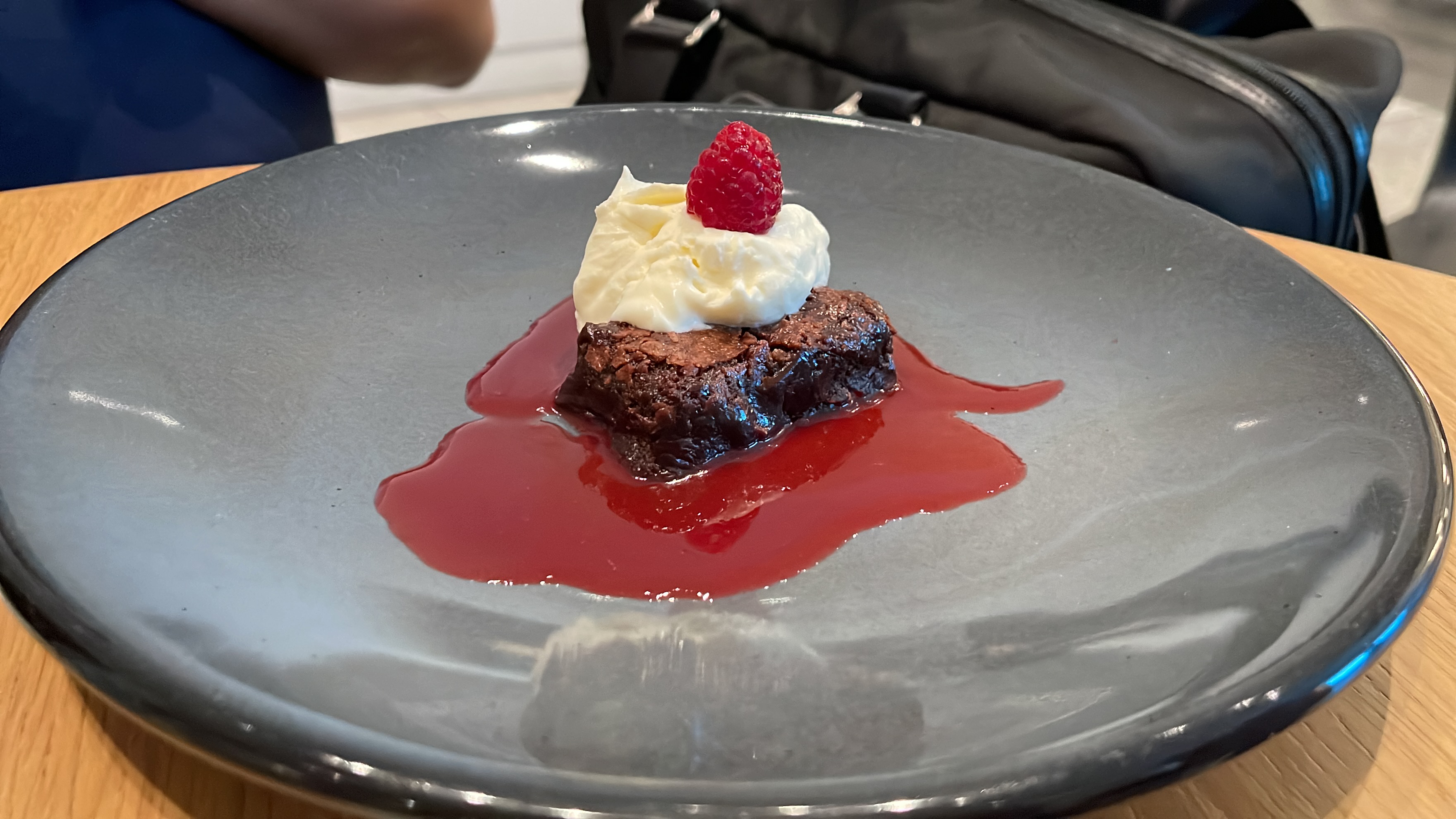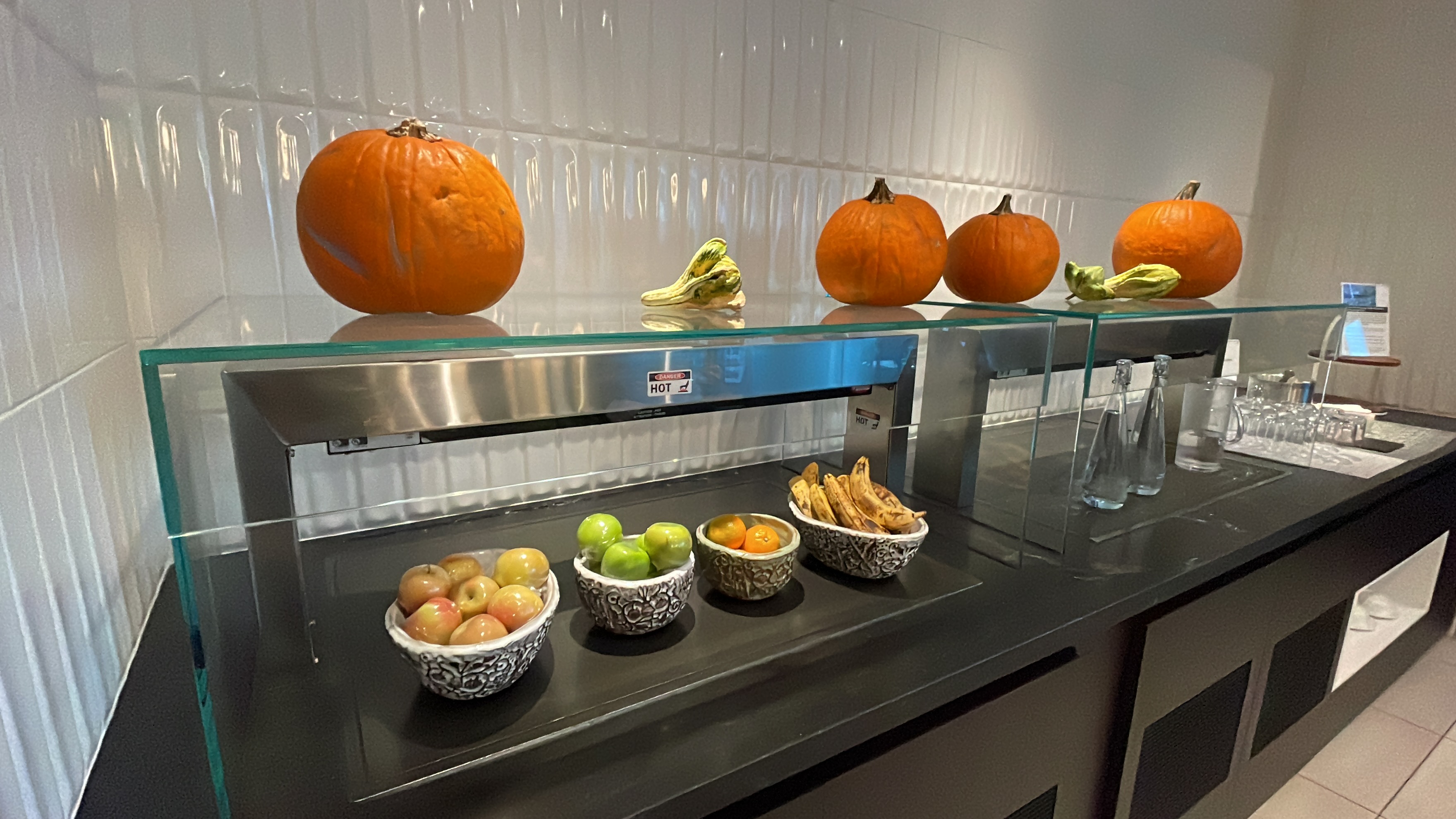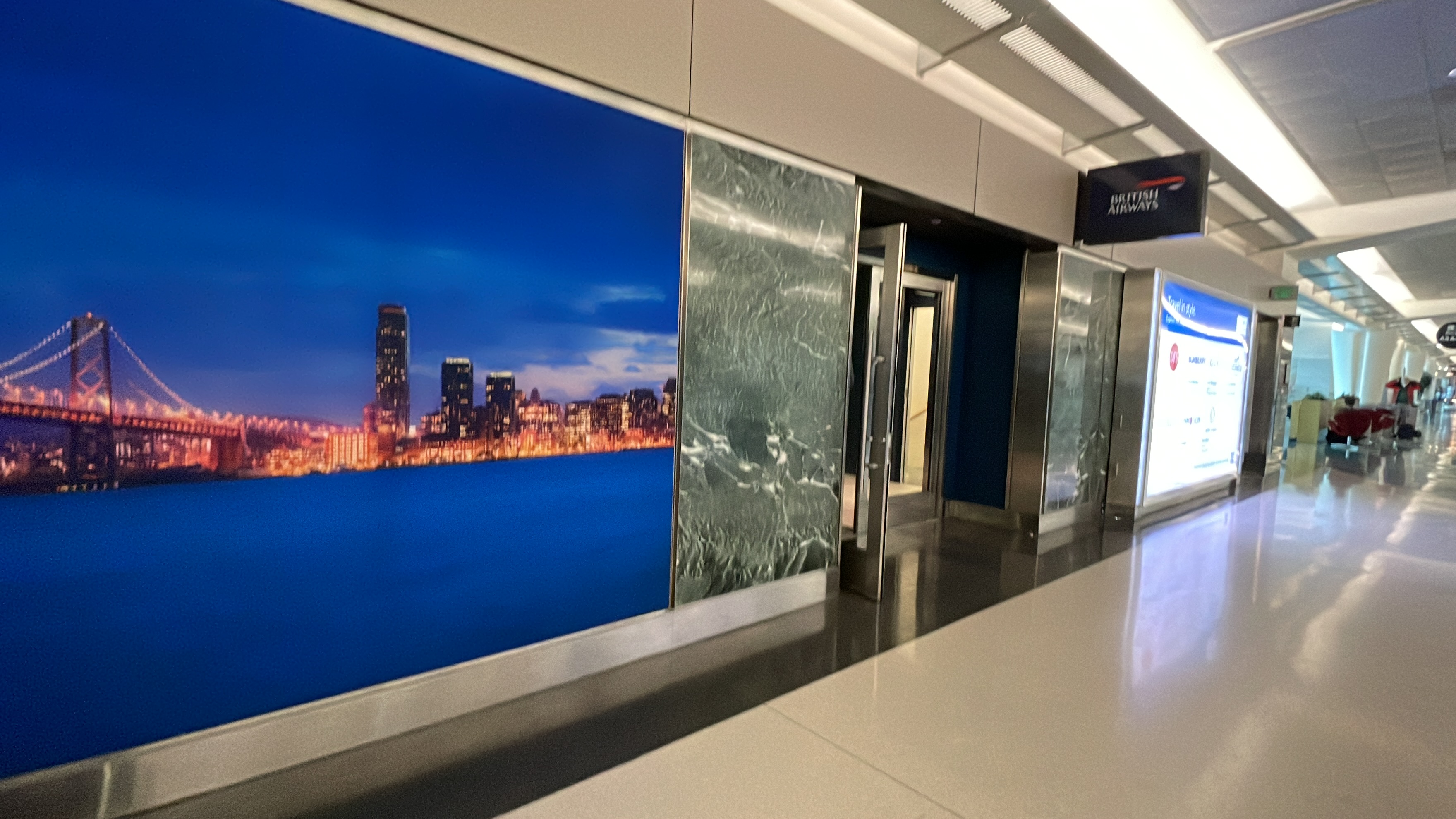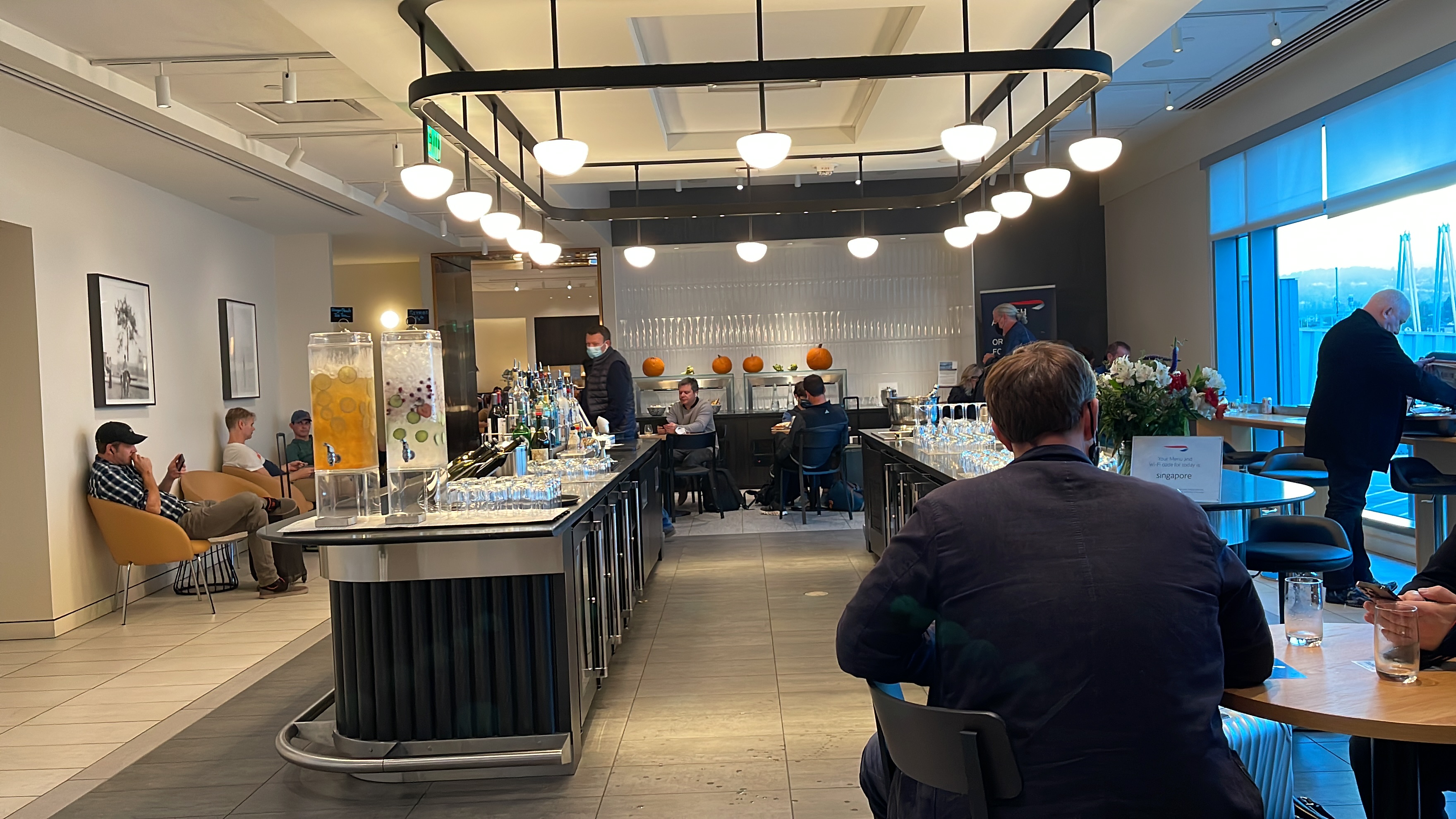 The British Airways Galleries Lounge at SFO – BA recently renovated their lounge at SFO and it’s beautiful! The lounge offers plenty of seating, with light a la carte dining via QR Code. There was also full bar and champagne service, as well as a decent buffet spread. One unique feature, and for me probably the best part of the lounge is the direct access to the jet bridge.