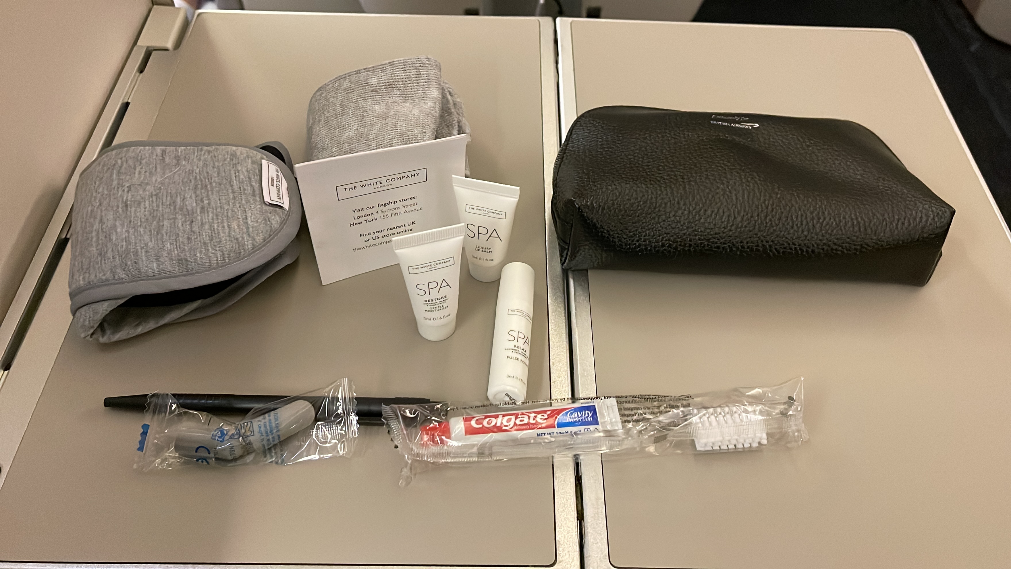 The Amenities – BA does not offer business class passengers pajamas or slippers in business class, but I liked the black mini leather pouch by The White Company London. The bedding was also very good and included a mattress pad for when you make your bed. The lavatories were small, but they were clean and nicely stocked with toiletries.