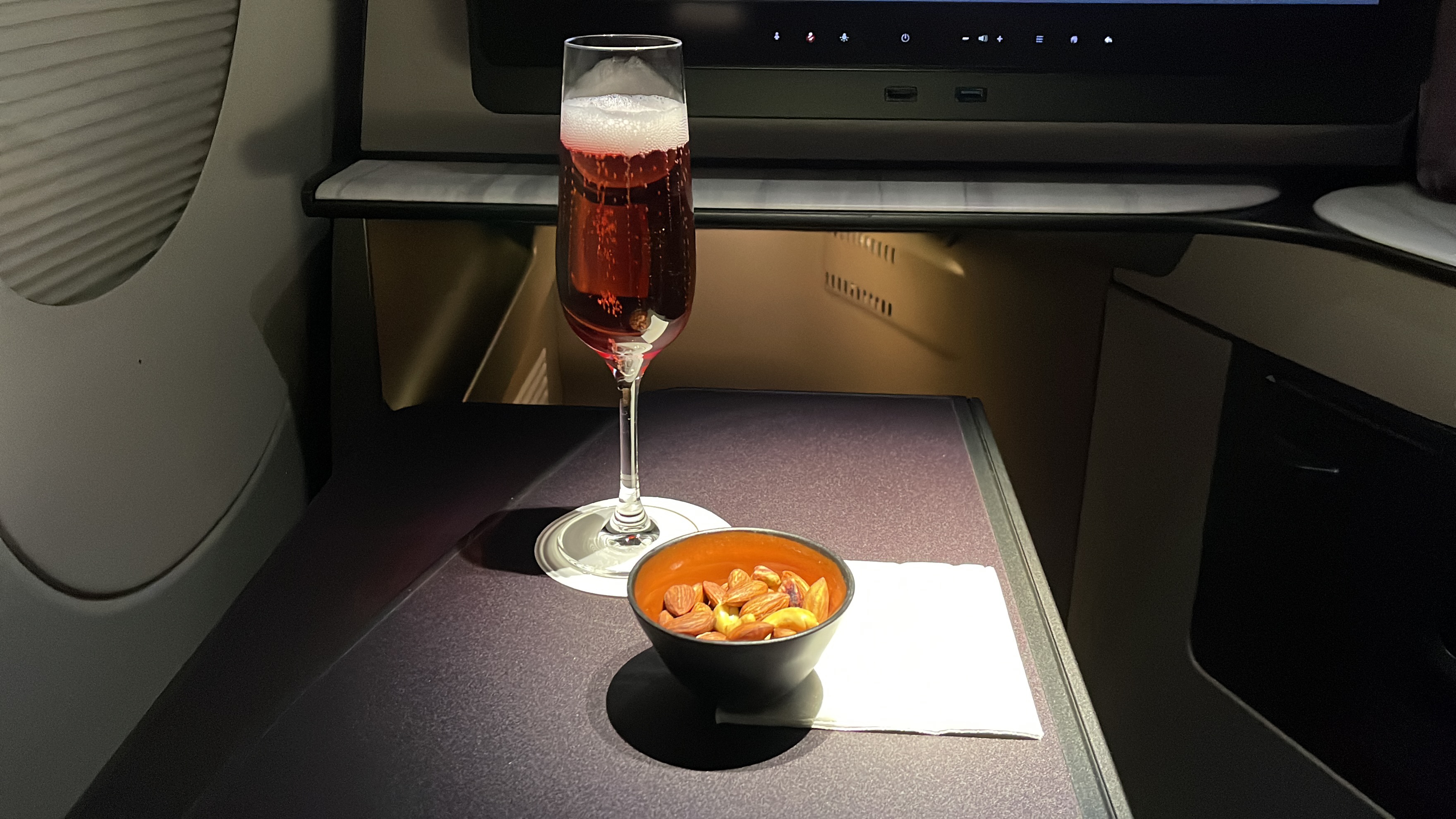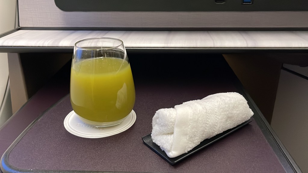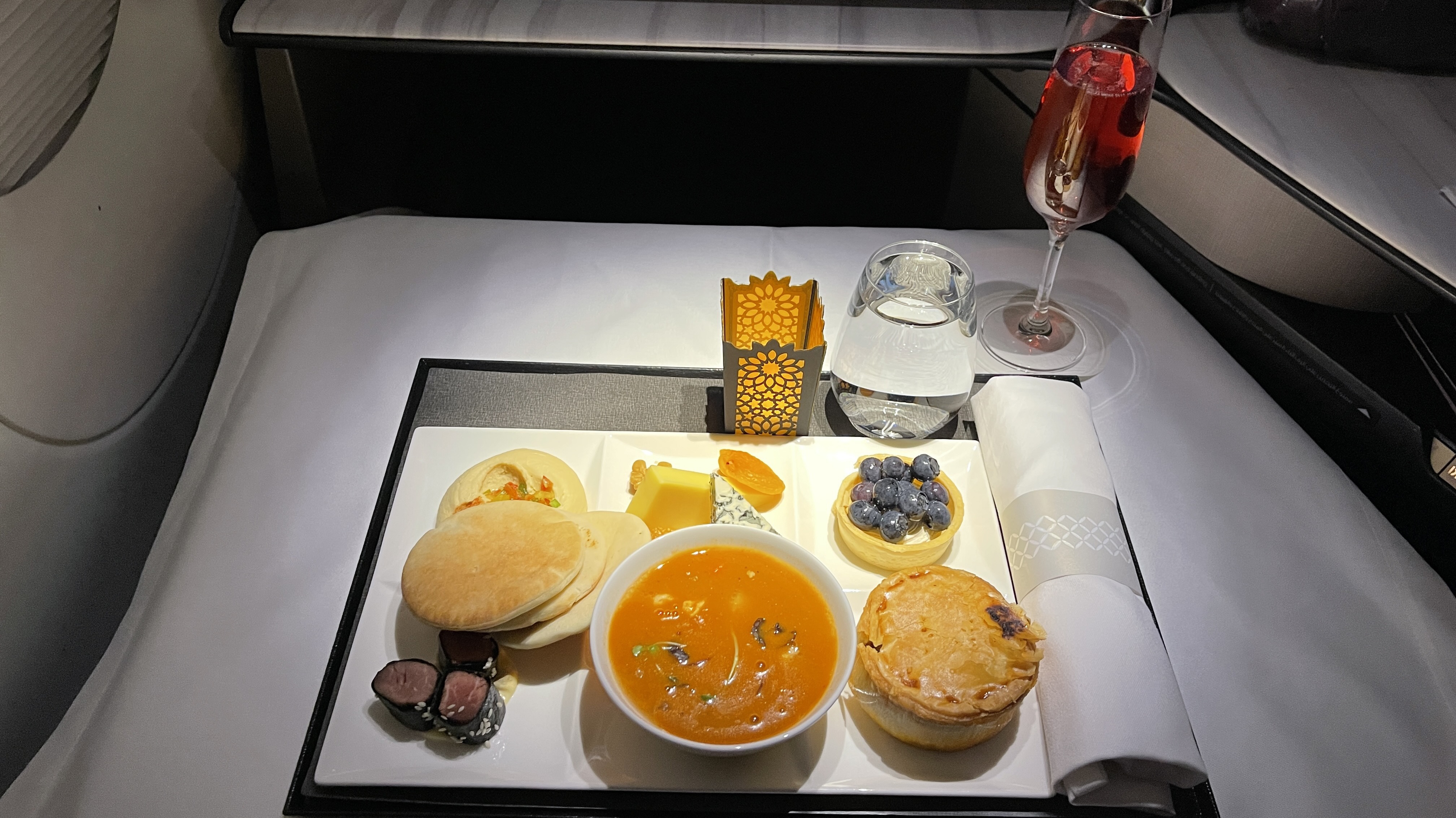 The service – The crew that we interacted with were very charming, and eager to please. They offered us a pre-departure beverage, and loungewear before takeoff. They were also quick to respond to our requests and plated our meals beautifully.
