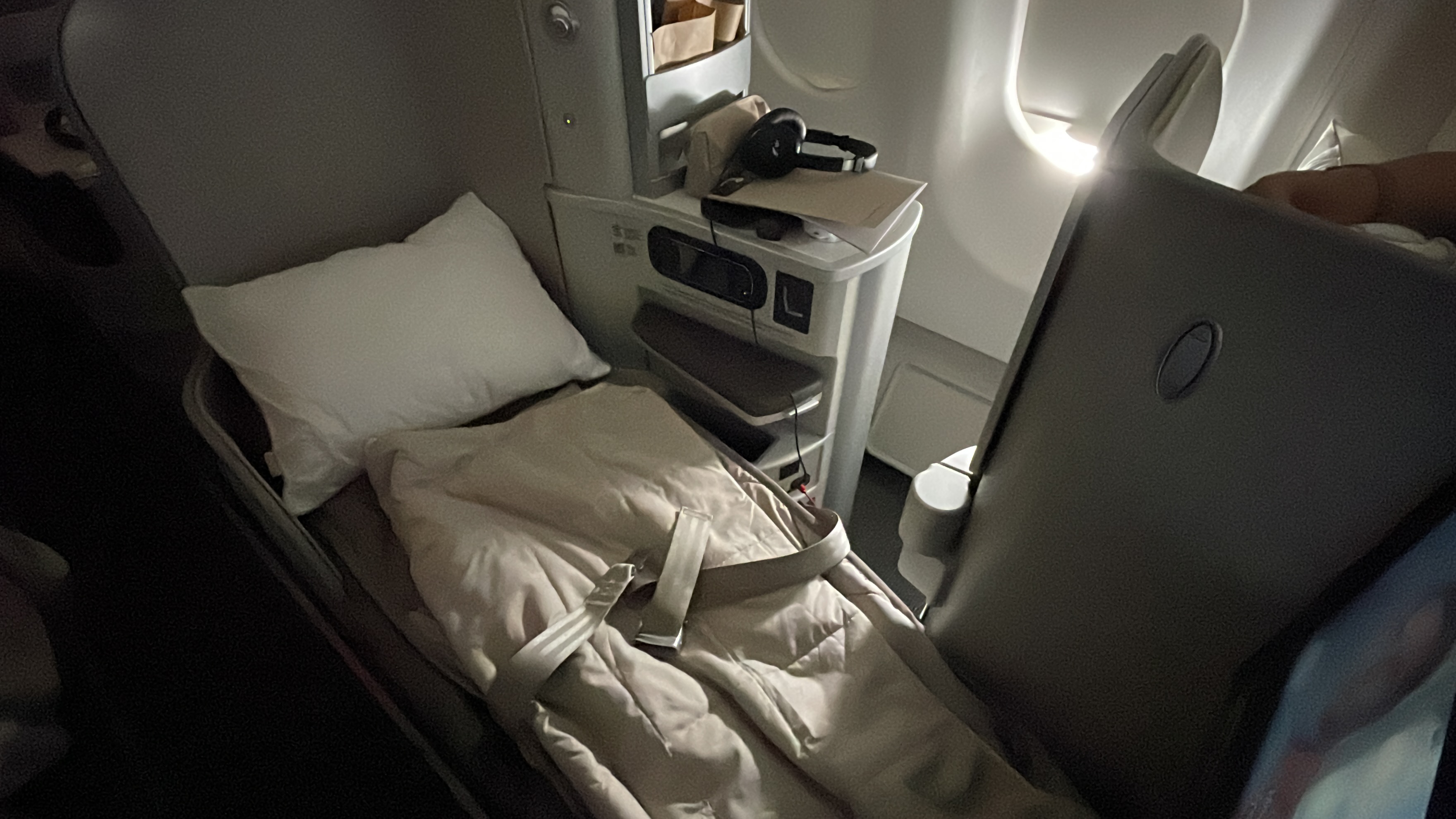 The seats – I thought the Solstys seats were very comfortable for sitting, lounging, and sleeping. It offers plenty of storage space and you get a nice ottoman to rest your feet on when lounging. I was able to get some 6 hours of sleep on this flight, which is fantastic. As a tip: For solo travelers, the even-numbered window seats offer the most privacy, as the seats are closer to the window than the Aisle. On the flipside, the odd-numbered center seats are “honeymoon seats” that are ideal for couples traveling together.