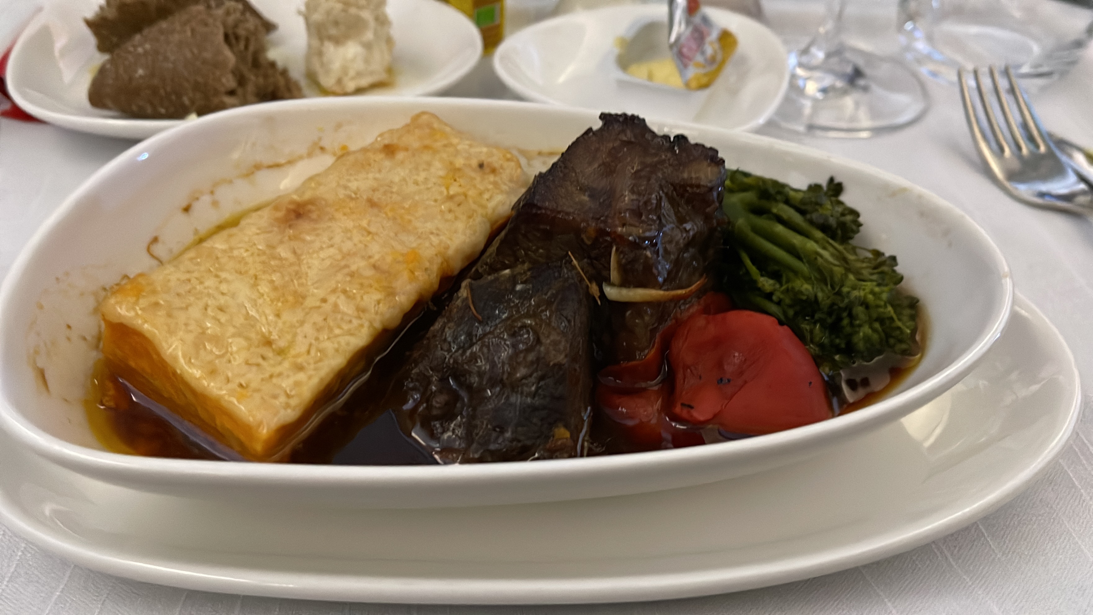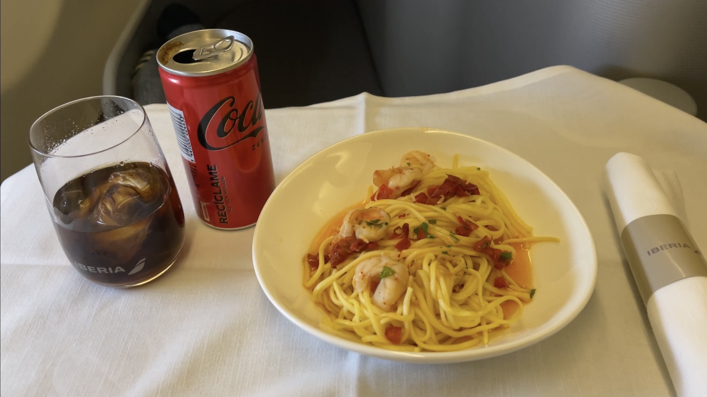 The catering – I am a fan of Spanish food. This is actually the reason we go to Spain, so needless to say I was excited to try Iberia’s Spanish-inspired catering. The starter I ordered which was fava bean salad with veggies was tasteless and did not look appetizing. Meanwhile, my companion ordered the Sardines in olive oil. Sadly he also did not like his dish (which was shocking since he is a big fan of spanish canned sardines). He mentioned that sardines did not taste right and the dish overall was disappointing. For the main, I ordered the beef cheek in Rioja reduction. It was an OK dish, but some parts of the meat was way overcooked and almost inedbile. My companion ordered the Gambas al Ajillo (Spanish-style garlic prawns), which he said was pretty good, but the dish only had 4 very small prawns. For dessert, we both had the chocolate ice cream, which was delicous! –It was the highlight of the meal. The second meal service was done 90-minutes prior to arrival. I ordered the Spanish Omelet, which was served cold with chorizo, marinated zucchini, and cheese on the side. The dish tasted fine, but I thought it was rather “light” considering we have been on the air for 10+ hours. My companion opted for the seafood pasta dish, which again was rather small and only contained 3 small pieces of shrimp this time. The only consolation I would say is Iberia offers an extensive selection of very good Spanish wines.