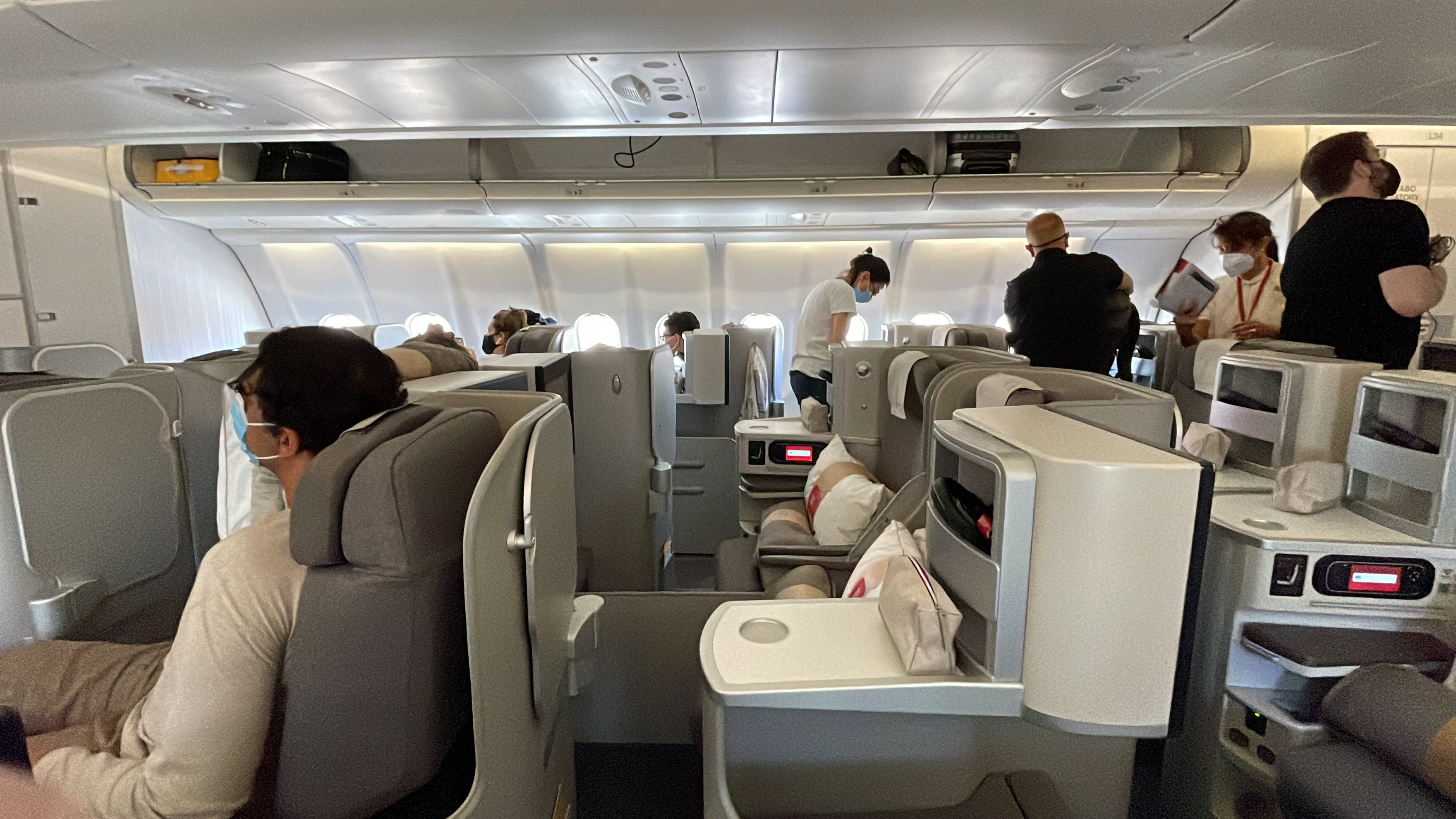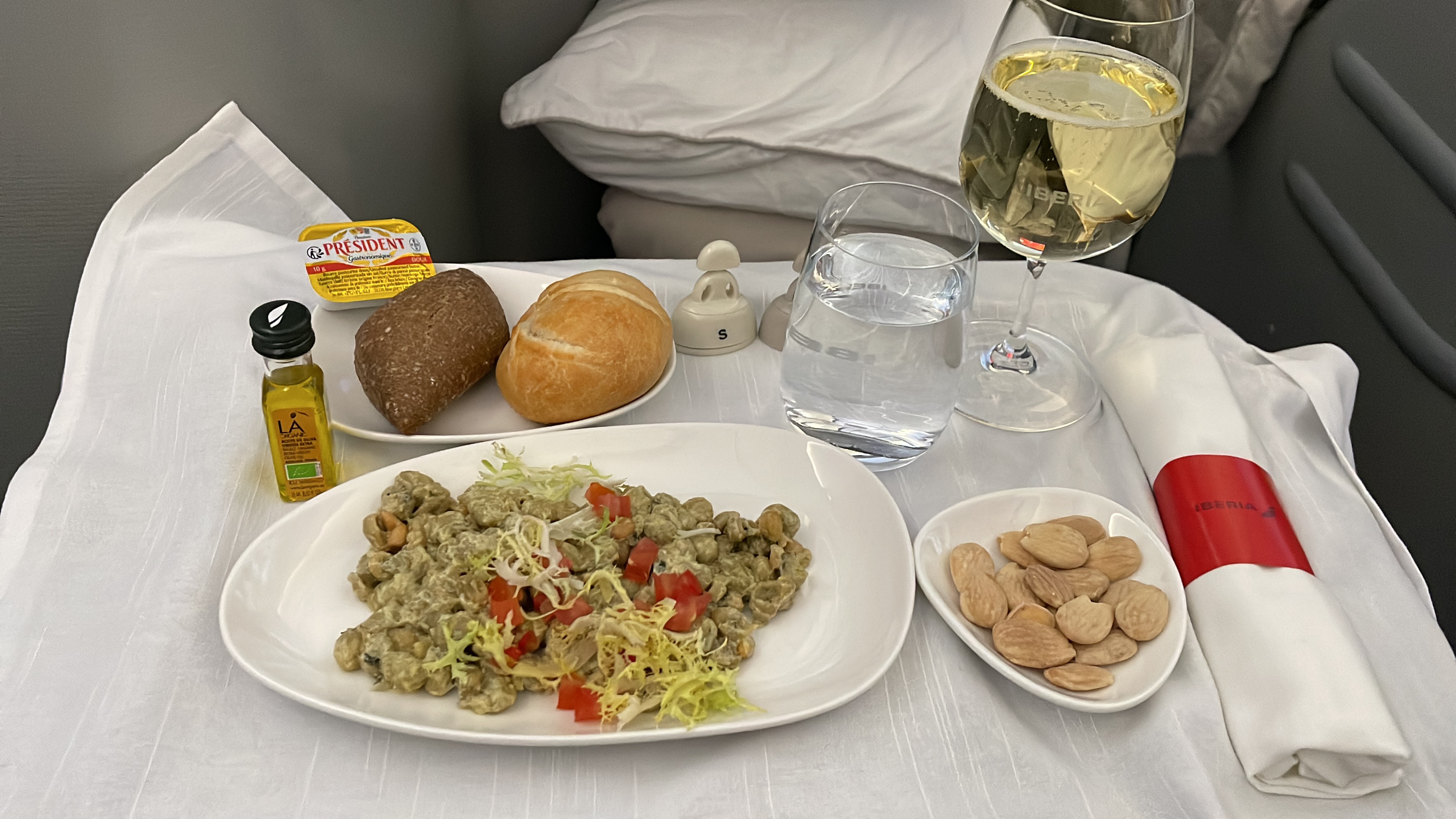 This was our first time flying Iberia’s longhaul business class product on their Airbus A330, so we were very excited to see what the business class experience is like with the Spanish carrier. Iberia opted for the Solstys-style lie-flat seats for their business class product. All seats are forward-facing and are configured in a 1-2-1 staggered configuration. Each business class seat has direct aisle access (without having to step over your neighbor). The service from the senior crew working our flight was actually very good. The flight attendants we interacted with during the flight were friendly and prompt with our orders. The biggest disappointment for me on this flight was the catering. I thought the food quality and selection was rather poor, considering this was a 12+ hour flight. We were hoping to taste some good Spanish dishes, but sadly did not get any on this flight
