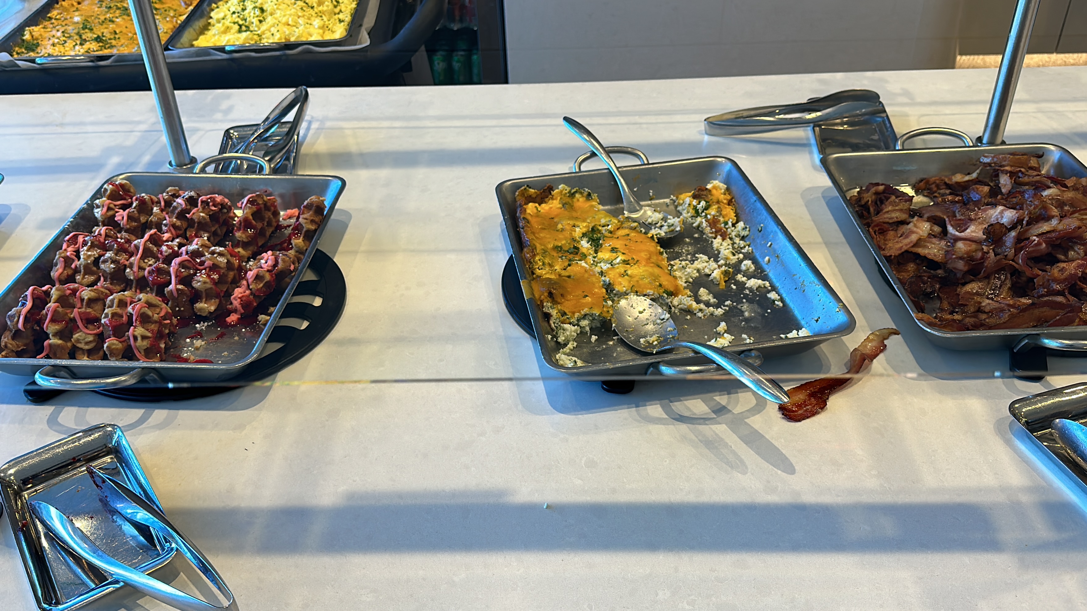The Lounge- We spent a good amount of time at American’s Flagship Lounge in JFK. It is a decent lounge with plenty of seating, but it does get rather crowded at times. The buffet spread offered a few hot items and the beverage selection was also very good, though nothing compared to Qatar’s Lounges in Doha.