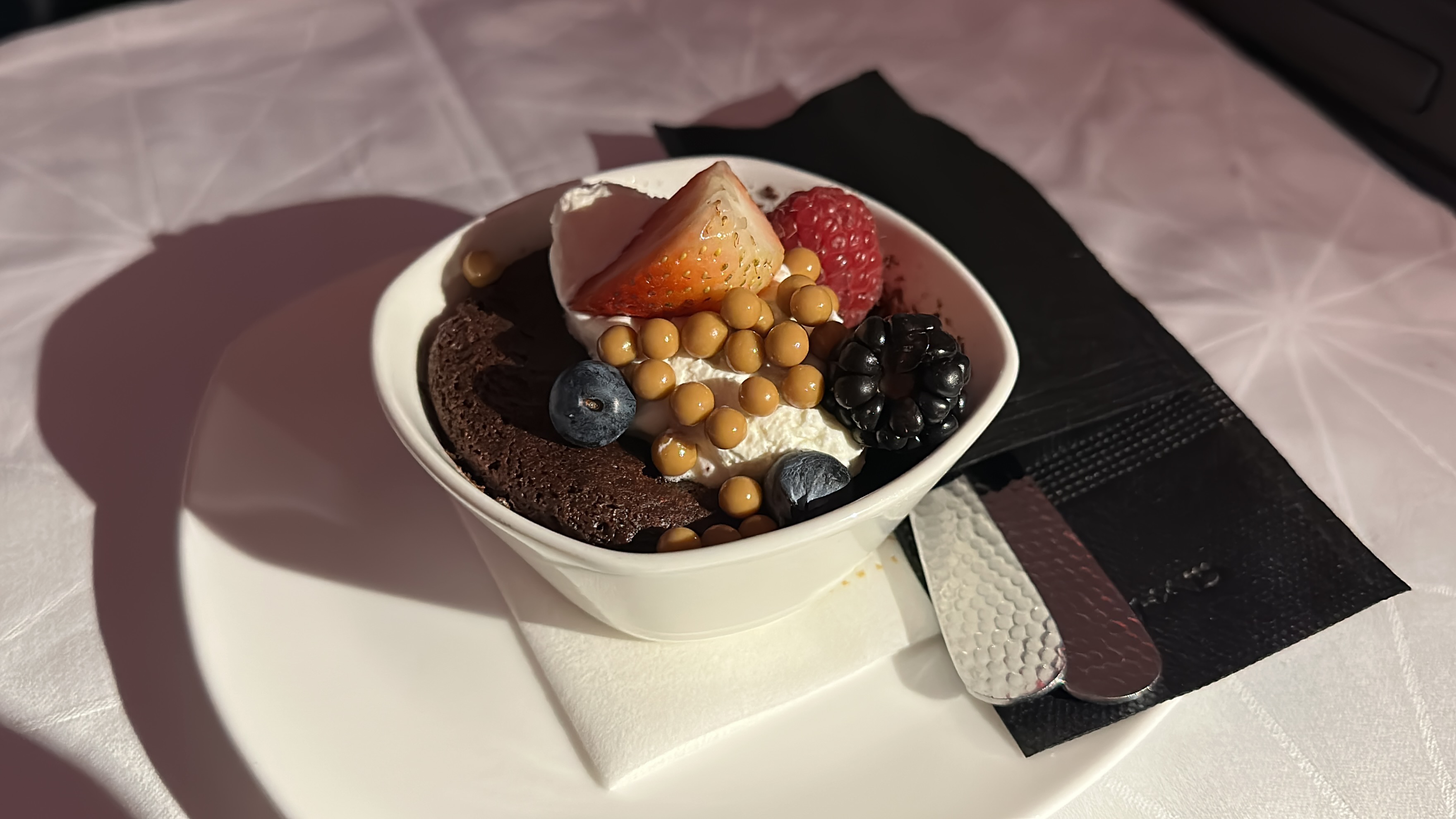 The onboard service – The flight attendants seemed to be professional in their duties, serving the pre-departure drinks and hot towels promptly. They were also efficient during the meal service, presenting the food and drinks beautifully and being proactive in offering drink refills. However, their demeanor was rather cold, giving off an impression that they may have been going through the motions rather than enjoying their work. Sadly, there was a noticeable lack of smiles, making the experience feel a bit less personal.
