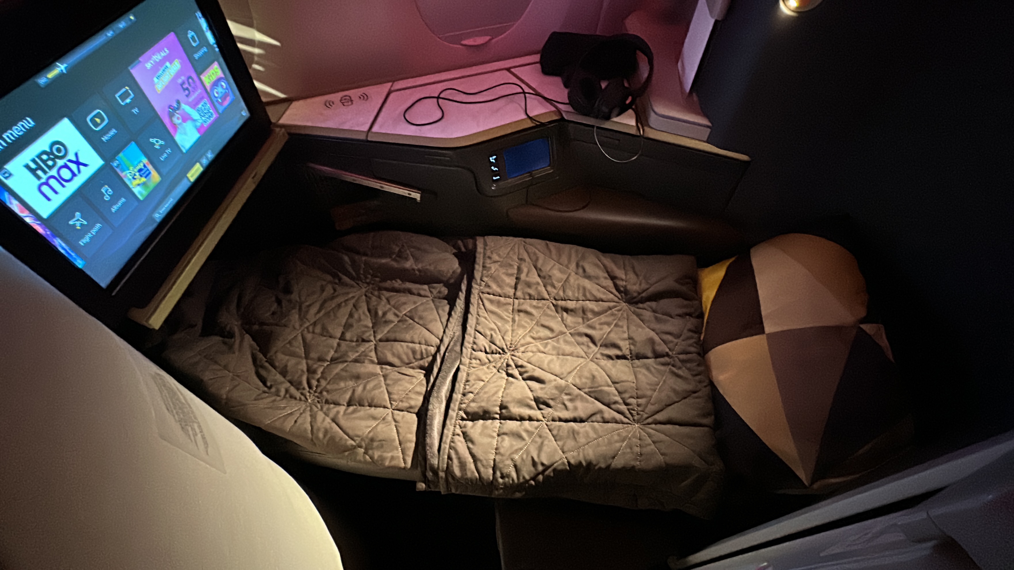 The cabin temperature – The cabin temperature was a bit of a struggle during the flight, as the warmth made it difficult to get a comfortable rest. Unfortunately, the lack of personal air nozzles only added to the discomfort. I found myself waking up feeling hot and sticky, which was a shame during an otherwise enjoyable flight.