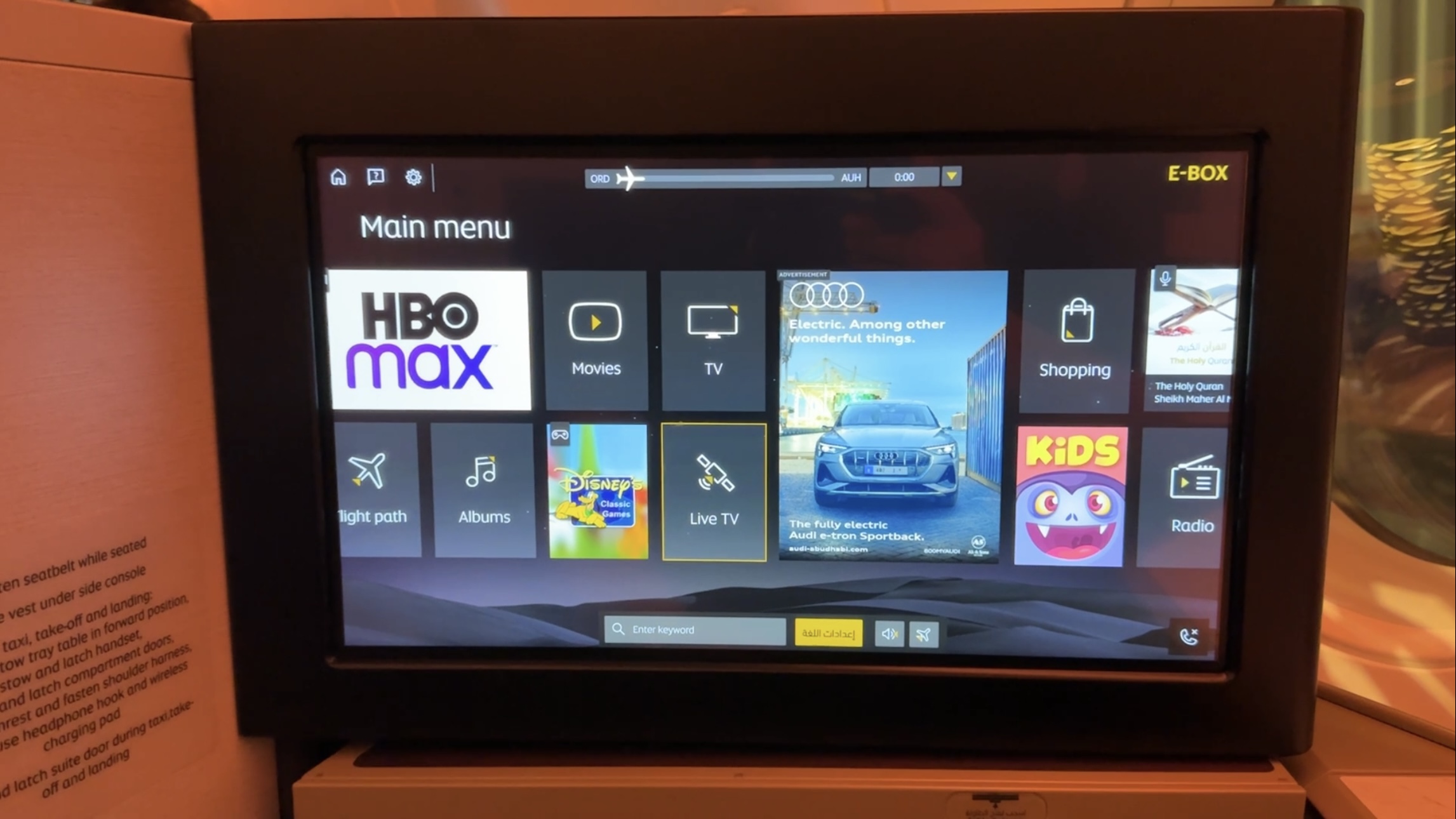 The IFE – The IFE on Etihad’s Airbus A350 was top-notch! With their eBOX entertainment system, you’ll never run out of options for entertainment during the flight. Whether you want to watch the latest movies, TV shows, listen to music, play games or anything else, the system has it all. And if you need to stay connected, Etihad’s in-flight WIFI is a great option, with decent speeds and reasonable pricing at $29.99 for 24 hours or 350MB (whichever comes first). Etihad provides noise-canceling headphones, but I ended up just using my own wireless headset via bluetooth transmitter.