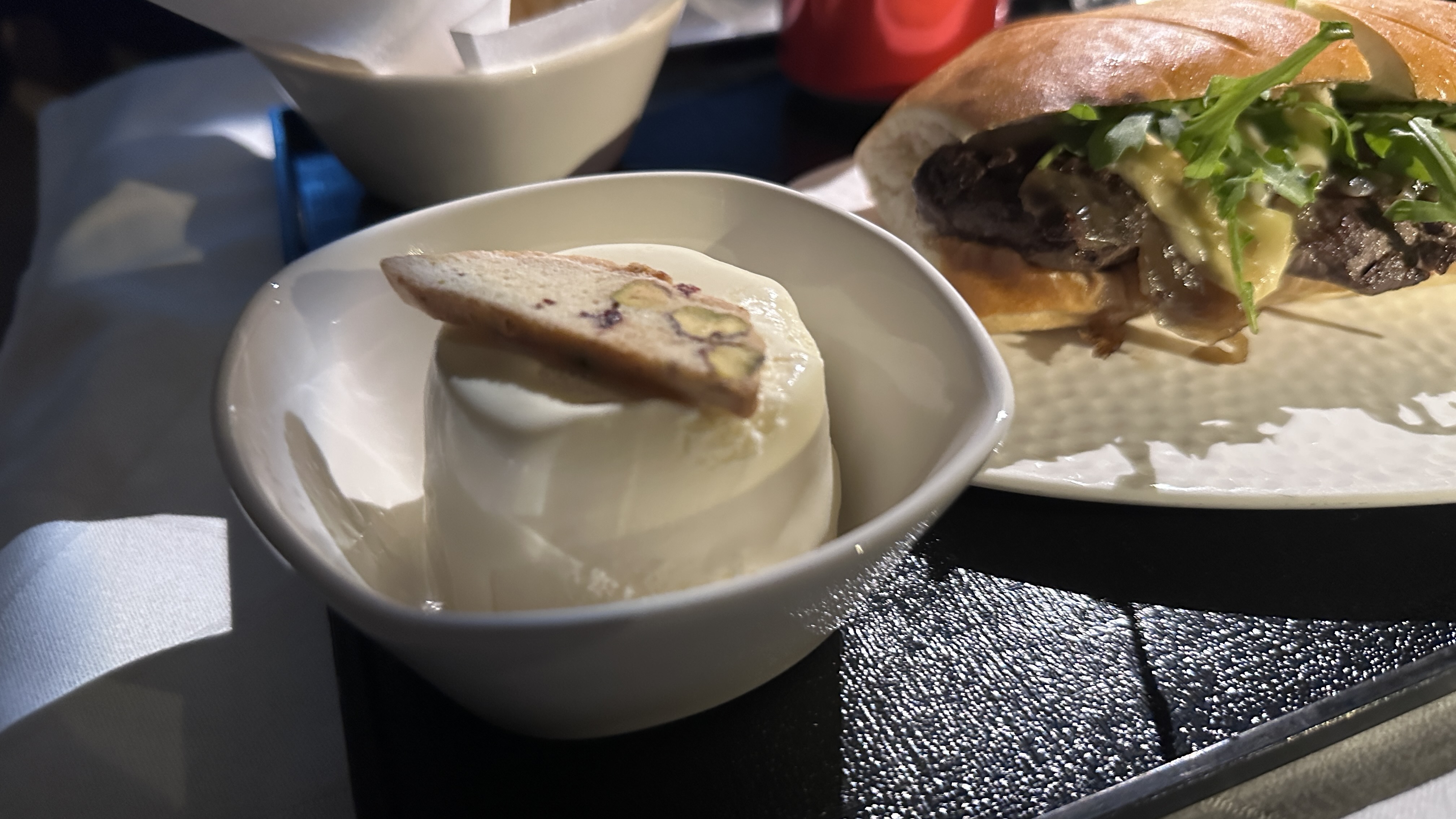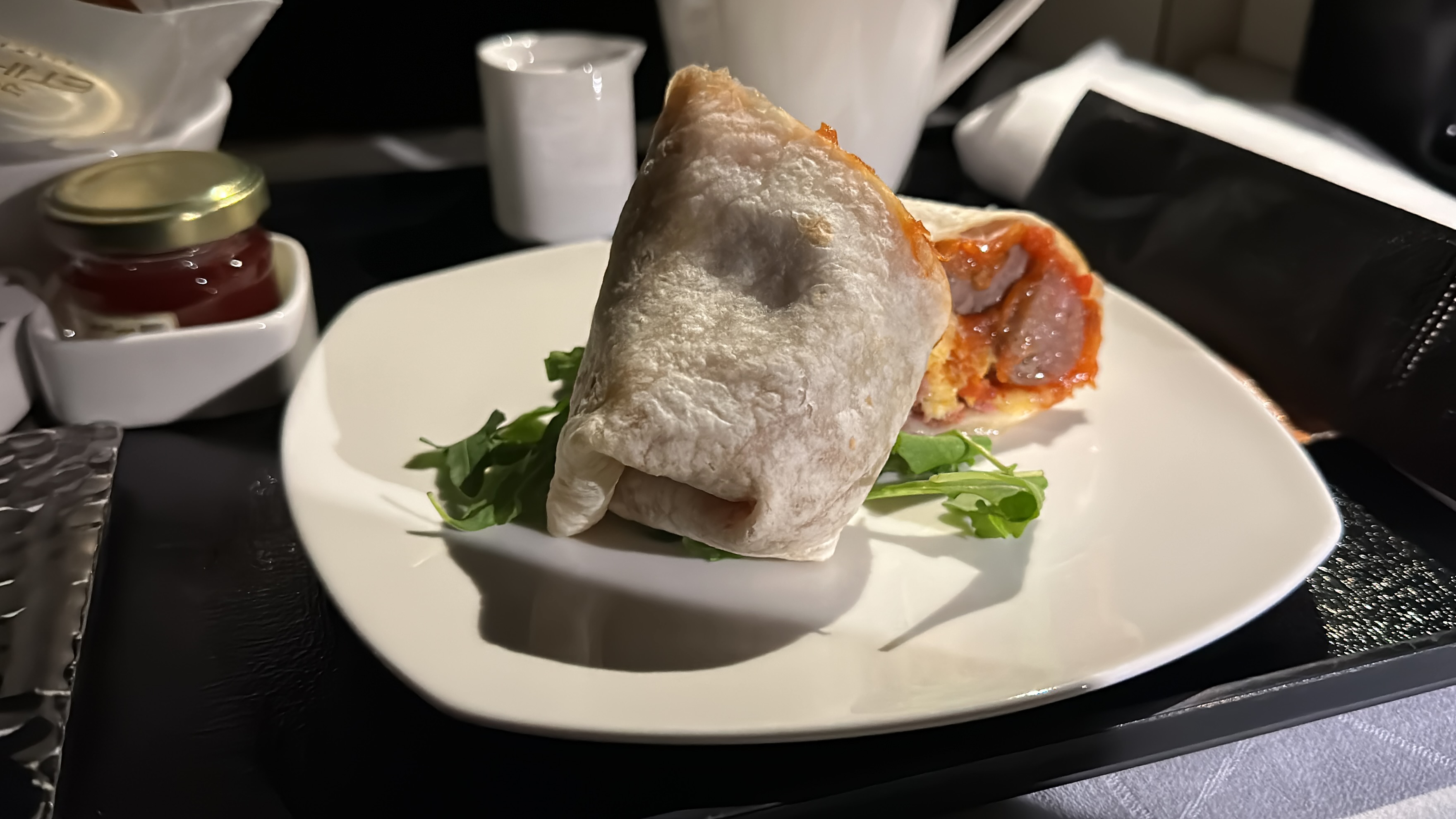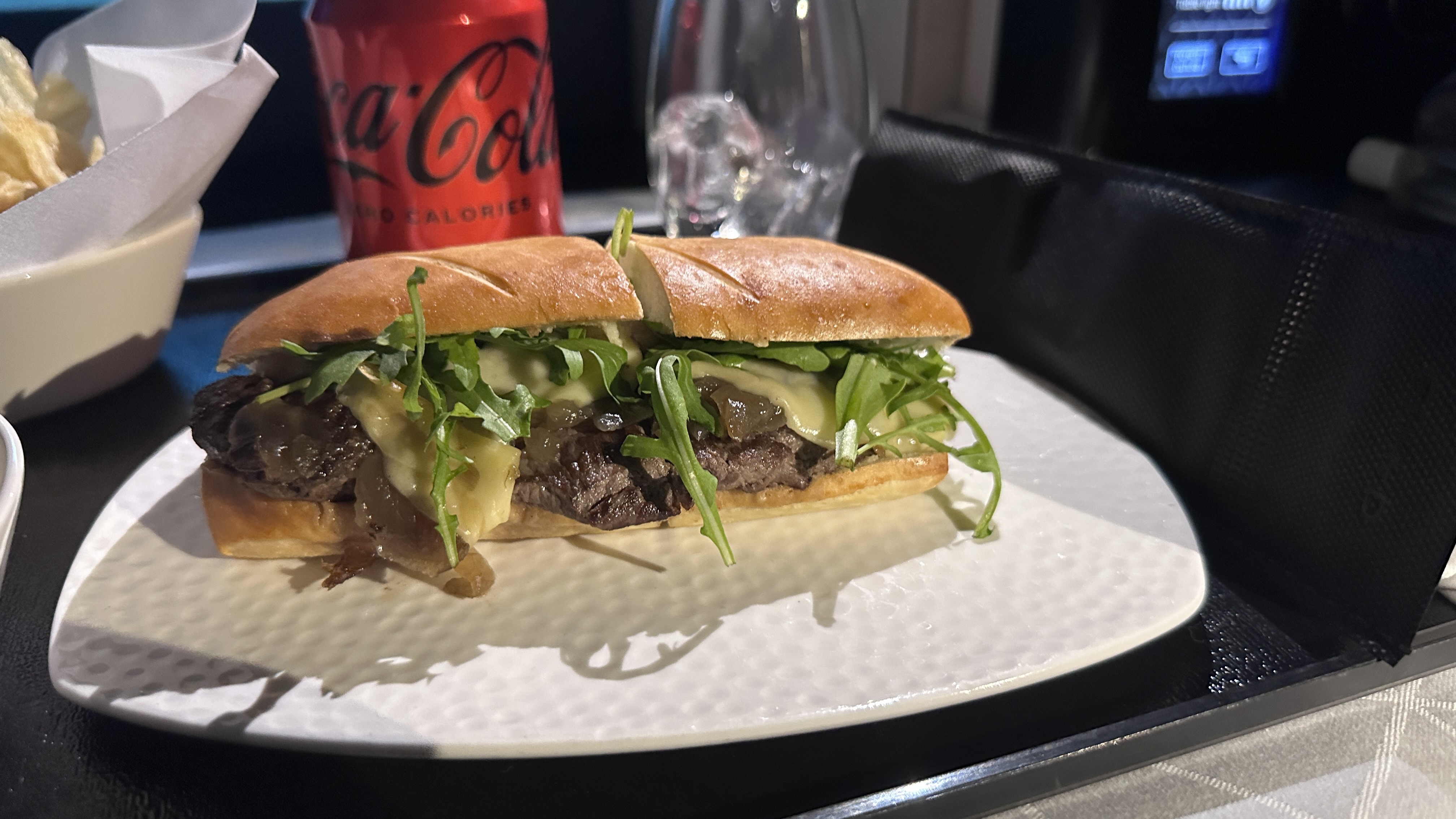 The Food – The catering on this Etihad flight out of Abu Dhabi was truly outstanding. The meals we had, despite being lighter options, were deliciously prepared and beautifully presented. We particularly enjoyed the Etihad Steak Sandwich and Pastrami wrap. I had the ice cream for dessert, which was a delightful way to end the meal. Overall, the food on this flight was exceptional and a highlight of our experience with Etihad.