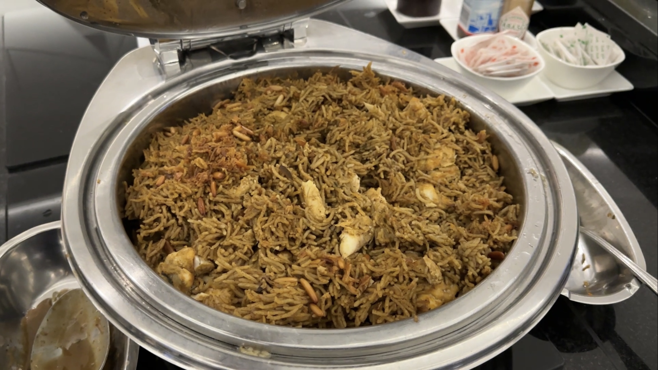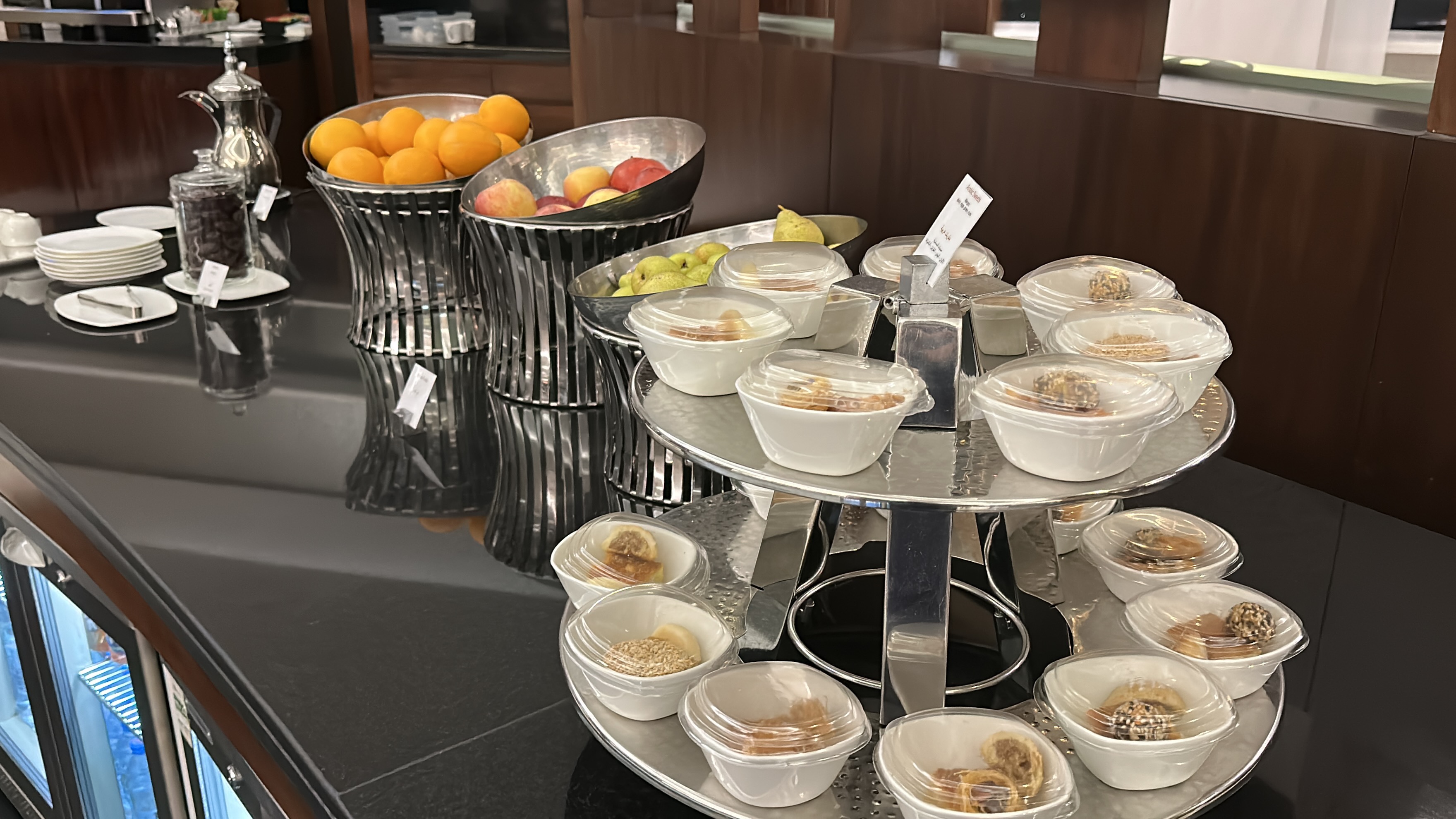 The Etihad Business Class Lounge in Abu Dhabi – The Etihad Business Lounge in Abu Dhabi offers a spacious and relaxed environment for business class passengers to wait for their flights. While the lounge can get crowded during peak hours, we found plenty of available seating options during our visit. The buffet selection is substantial, with both hot and cold food and drink options, though a la carte dining is not available. The lounge also includes a well-stocked staffed bar, a designated smoking room, and shower facilities for freshening up before the flight. Overall, it’s a comfortable and convenient place to spend some time before your flight.