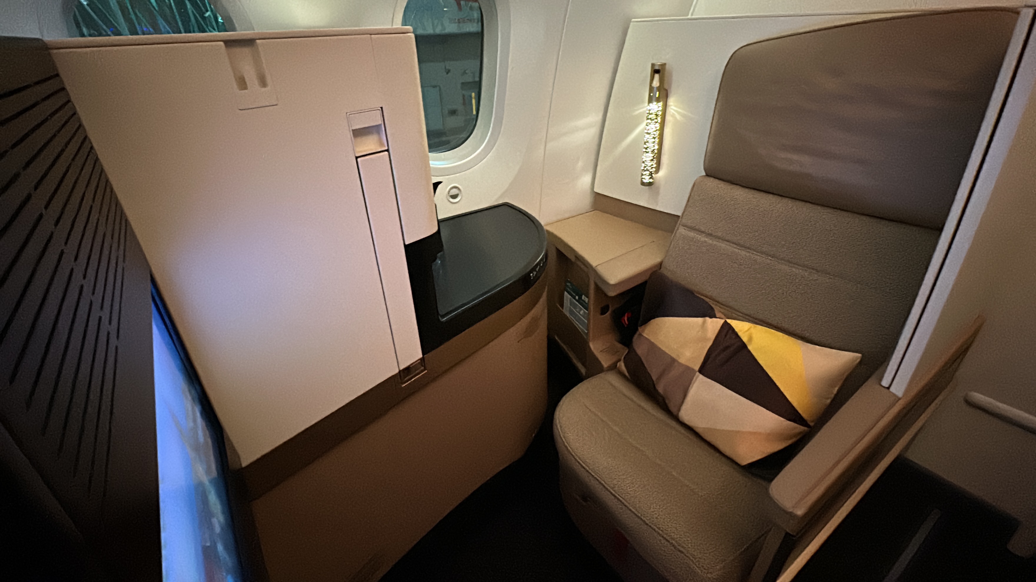 Etihad’s Business Studio seats on their 787 Dreamliner aircraft provide a comfortable and spacious flight experience. I personally find these seats to be more preferable than the newer super diamond seats with doors, as they offer ample space for sitting, lounging, and sleeping. The seats were very comfortable, allowing me to settle in quickly and relax. I was even able to take a short nap after my meal. Overall, the Business Studio seats provided a relaxing journey that left me feeling refreshed upon arrival.