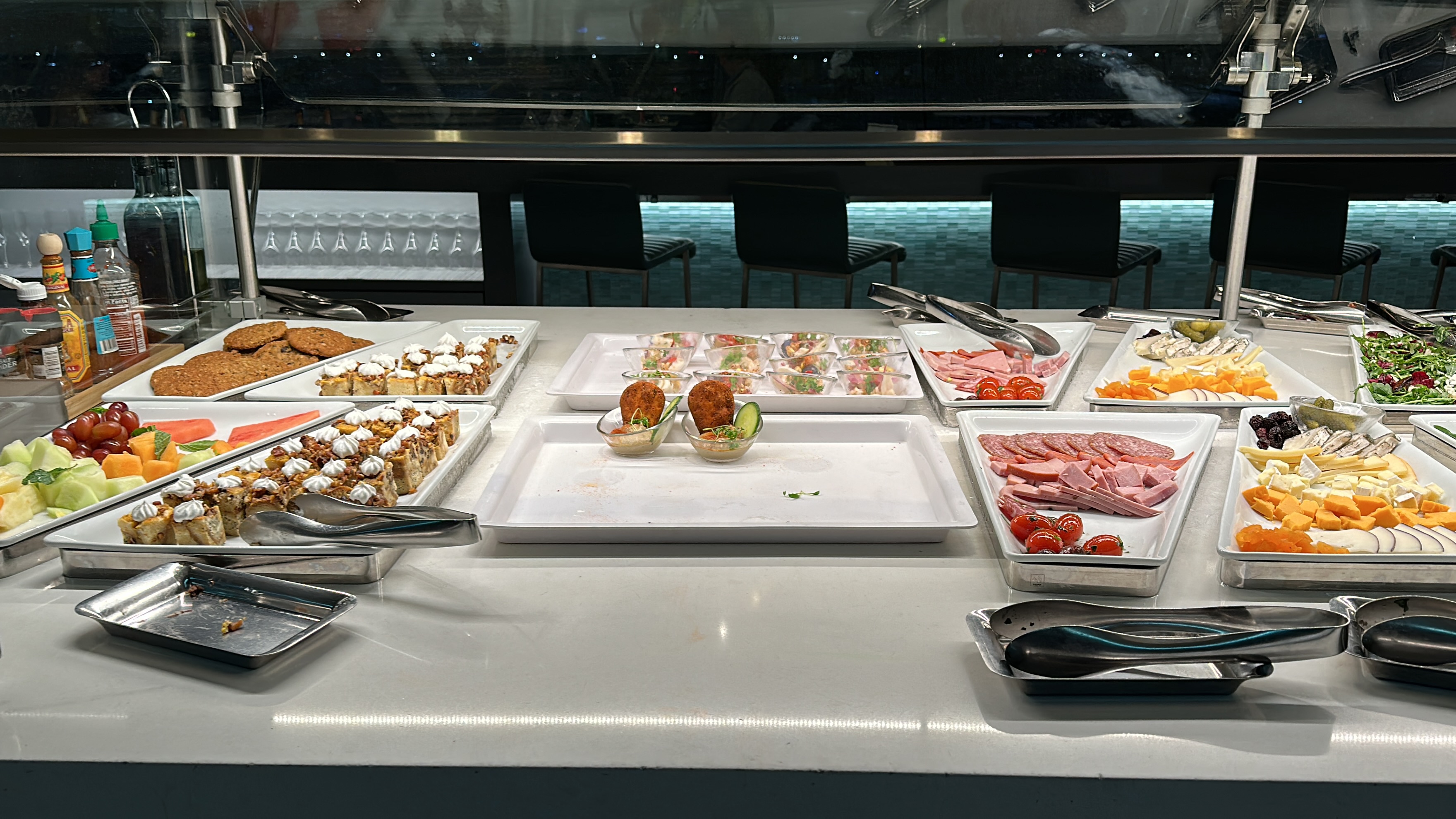 The Flagship Lounge at LAX – We enjoyed a pleasant visit to the AA Flagship Lounge at LAX, which is spacious and offered ample seating through out. The lounge offers an extensive buffet spread and plenty of food and beverage options. The lounge’s clean and well-maintained showers were also an added bonus.