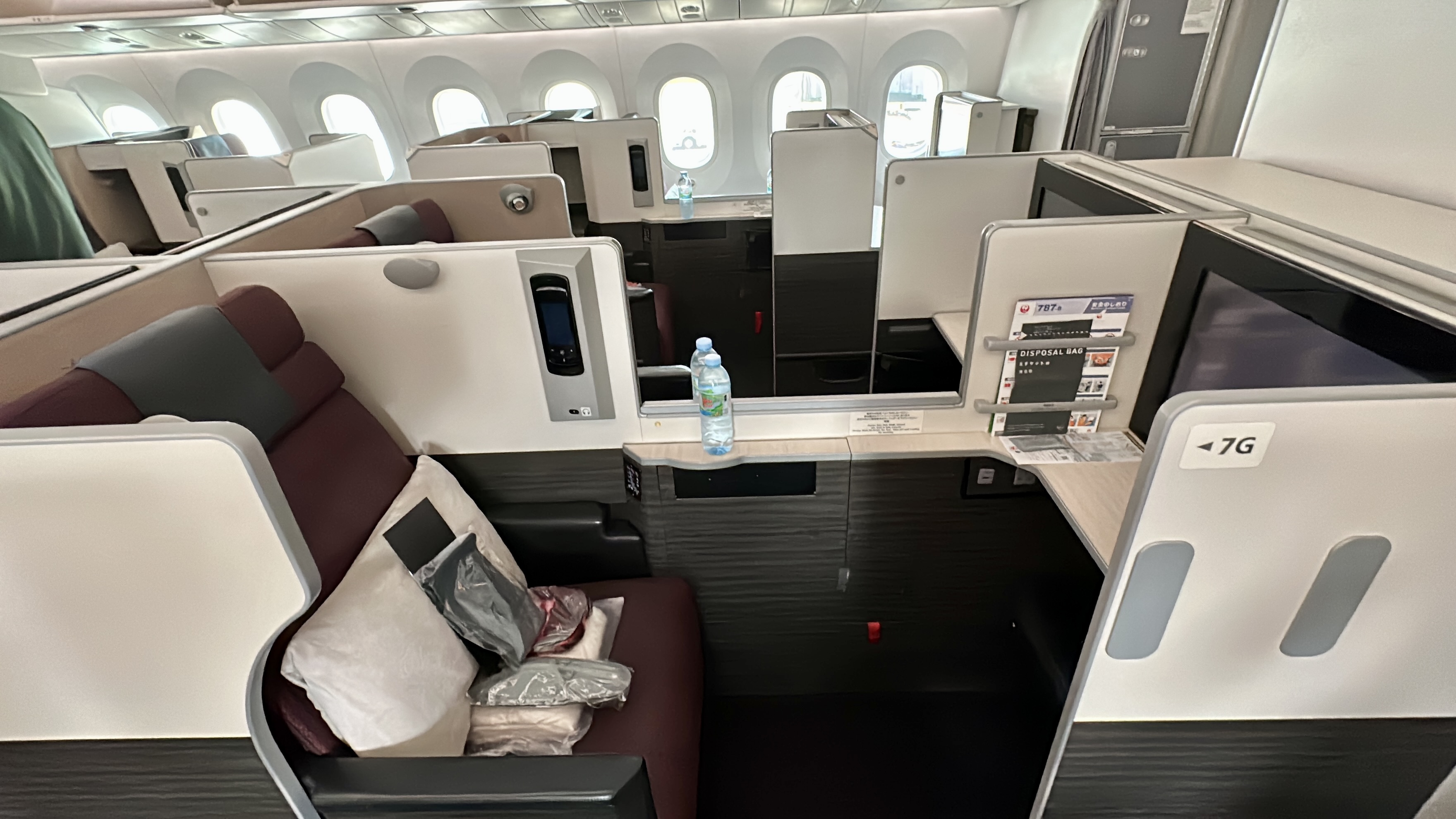 Japan Airlines provides an impressive business class experience on the Bangkok to Tokyo route, with the Boeing 787-8 featuring the Sky Suite (Apex Suites) business class seats. With a 2-2-2 seating configuration and fully flat bed, these seats provide excellent comfort and direct aisle access.