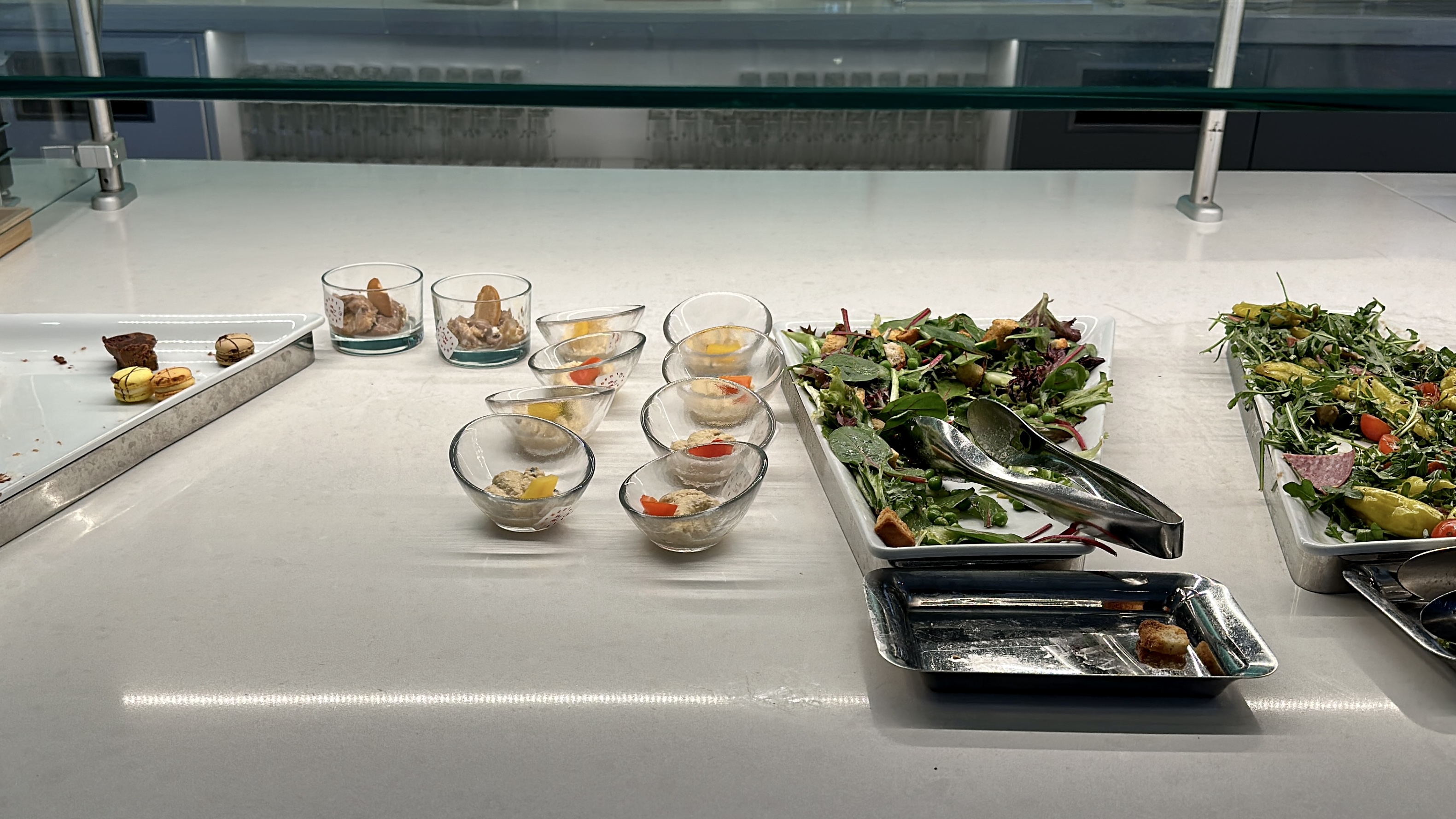The Flagship Lounge at DFW – The Flagship Lounge at DFW was a great experience for us. Located in Terminal D, the lounge was spacious and provided comfortable seating throughout. The lounge offered an extensive buffet spread and an impressive selection of food and beverage options. We also appreciated the added bonus of shower suites, which allowed us to freshen up before our flight.