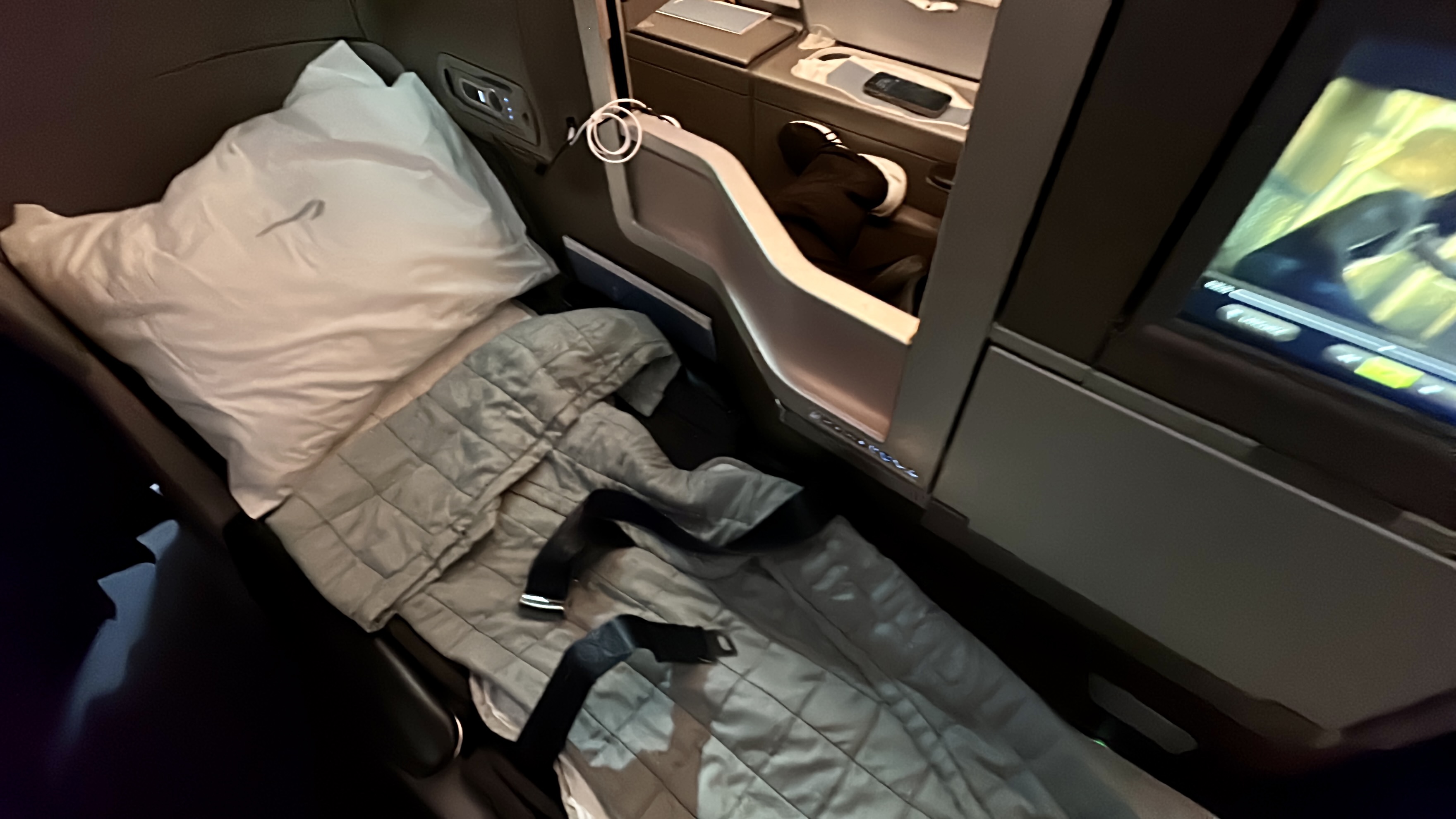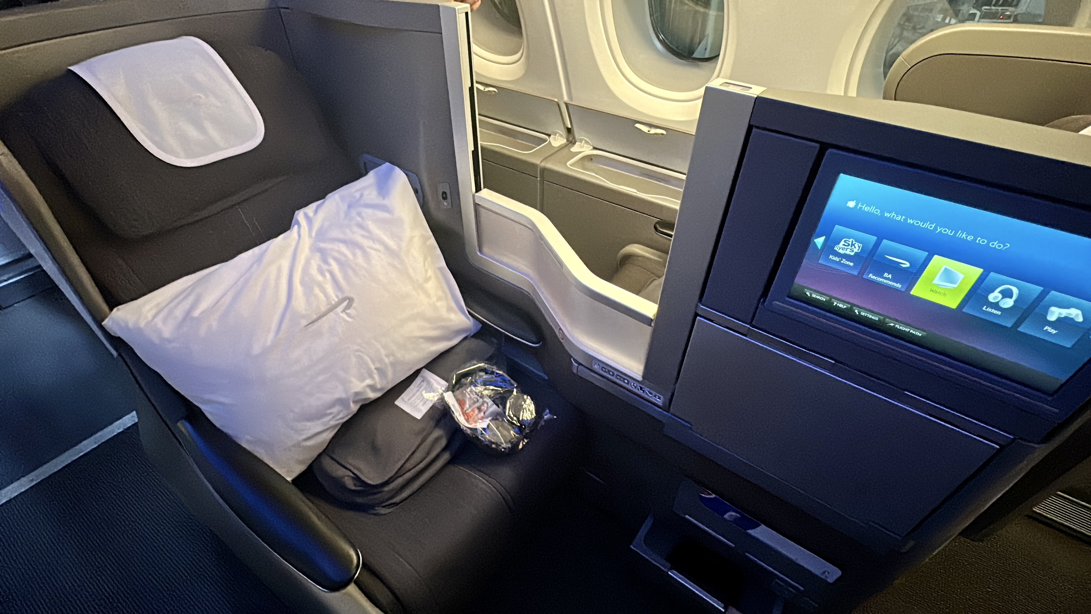 The Seats – Unfortunately, British Airways’ Club World Product, which was introduced in 2006, has not aged well. While the seat can be converted into a full flat bed and provides ample legroom, its narrow width can make it feel cramped when trying to relax or enjoy a meal. Additionally, most window and center seats do not offer direct aisle access, requiring passengers to step over their neighbor’s ottoman to get to the aisle. There is also a lack of easily accessible storage space, which can be frustrating during a long-haul flight. Overall, the Club World seats are in need of an upgrade, as they fall short of current business class standards.