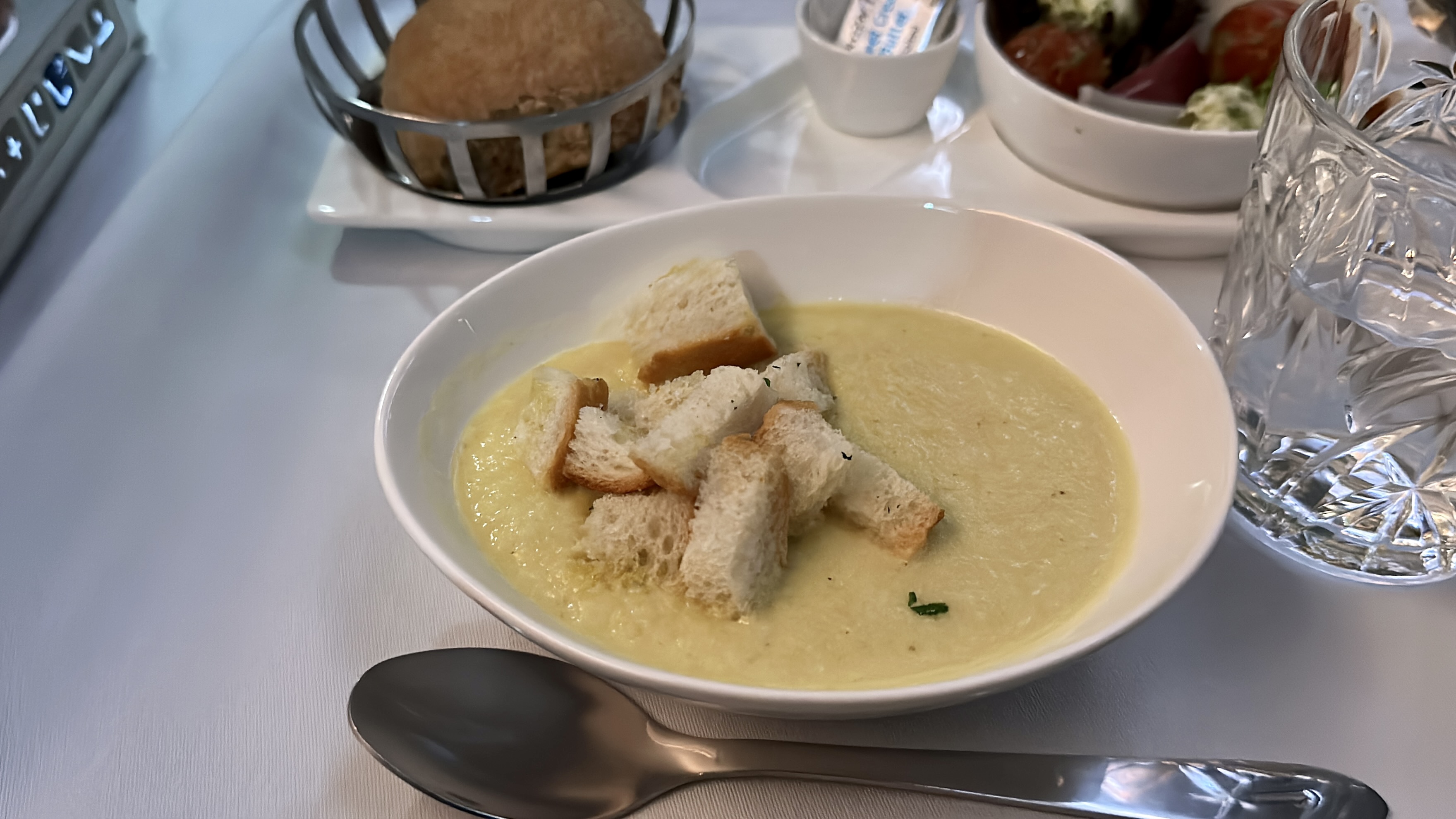 The Food – The catering provided by DO&CO on this flight was truly exceptional. The food actually surpassed our expectations on this flight. The dishes that we ordered tasted fresh, delicious and nicely presented. The starter dishes and curried cream of cauliflower soup were particularly noteworthy, as it was delectable. During the dinner service, the grilled chicken breast was perfectly cooked, moist, and flavorful. Indulging our sweet tooth, the Chocolate coffee Fondant dessert was a decadent treat. The pre-arrival Full English Breakfast provided a hearty start to the day, while the Avocado and Tomato omelet was a great choice for my companion. Although there was no mid-flight meal service, the crew set up a snack bar near the galley for those seeking a bite. Overall, the catering on this flight not only exceeded our expectations but also made the journey significantly more enjoyable.