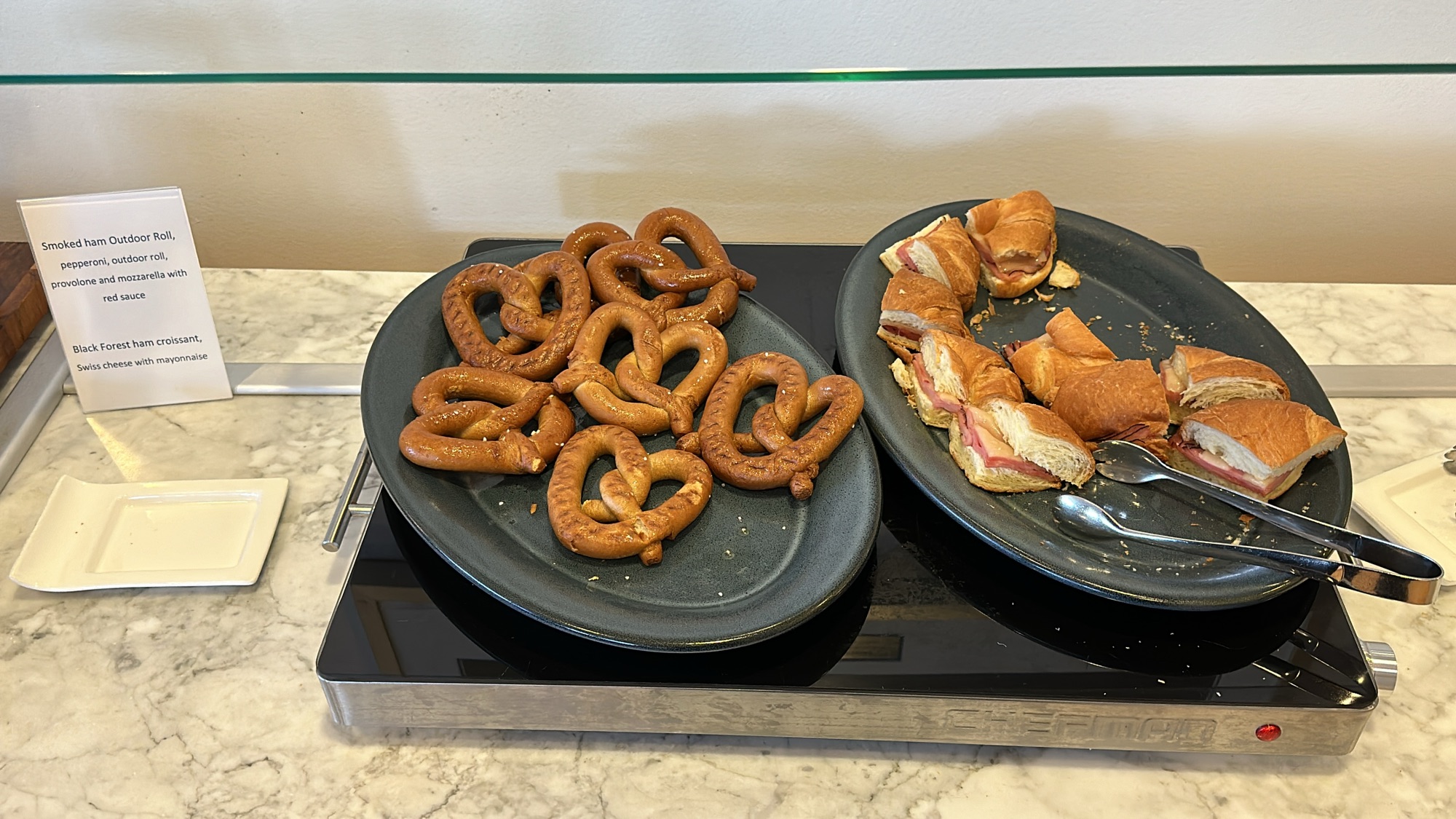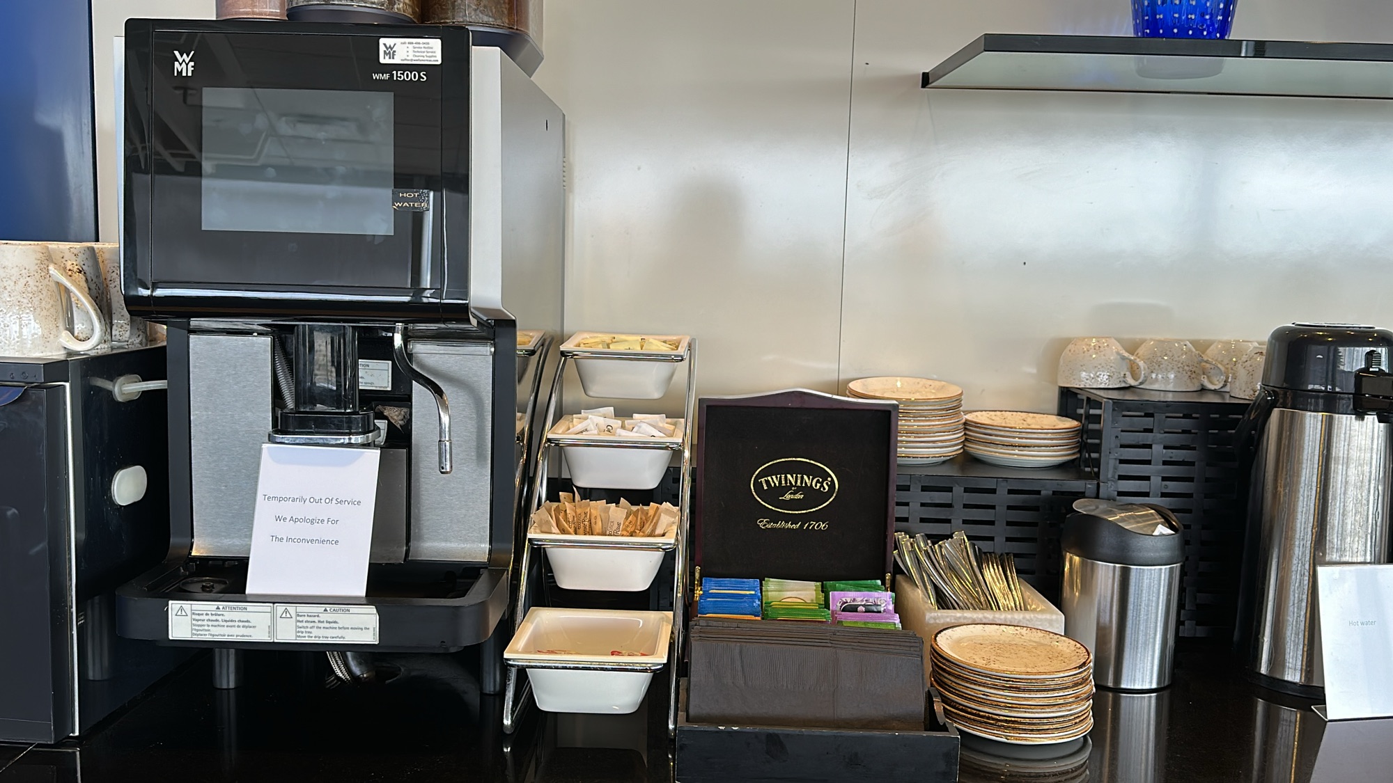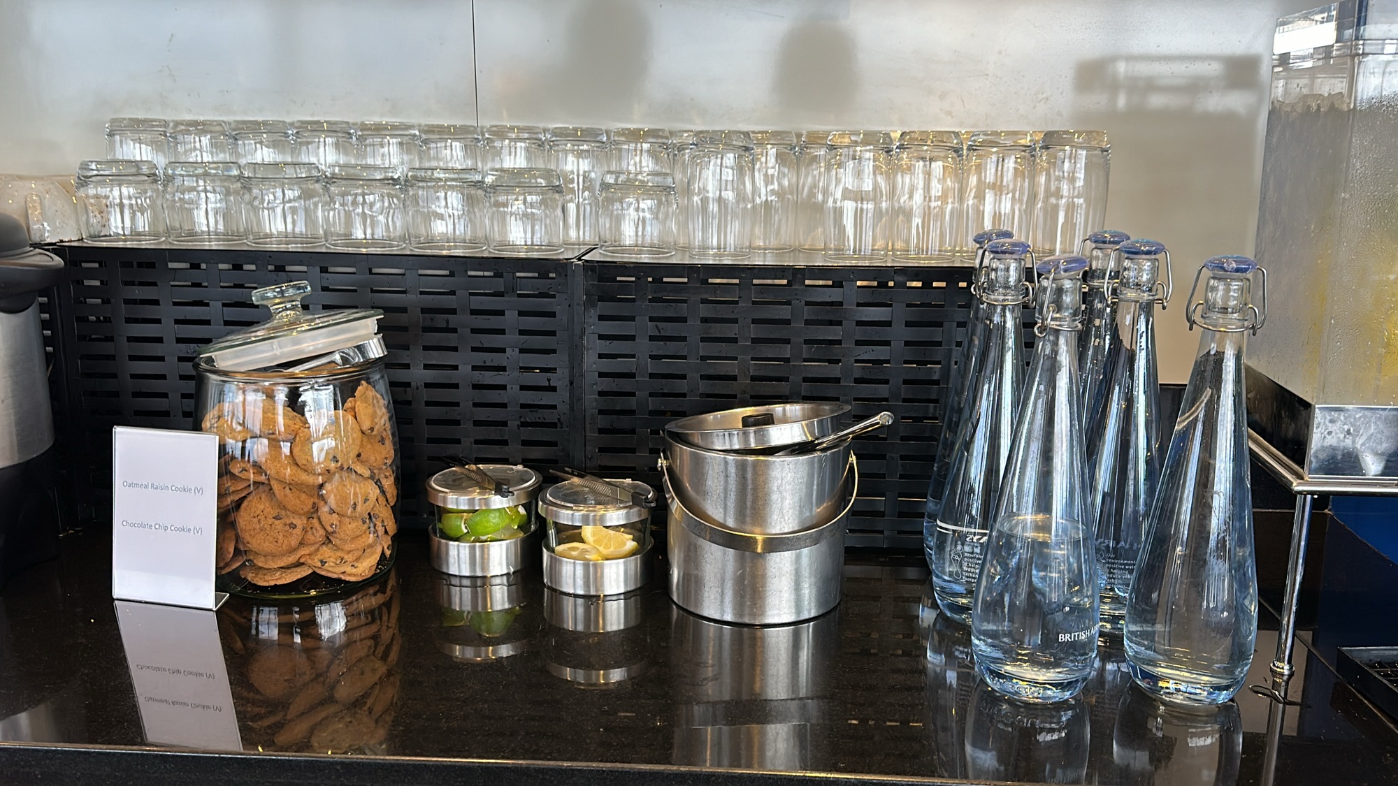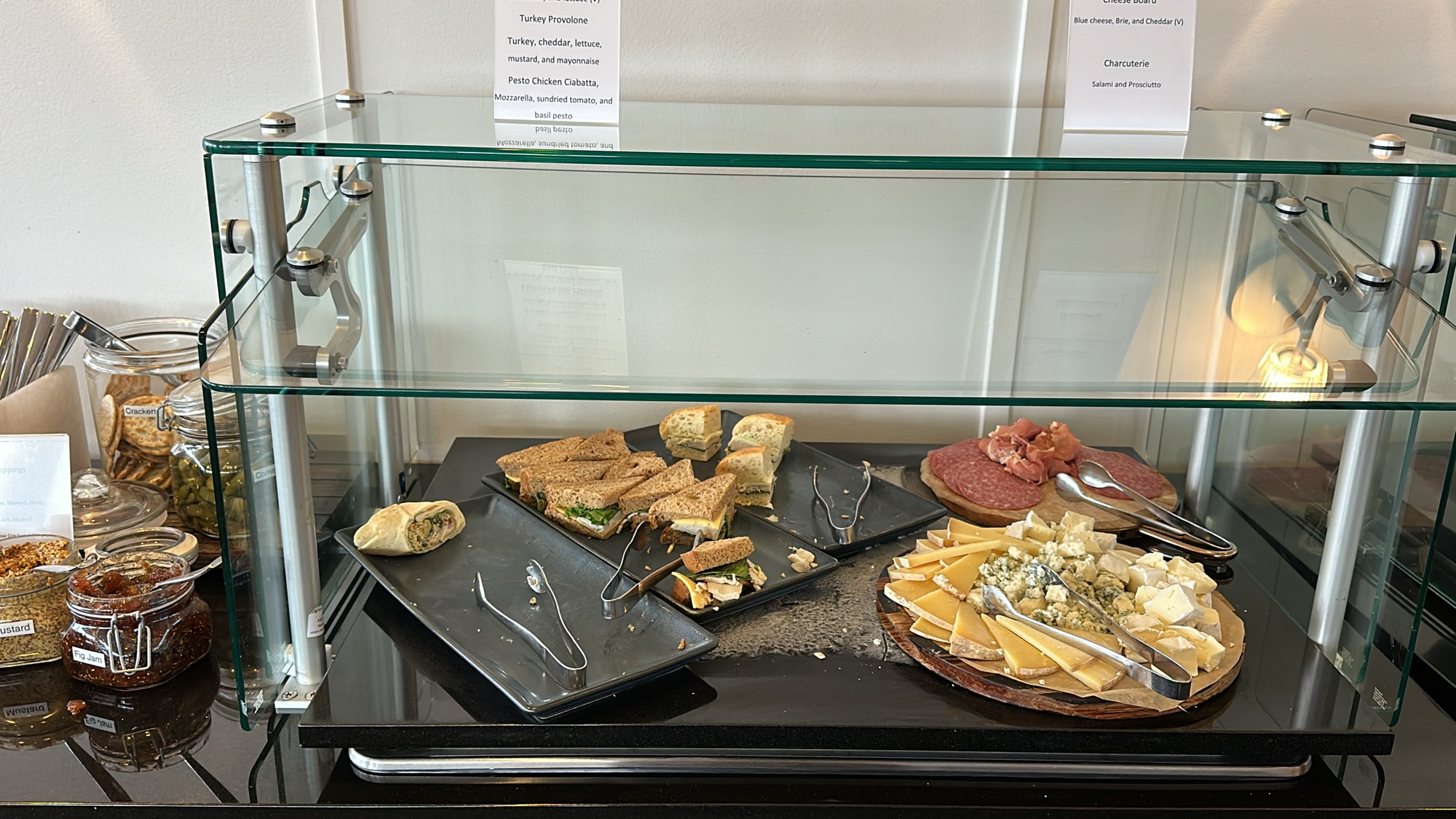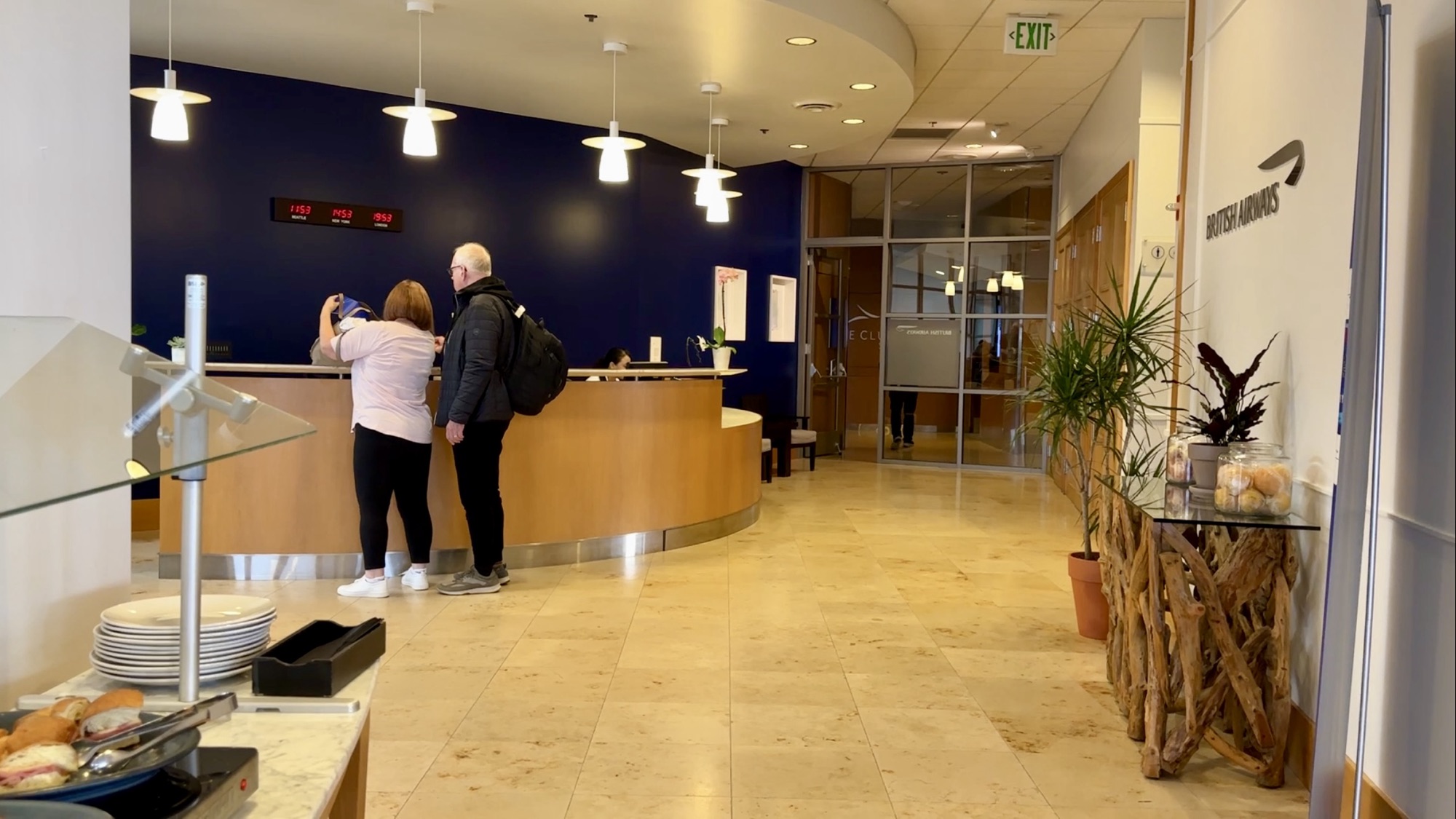 The British Airways Terraces Lounge at SEA: Accessible with our business class ticket, the British Airways Terraces Lounge offered a mixed experience. Although the lounge presented a somewhat outdated ambiance and limited food and beverage options, the attentive service from the staff was noteworthy, adding a touch of warmth to the otherwise drab lounge experience.
