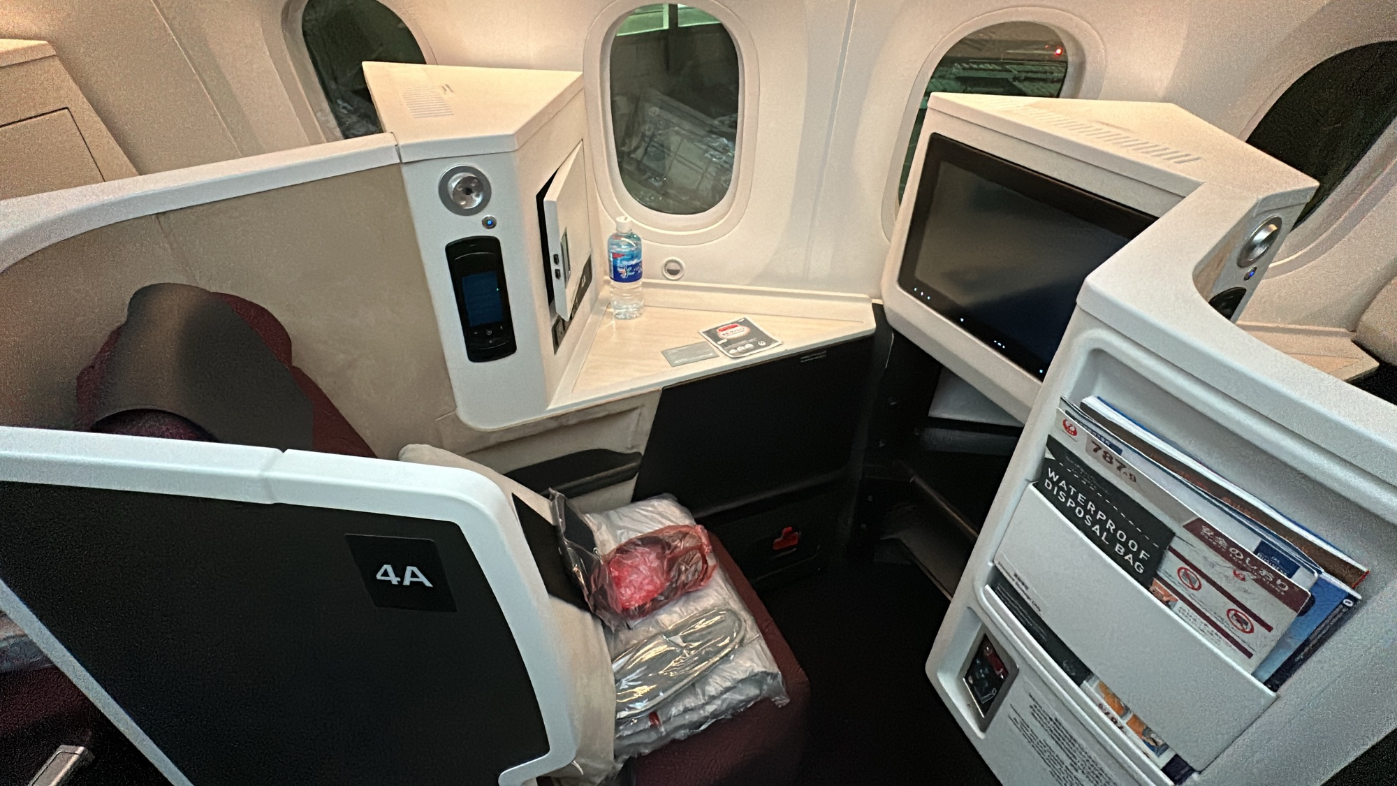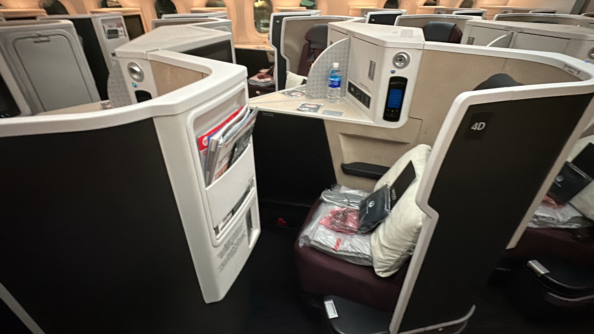 The Business Class Seats: Despite my initial excitement for the Sky Suite III, the reality fell short. While the reverse herringbone configuration offered privacy, the seat area felt cramped, especially in terms of shoulder room. The lack of padding made the seat uncomfortably hard, though the airweave mattress pad offered some respite.