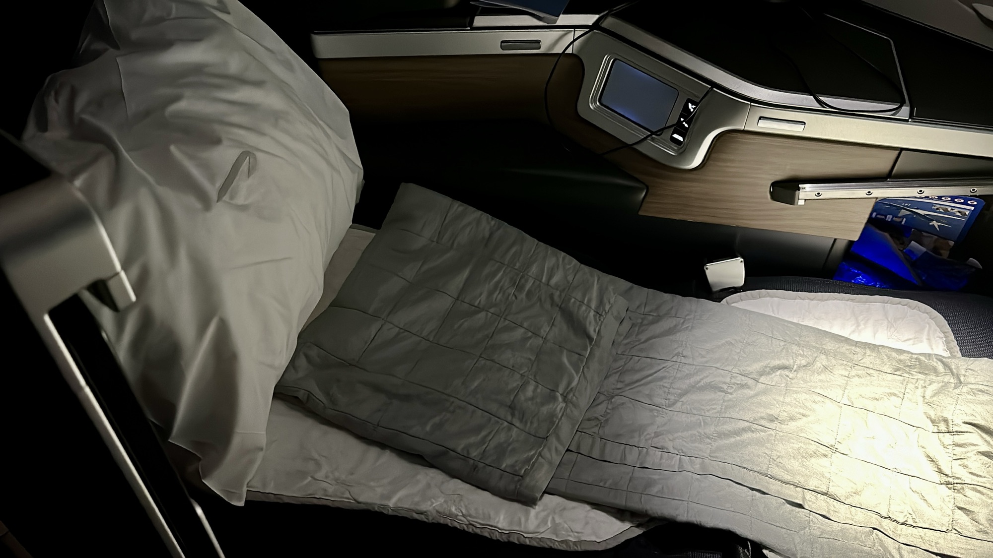 Having already flown on their Boeing 777-300ER, we were curious to see how the business class product on the A350 would compare. The verdict? Both planes offer a similar level of comfort, with the seats on the A350 providing a sense of privacy and spaciousness that’s on par with the 777. That said, the Airbus A350 does have a few advantages: the overhead bins are larger, and the cabin pressure in-flight is lower, which makes a difference especially for longer flights.