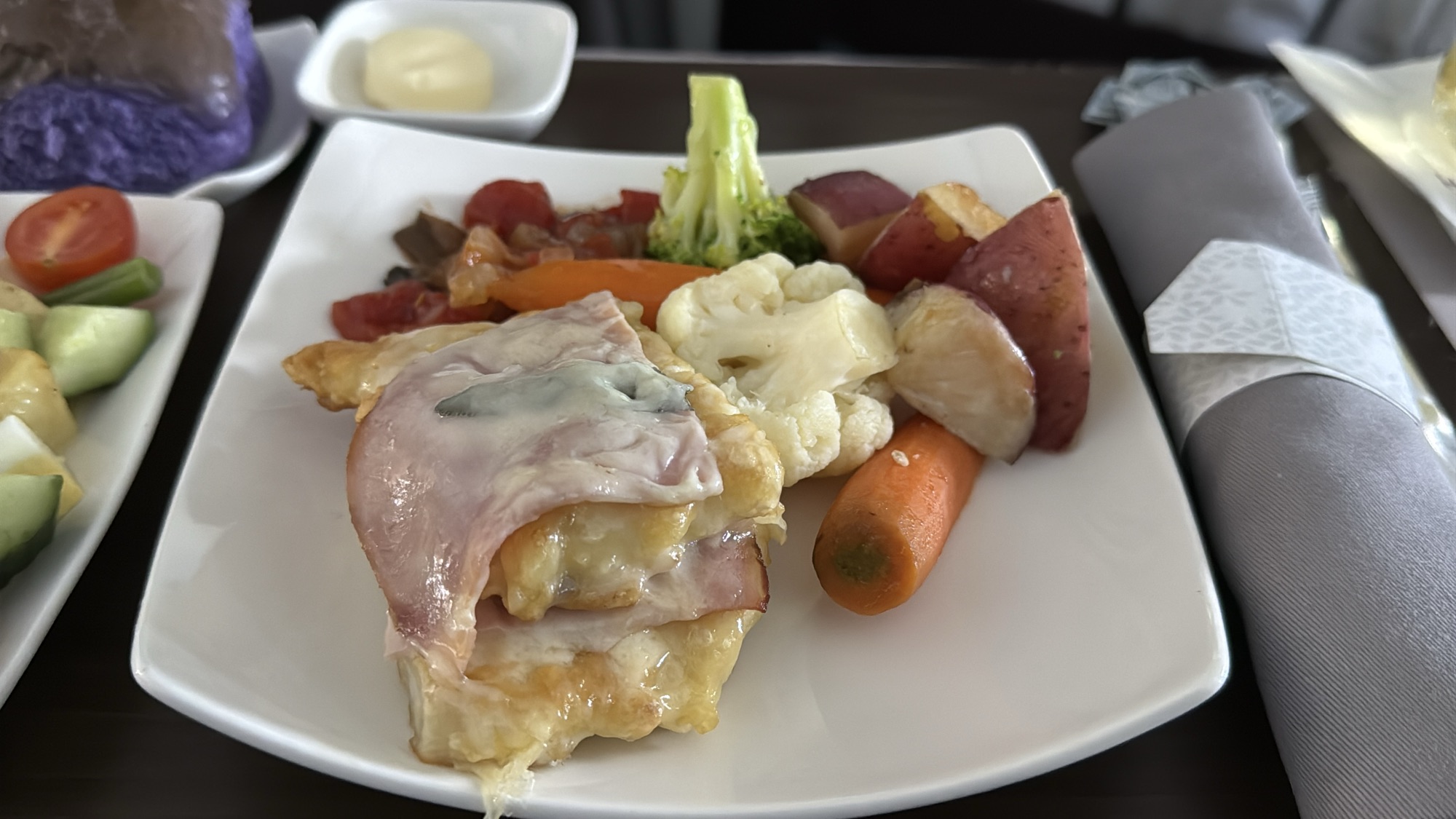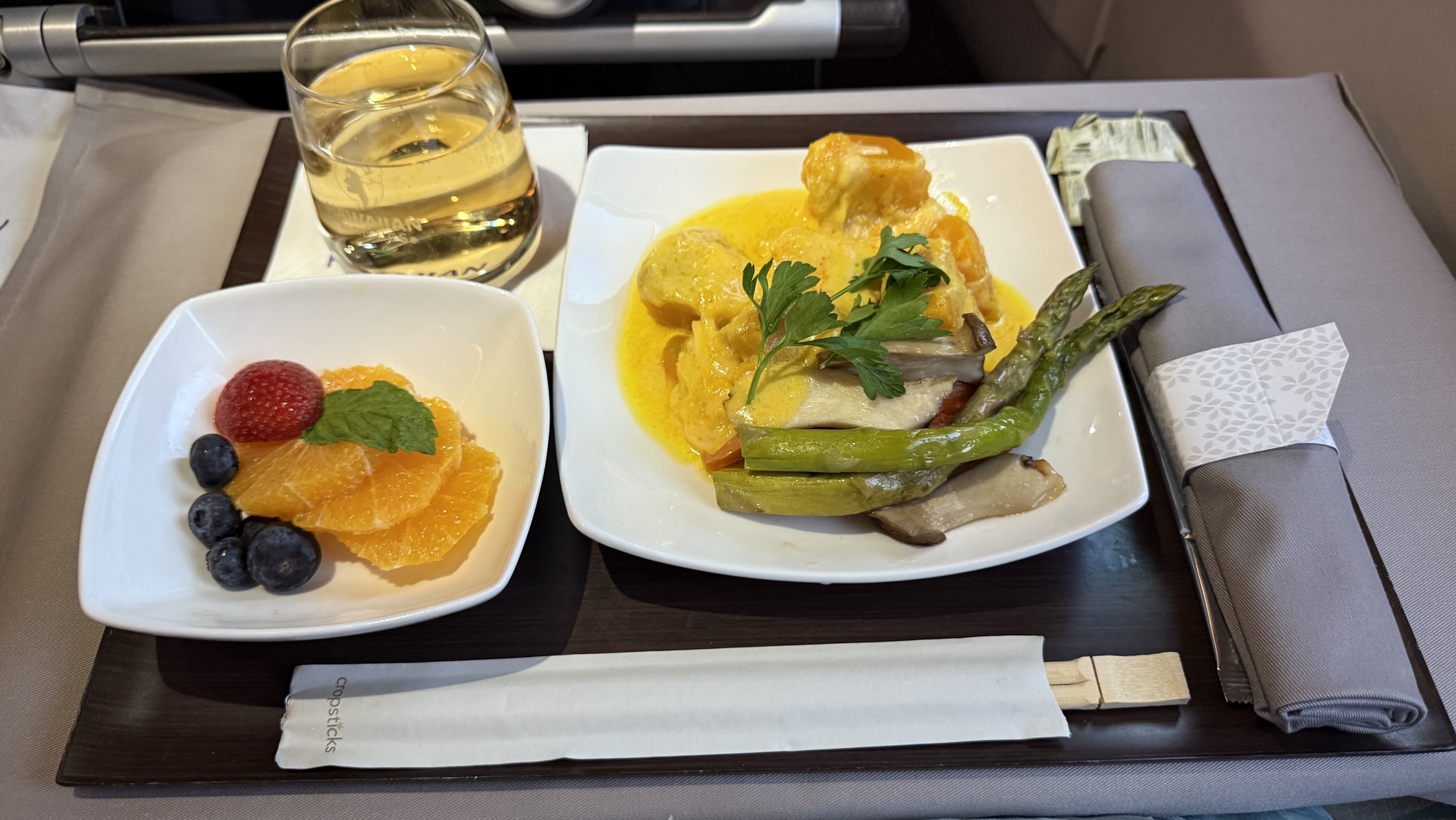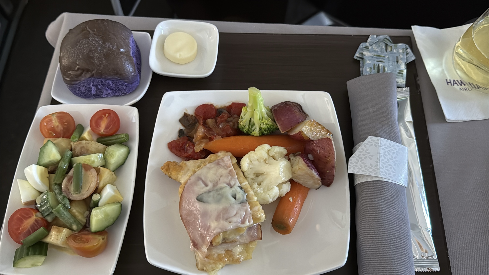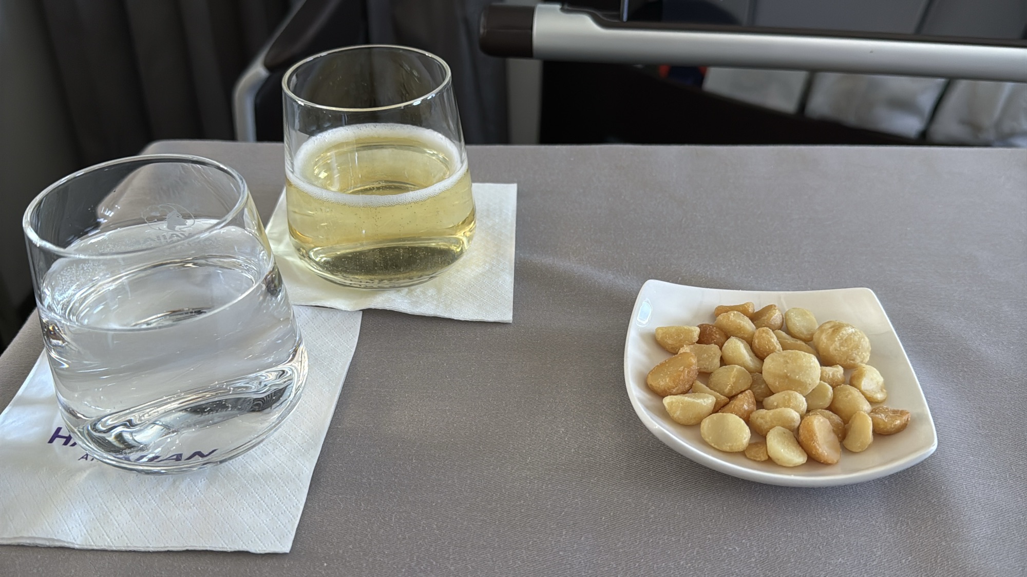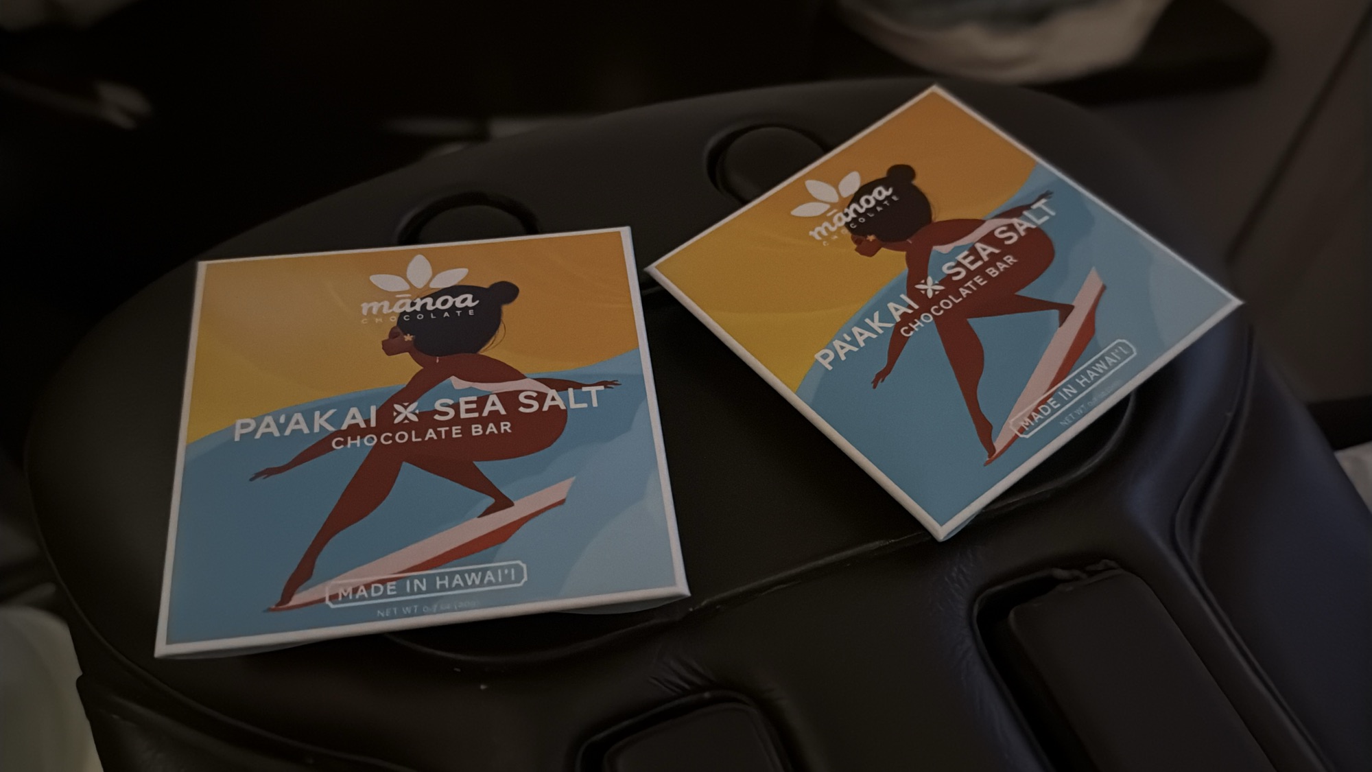 Throughout the meal service, the crew was both attentive and charming, graciously offering multiple drink refills and frequently checking in to make sure we were comfortable. Right before landing, the flight attendants thanked us for flying with Hawaiian and gave us chocolates as parting gifts. We really felt well cared for the entire flight.