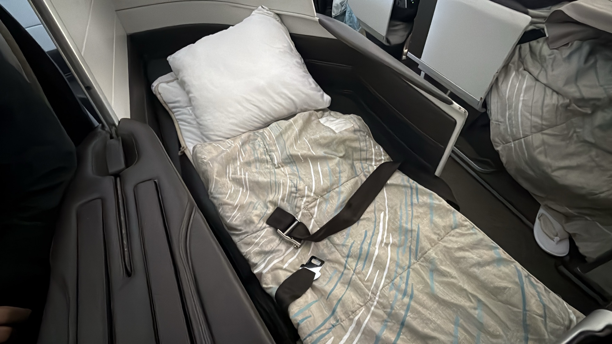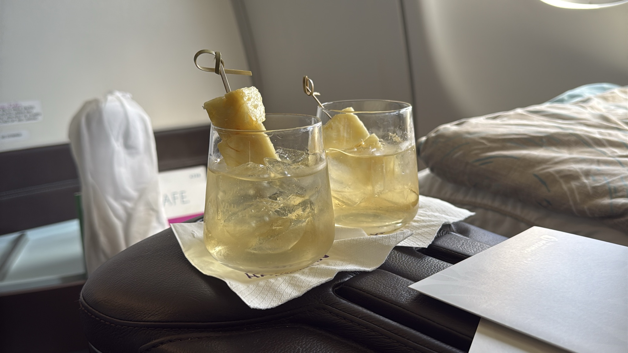 The Warm and Friendly Service – The business class crew on Hawaiian Airlines truly stood out with their warm, genuine hospitality. From the moment we boarded, they struck a perfect balance—friendly and casual without being overbearing. As we settled in, they offered us a pre-departure drink, and of course, we went with Hawaiian’s Signature Mai Tai to kick off the journey in island style. While still on the ground, they proactively added mattress pads to our seats, which made a noticeable difference in comfort for the long flight.