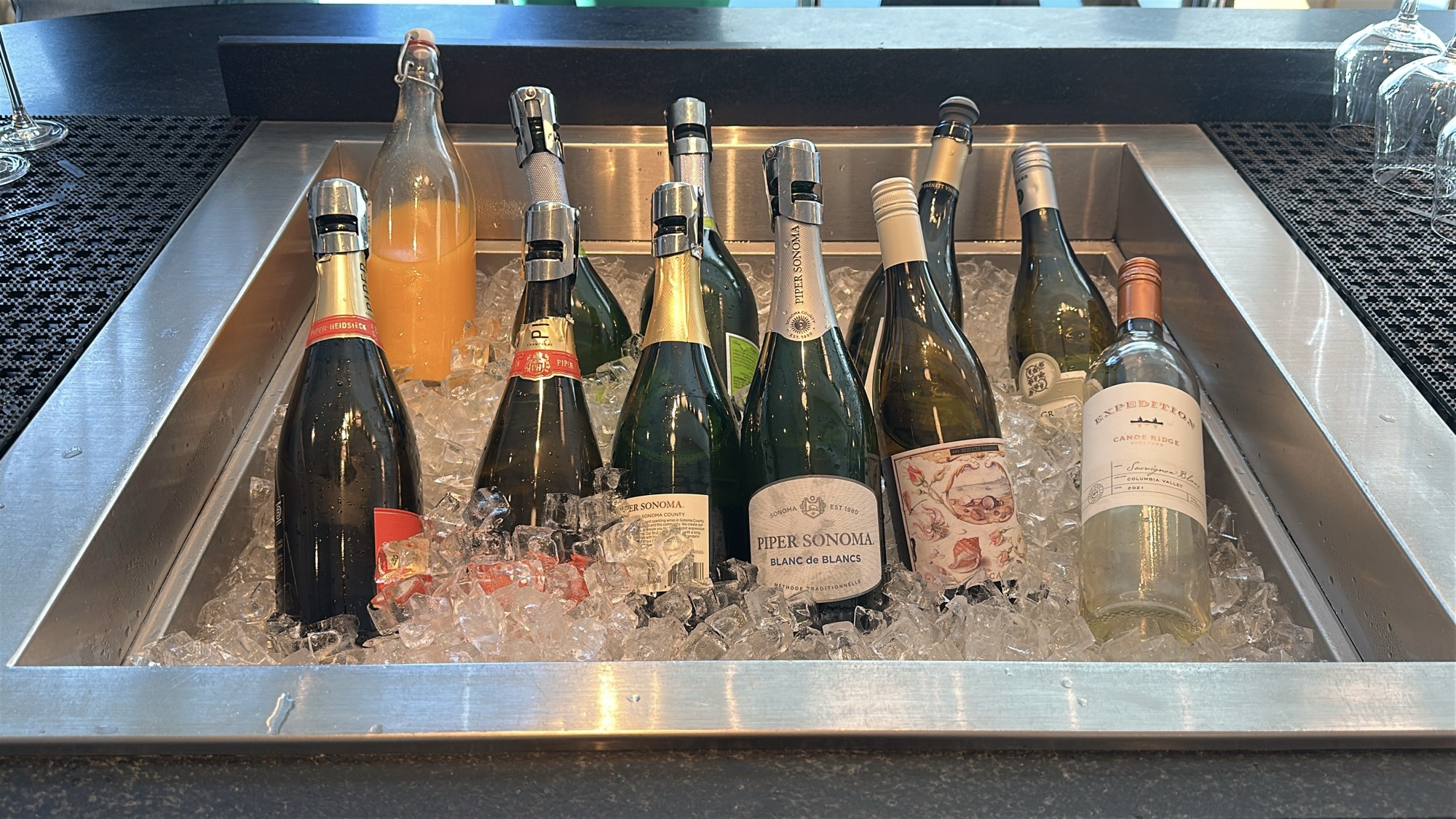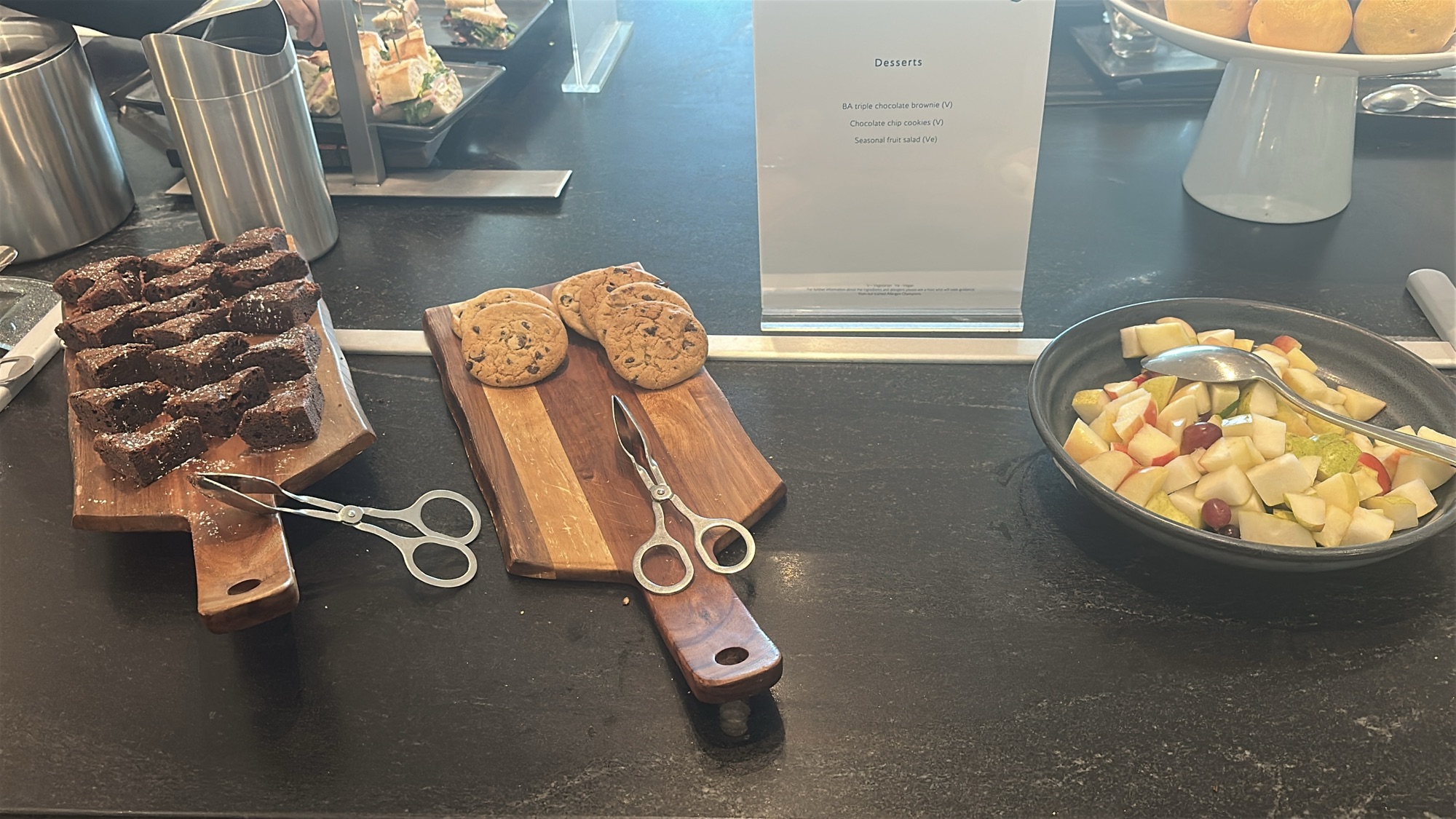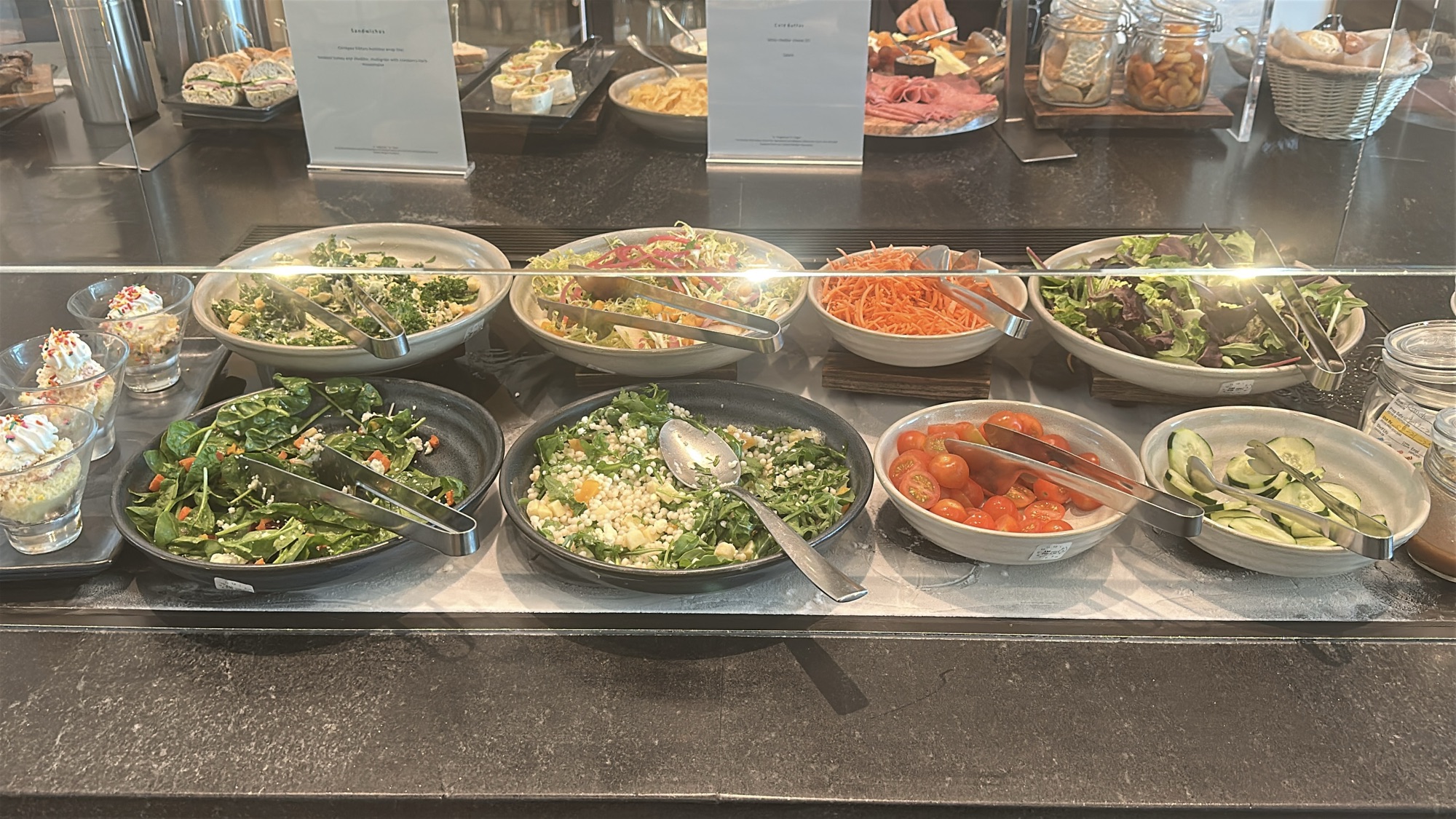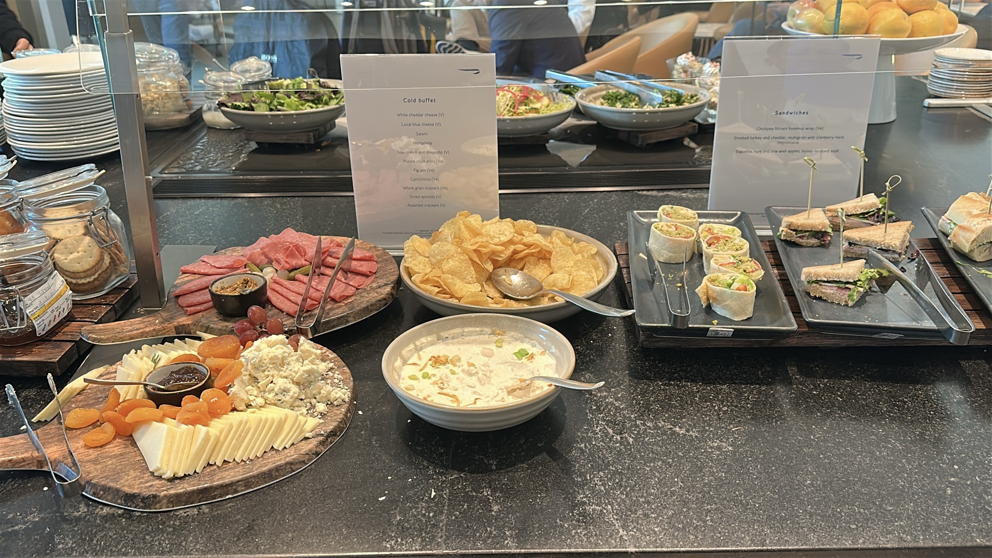 The British Airways Lounge at SFO – This lounge stands out as one of the better options at SFO, offering a well-rounded selection of amenities. The self-serve buffet includes a solid variety of hot and cold dishes, snacks, and even an espresso machine for coffee lovers. Additionally, guests can order select items from an à la carte menu via QR code, adding a nice touch to the dining experience. The beverage selection is impressive, with a range of wines, spirits, and other hot and cold options. Unfortunately, the lounge’s biggest drawback is its size—it can feel quite crowded during peak hours, making it challenging to secure a comfortable seat.