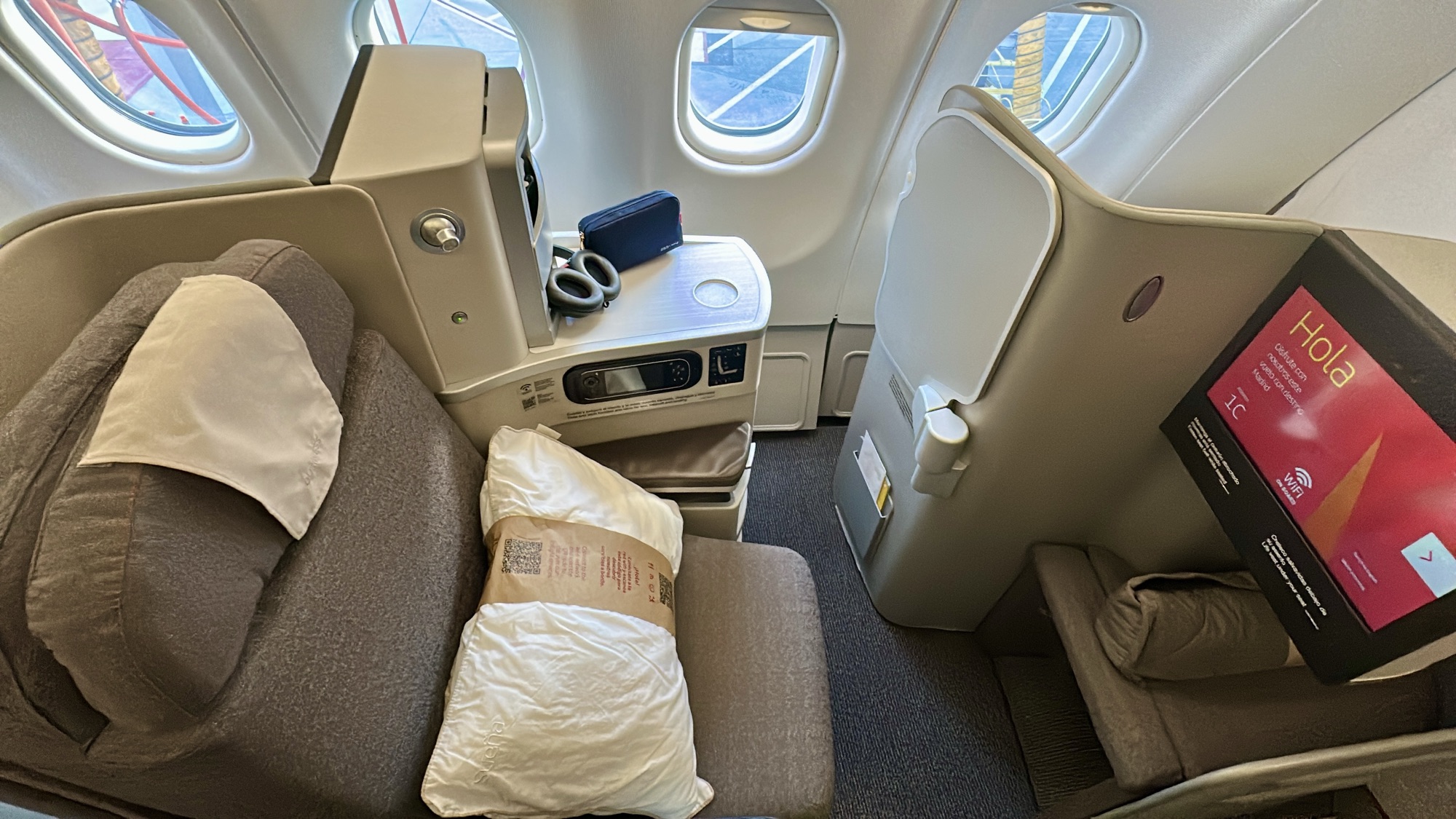The Seats – While these aren’t Iberia’s newest business class seats with doors, I found the Solstys seats on this A330 to be very comfortable for sitting, lounging, and sleeping. They offer ample storage space, and the included ottoman provides a nice spot to rest your feet while reclining. I managed to get about six hours of sleep on this flight, which was a welcome surprise.