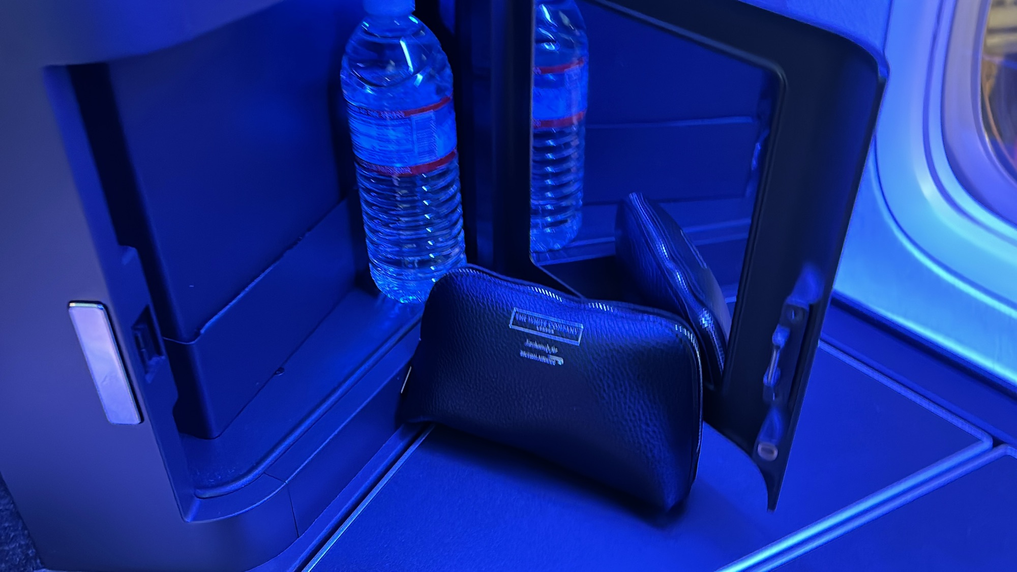 The Business Class Amenities – While British Airways doesn’t provide pajamas or slippers in business class, they compensate with a curated selection of thoughtful amenities. Awaiting us at our seats was a sleek leather pouch from The White Company London, containing essentials like noise-canceling headphones and bottled water.