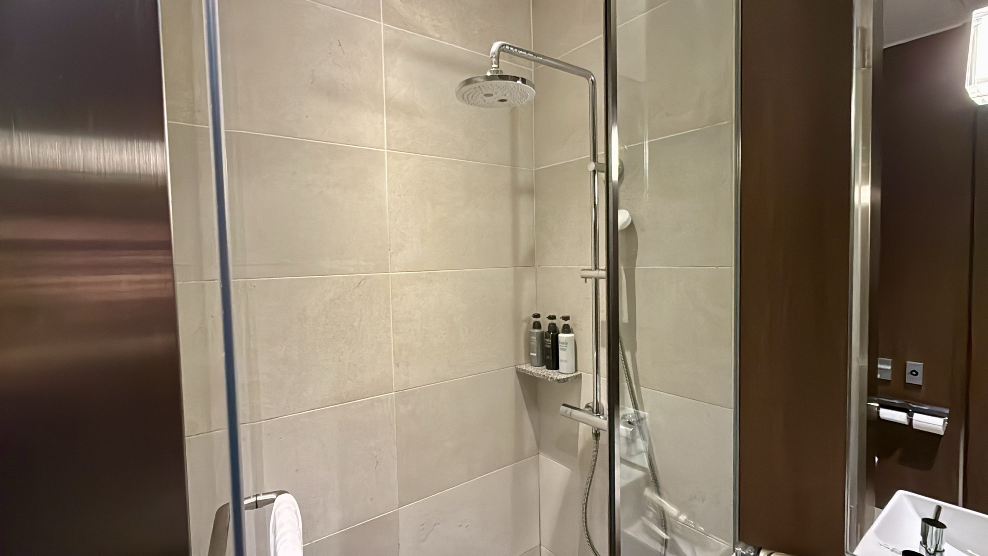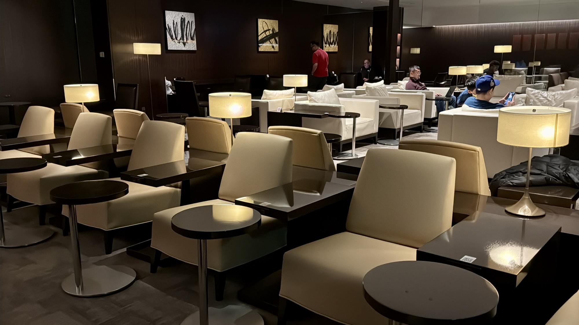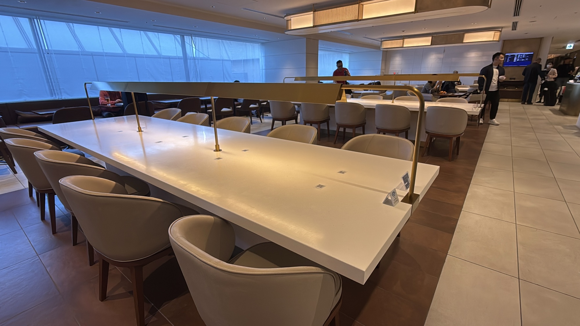 Downstairs, the ambiance shifts to a more traditional lounge experience. With dimmed lighting and plush seating, it’s perfect for unwinding. Amenities include both self-serve and staffed bars, a shoe shine area, and a smoking room. For those in need of a freshen-up, the shower suites—reservable via the JAL Lounge App—offer a fresh touch to the overall experience.