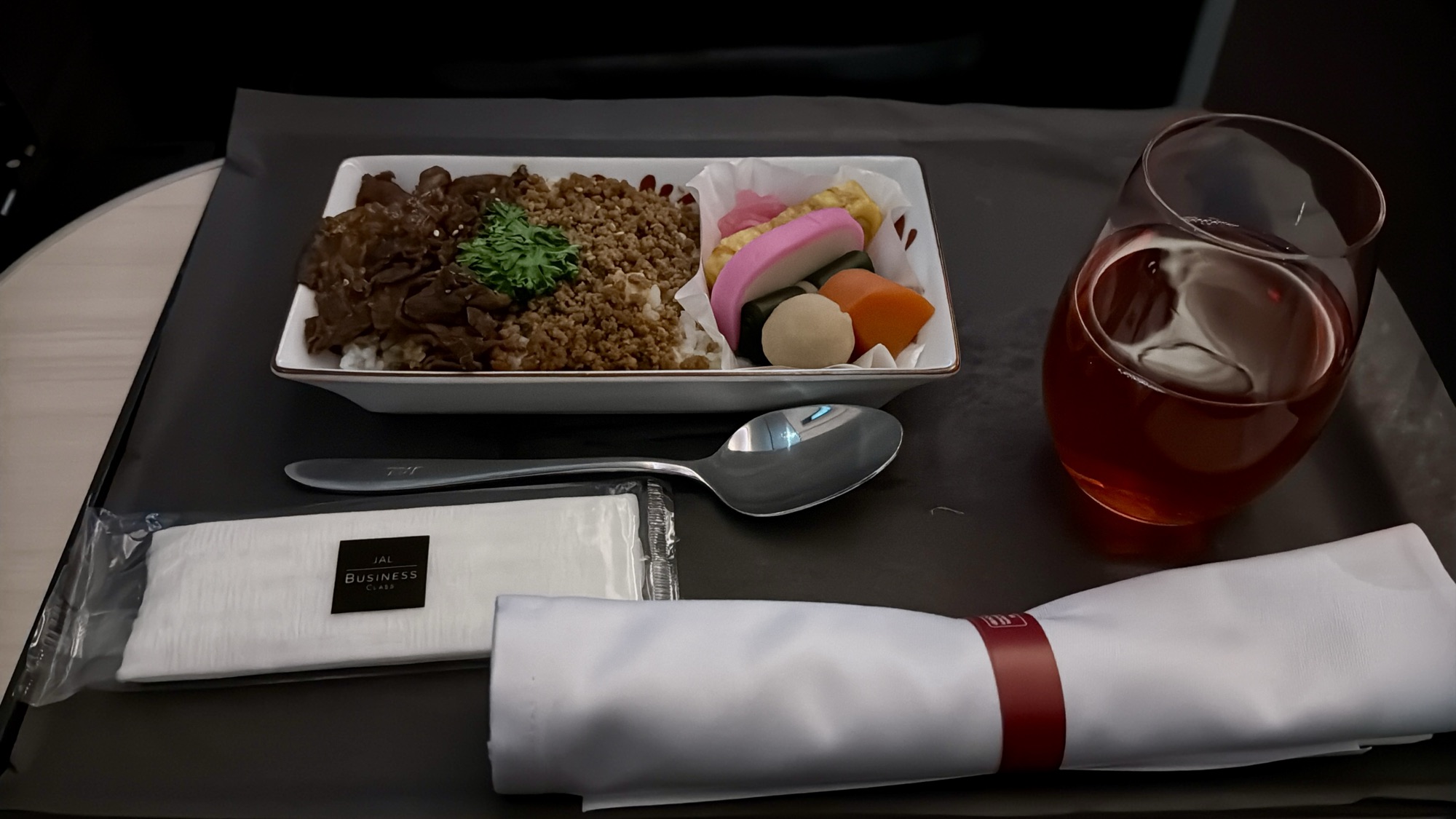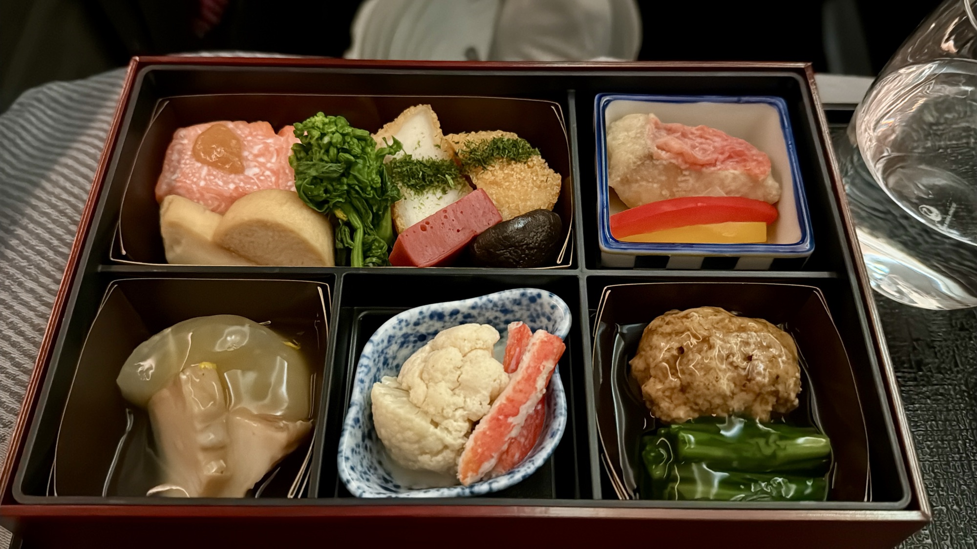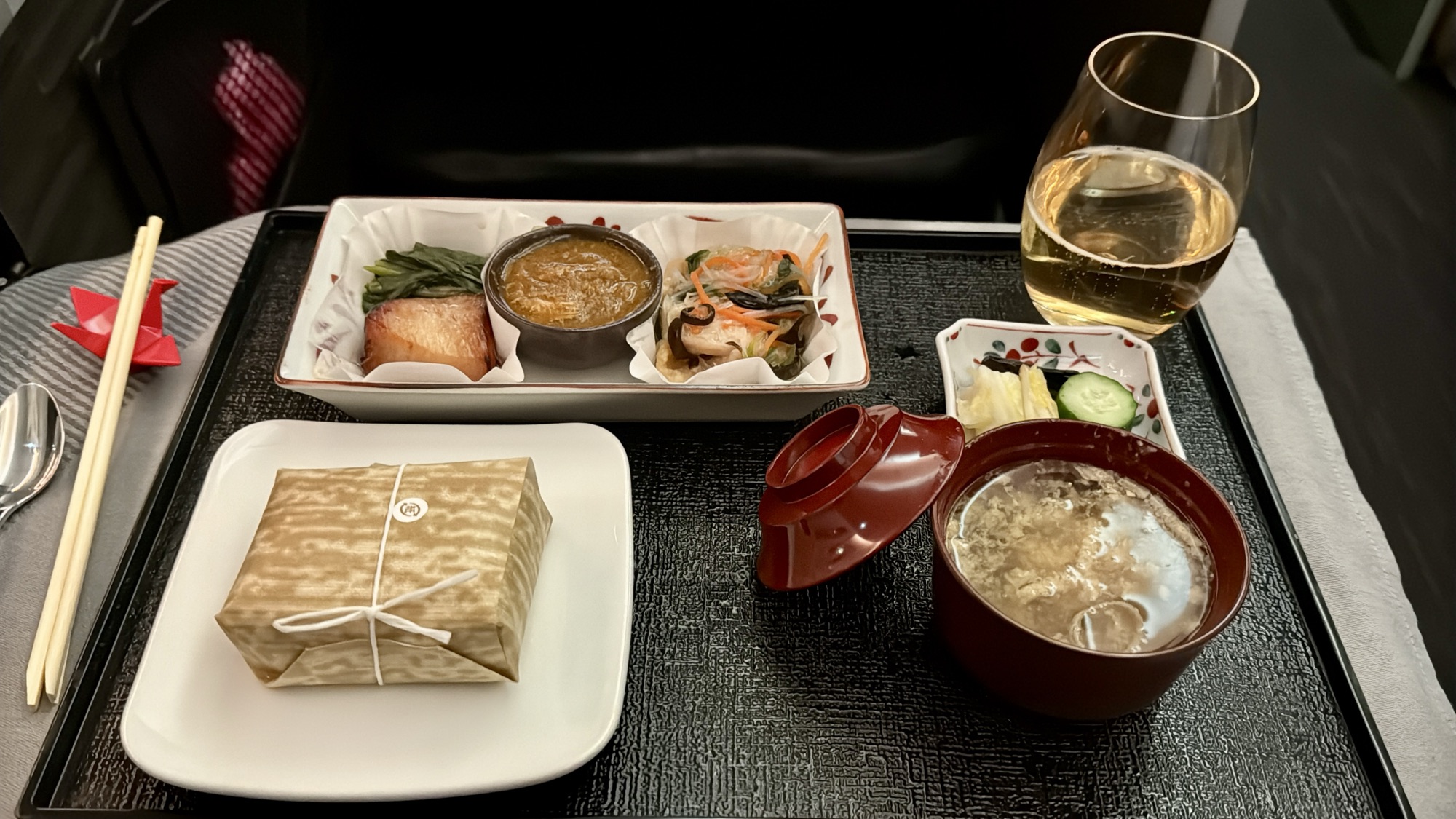 The Catering – The catering out of Narita on this flight was exceptional, offering restaurant-quality meals that were as delicious as they were beautifully presented. The service began with a full meal after takeoff, transitioning into a dine-on-demand system, where passengers could order from the à la carte menu throughout the flight—a truly luxurious experience.