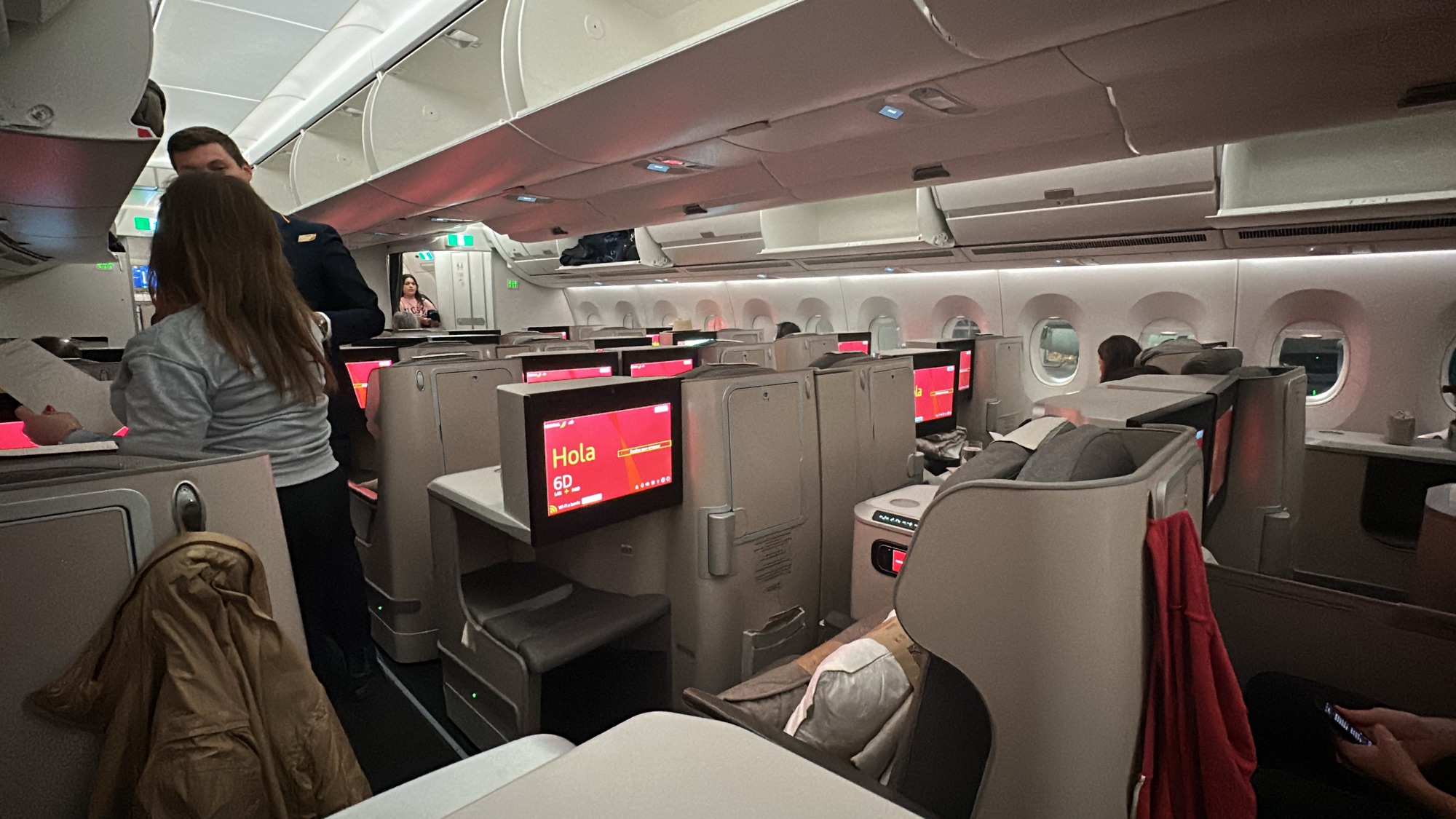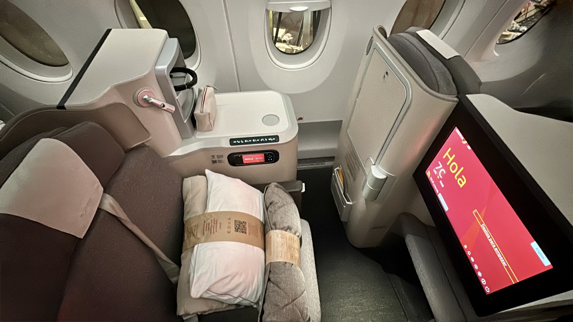 The Seats – While these aren’t Iberia’s latest business class seats with doors, the Solstys seats on this A350 are exceptionally comfortable for sitting, lounging, and sleeping. With plenty of storage options and a well-designed ottoman, they offer a convenient spot to rest your feet while reclining. I managed to get a solid six hours of sleep during the flight—no small feat for me!